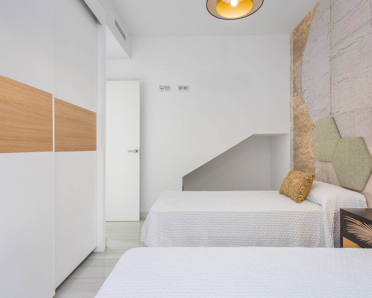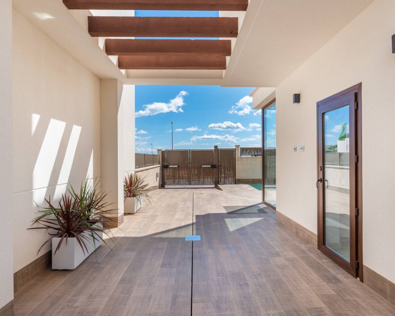 The residencial is located in one of the most beautiful and quiet areas in Los Montesinos, in La Herrada. It consists of 11 houses of the model Laguna Azul, composed of 3 bedrooms and 3 bathrooms, being able to choose the possibility of having basement. All homes have a terrace, private pool, private garden, access door for the car and charger for electric car. In addition, they are designed with high quality materials using the most careful technology and providing the greatest comfort to our customers. Its location is ideal: between La Laguna Rosa de Torrevieja and the Natural Park of Las Lagunas de La Mata, very close to the beaches of Guardamar. This quiet residential of 11 independent villas is the right choice if you are looking for tranquility, peace and harmony for your holiday or during the rest of the year. In addition, just 10 minutes by car is the Urbanization Doña Pepa, full of restaurants, bars and leisure areas where you can enjoy free time in the most pleasant way.