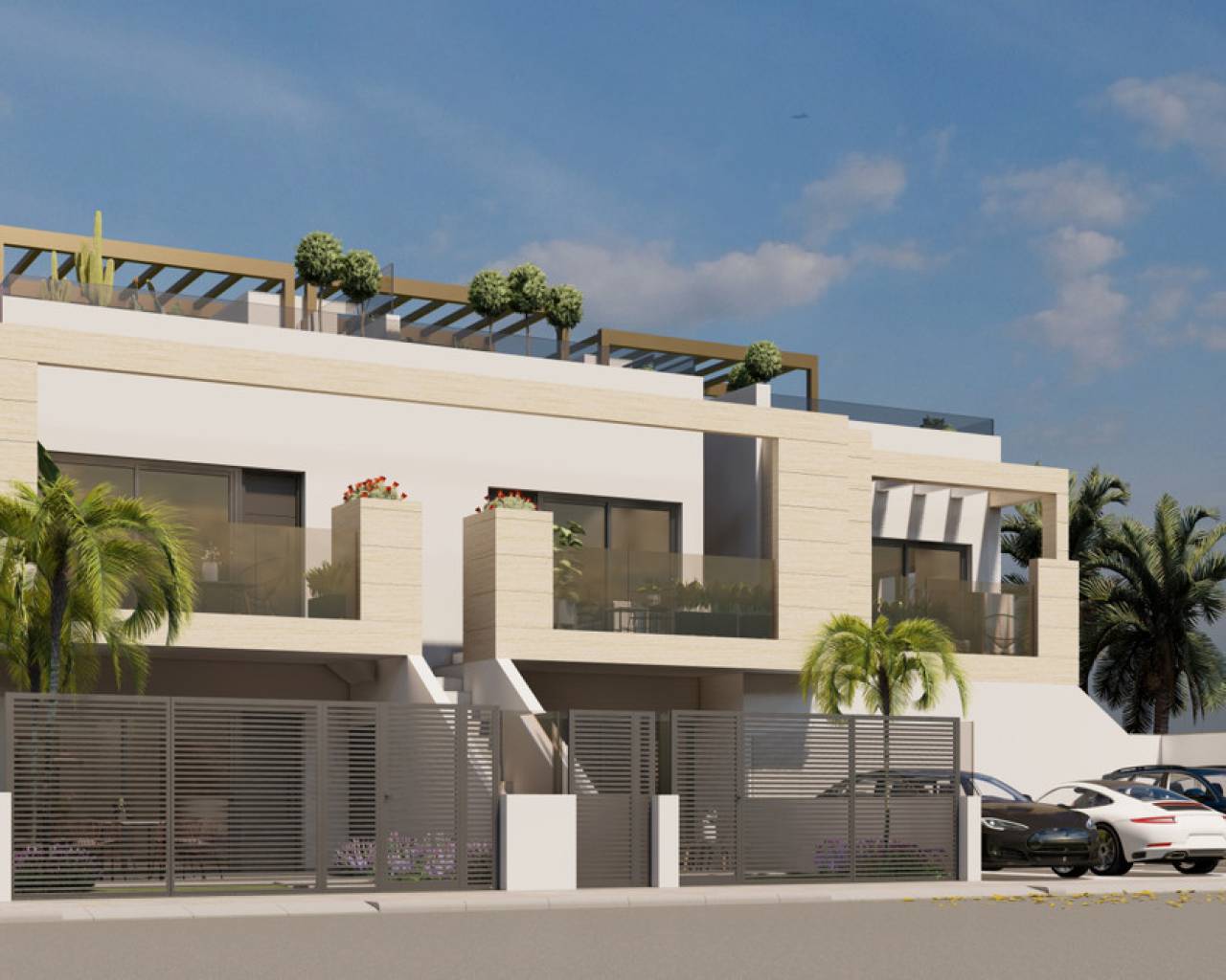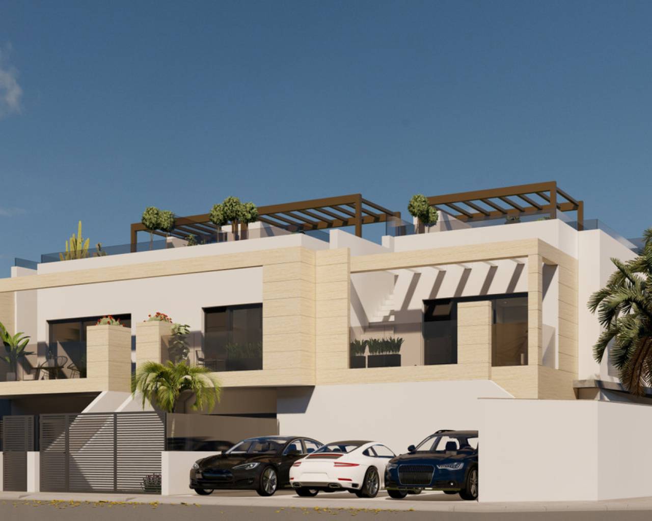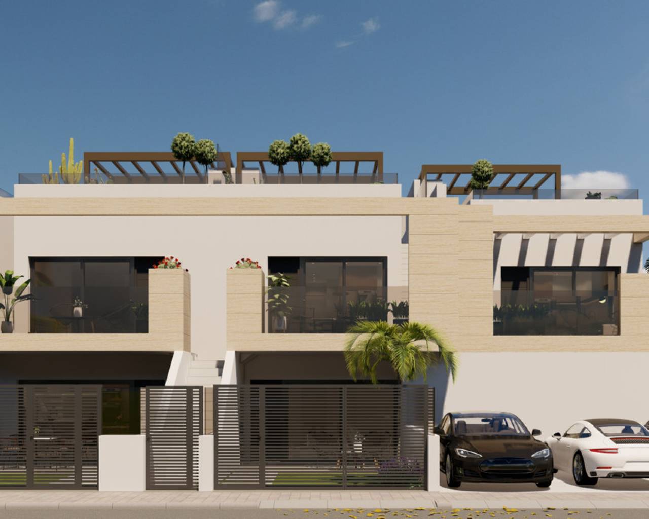 New Build Bungalows in Lo Pagán: Modern Living Near the Beach Prime Location in Lo Pagán, San Pedro del Pinatar Discover the perfect coastal lifestyle with these new build bungalows in Lo Pagán, a charming area within San Pedro del Pinatar. Located just 1.2 km from the beautiful Playa de Villa Nanitos, you're a 15-minute walk from sandy beaches and the iconic Molino Quintín windmill. This prime location is perfect for beach lovers and those interested in water sports, with yacht clubs and marinas nearby. Plus, all essential amenities like supermarkets, bars, and restaurants are just a few minutes' walk away. Property Features These stylish bungalows offer 2 bedrooms, 2 bathrooms, and an open-plan kitchen and living room. The bungalows come with pre-installation air conditioning, built-in wardrobes, and modern interiors. Ground floor units feature a spacious terrace with the option of adding a private pool (available at an additional cost), while the upper floor units boast a private solarium with an included swimming pool, perfect for relaxing in the Mediterranean sun. High-Quality Finishes Each bungalow includes a parking space, and all apartments are finished to a high standard. Features include kitchen appliances, electric shutters, pre-installation ducted air conditioning, fully fitted bathrooms, and LED lighting both inside and outside. Ideal for Year-Round Living Lo Pagán offers a peaceful lifestyle with a welcoming, established community. Residents can enjoy activities year-round thanks to the region's mild winter climate. The area features indoor swimming pools, sports facilities, and a variety of social events. The natural mud baths and calm waters of the Mar Menor add to the appeal, making this a top destination for wellness and relaxation. Nearby Attractions - Dos Mares Shopping Centre: 5 minutes by car - Murcia Airport (Corvera): 30-minute drive - Alicante Airport: 1-hour drive - Golf courses and marinas are within a short drive, making this an excellent location for both leisure and convenience.