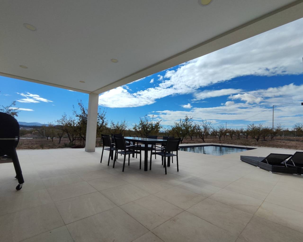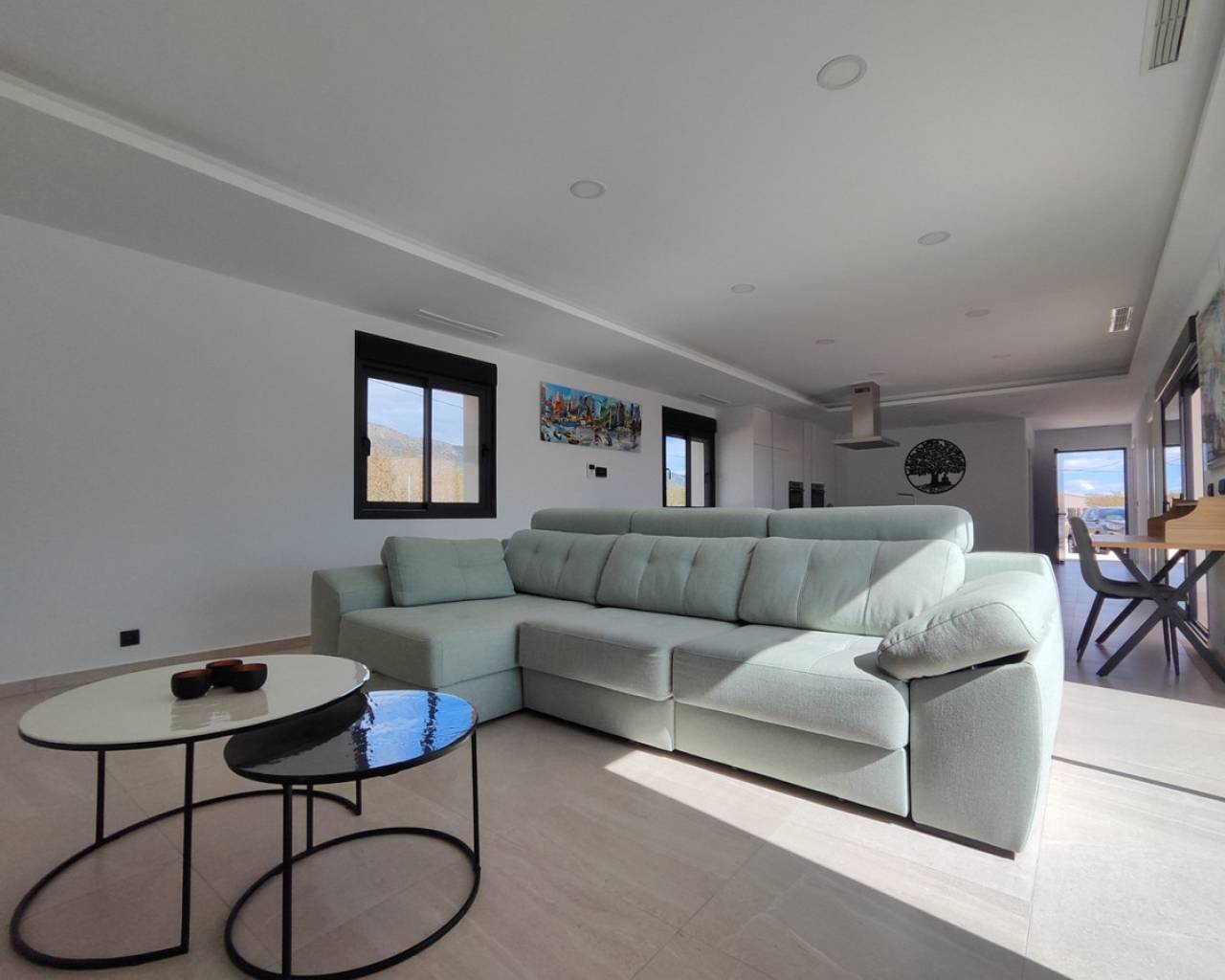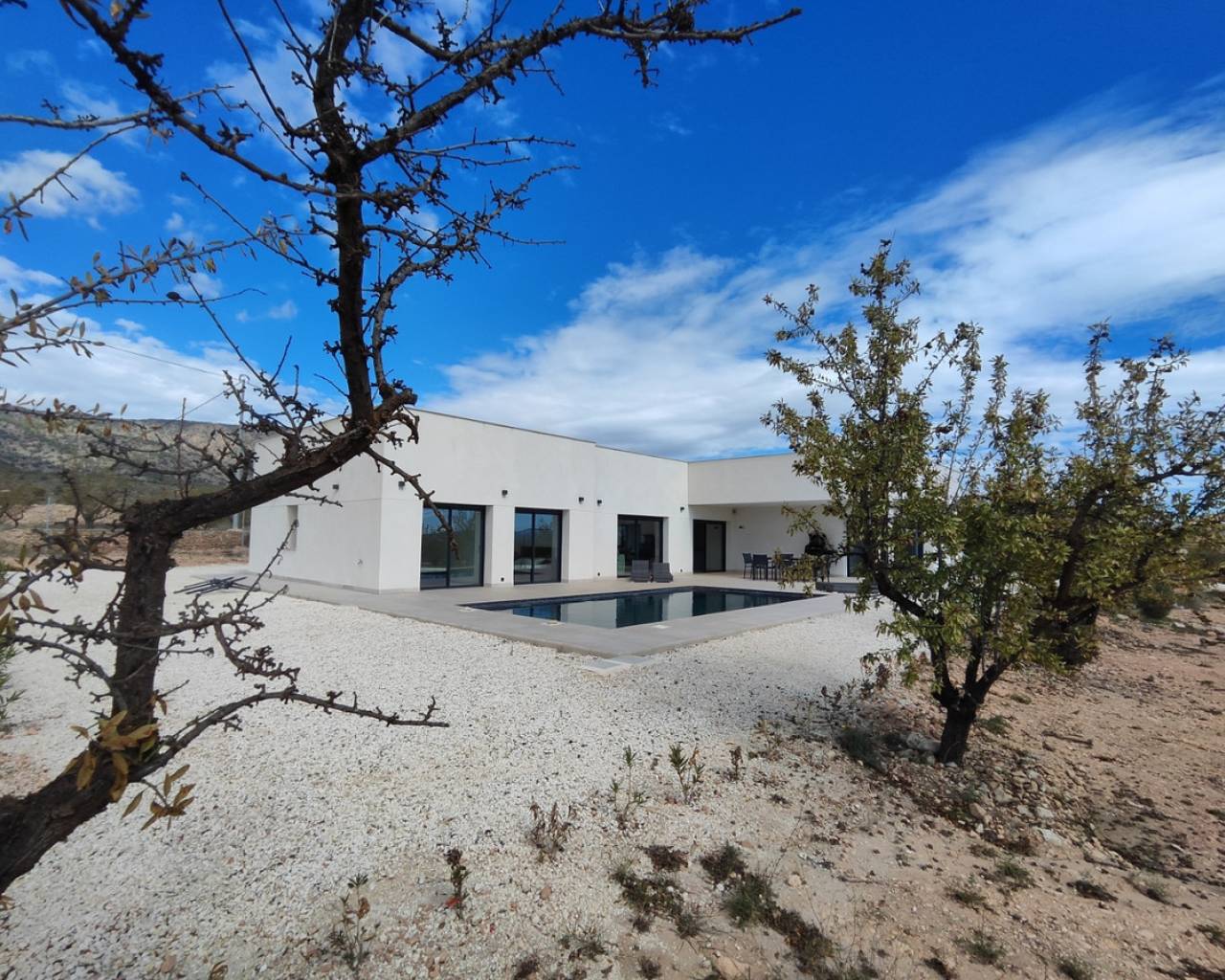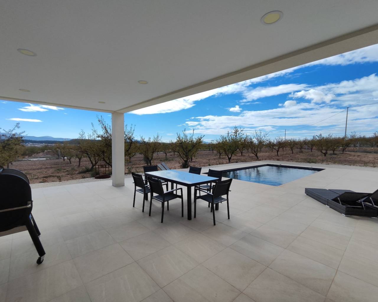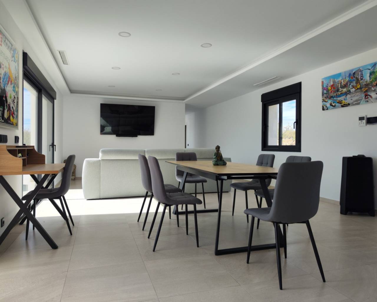 The villas are modern, independent, and customizable, tailored to the specific needs of each client. They are available on both rural and urban plots, in tranquil and naturally beautiful locations within the province, such as Aspe, Monforte del Cid, La Romana, Pinoso, Salinas, Yecla, and Elche. Construction and Structure: Foundation & Structure: Concrete foundation with reinforced concrete beams and slabs. Thermal insulation and waterproofing for roofs and terraces. Exterior Walls: Cellular concrete blocks (Ytong) or thermo-clay blocks with water-resistant mortar. Interior Walls: Ceramic brick or plasterboard with thermal insulation. Insulation: High-quality thermal and acoustic insulation for superior comfort. Interior Features: Floors: High-quality porcelain tiles (up to 20 €/m²) throughout the villa. Painting: Neutral tones of first-quality plastic paint on the walls. Ceilings: Suspended gypsum board ceilings with a smooth finish in maintenance areas. Interior Layout: Ceramic or plasterboard walls, with water-resistant panels in wet areas. Kitchen: Fully Equipped: Customized kitchen with melamine furniture, high-quality appliances (induction cooktop, oven, microwave, extractor), and quartz or granite countertops. Sink & Faucet: Stainless steel or resin sink with a monoblock faucet. Bathrooms: Finishes: High-quality ceramic tiles (up to 20 €/m²). Fixtures: Wall-hung toilets with concealed cisterns, anti-slip resin shower trays, chrome shower columns. Storage: Melamine bathroom furniture with integrated sink and mirror. Carpentry: Exterior: Aluminum windows with thermal break and double glazing (Climalit). Motorized roller shutters. Interior: White lacquered doors, security entrance door, built-in wardrobes. Exterior Spaces: Paving: Ceramic sidewalk surrounding the villa, with gravel (1,000 m²) in rural plots. Fencing: Decorative wall with motorized gate and chain-link fencing in urban plots. Pool: Custom-sized pool with a paved area (50 m²) finished with non-slip ceramic tiles. Installations: Plumbing & Hot Water: Multilayer pipes, PVC sewage system, and solar panels for hot water. Electricity: Fully installed electrical system with LEGRAND mechanisms and LED recessed lighting. Air Conditioning: Pre-installation of air conditioning throughout the house (except in wet areas). Customization: Each villa can be customized to the client's preferences, from flooring and kitchen designs to bathroom accessories and color schemes. Summary: These villas offer modern construction, energy-efficient systems, and high-quality materials. The customization options allow clients to create a home that suits their individual tastes, ensuring a comfortable and contemporary living space in a natural and accessible environment.