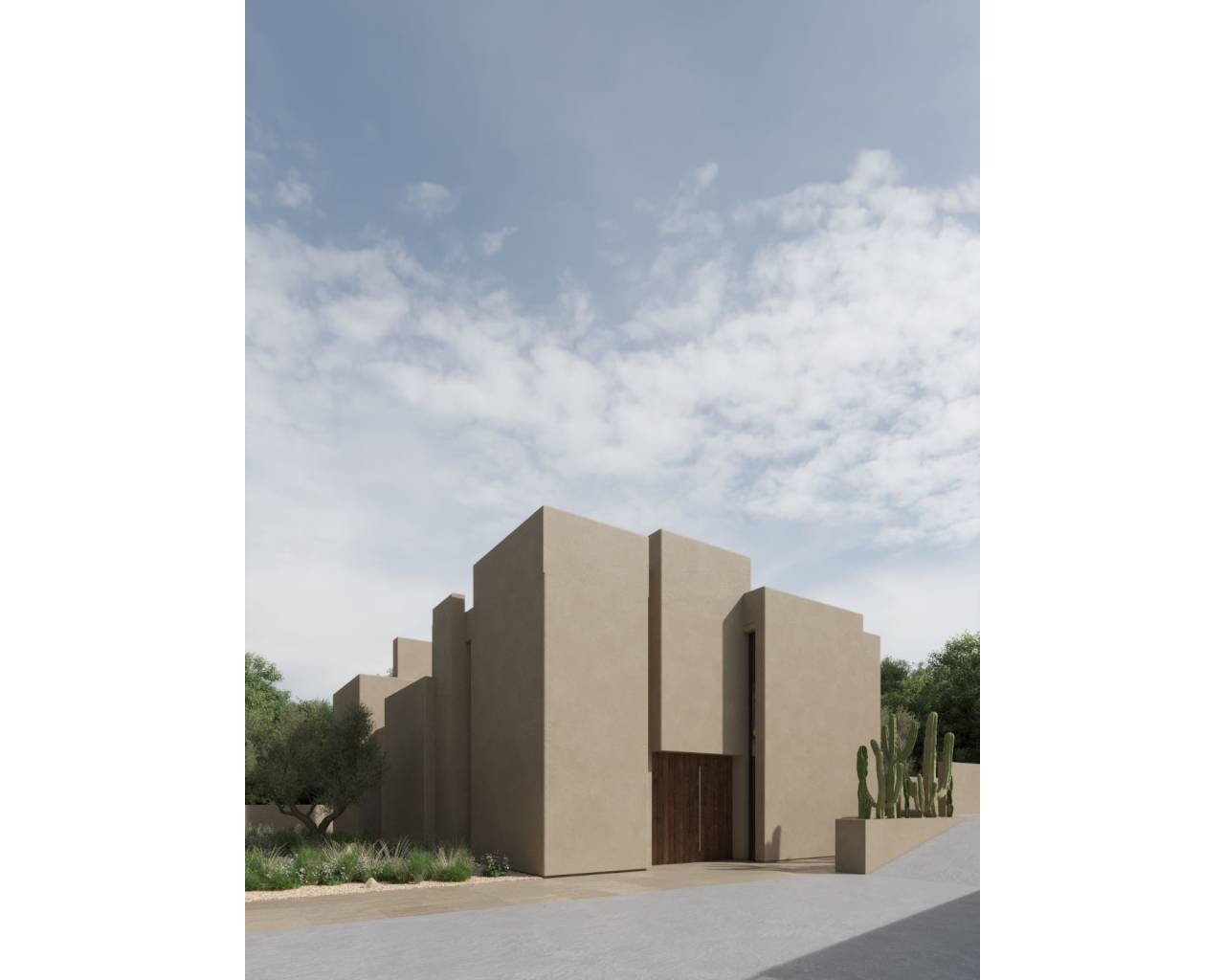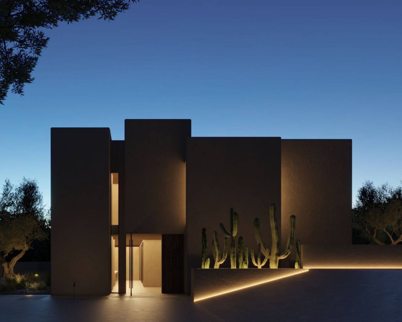 This is a home with a basement, ground floor and first floor that stands out for its contemporary appearance and attention to detail. The façade of the house is made up of several cubes of different sizes and heights, which are interspersed creating an irregular geometry. These cubes are carefully arranged to achieve a modern and attractive aesthetic, while maintaining a sense of subtlety. This volumetric arrangement generates a play of light and shadows on the façade which adds depth and dynamism to this house. The choice of large windows and openings strategically located on the façade allows natural light to enter the interior and creates a visual connection between the interior and exterior. In addition, these elements provide panoramic views of the surrounding environment, making the most of the beauty of the La Nucia landscape. La Nucía is a town nestled between the Serra de Bernia and Puigcampana, located very close to the shore of the Mediterranean Sea and just 50 km from the city of Alicante. It is located between the municipalities of Altea, Alfaz del Pi and Benidorm, making it an ideal place to explore the surroundings. Its unique position between the sea and the mountains provides exceptional microclimatic conditions throughout the year. In addition to its cultural and architectural heritage, the town has a beautiful historic center, offers numerous sports activities and viewpoints with stunning views of the sea and the surrounding cities. The plot has an area of 800 square meters. Located in a recently urbanized area with excellent connections to both Altea and La Nucía. Access to the plot is from San Marino Street, with both the pedestrian and road entrances located there. Road access is via a ramp that allows outdoor parking at ground floor level. Pedestrian access to the home is configured through a staircase that connects the street level with the ground floor level.