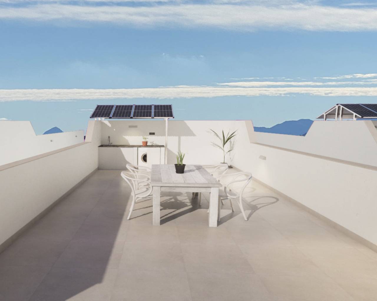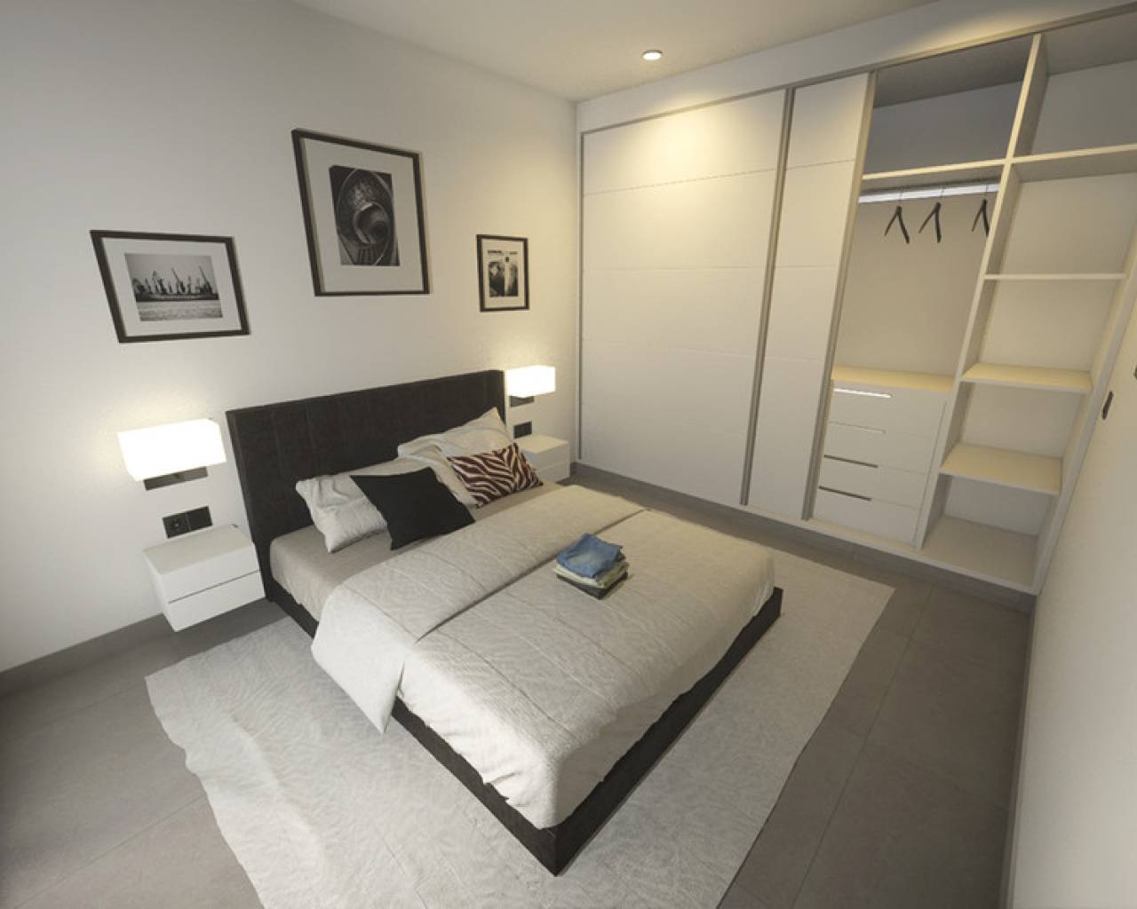The new residencial in Los Alcázares, Murcia, a exclusive proposal of 9 villas. In the first phase we have 3 houses distributed over two floors plus solarium and a ground floor property plus solarium with private swimming pool and covered parking for each of the properties. Each property has 3 bedrooms and 2 bathrooms with pre-installation for air conditioning. The properties have been designed with a contemporary style and an open plan living concept, consisting of a fitted kitchen and a living-dining room. The development is located in Los Alcázares (Murcia), surrounded by all services, sports areas and several golf courses. The villas are five minute walk from the beach. Prices from: 315.000 € plus V.A.T.