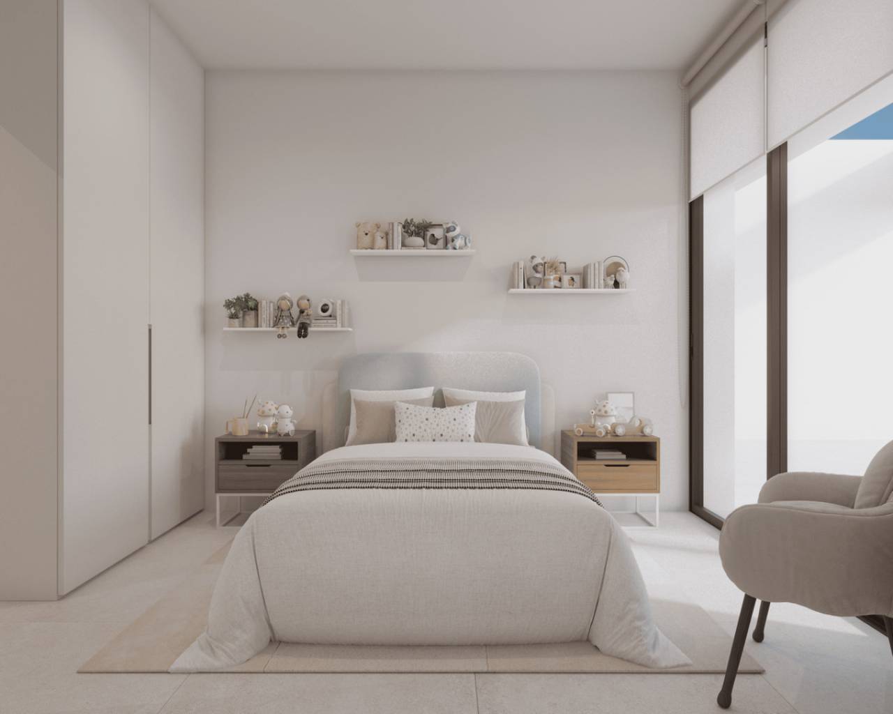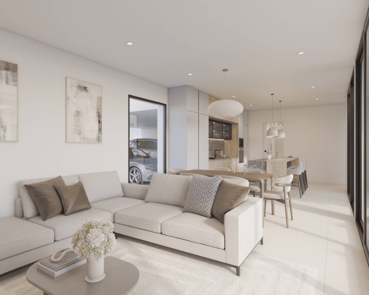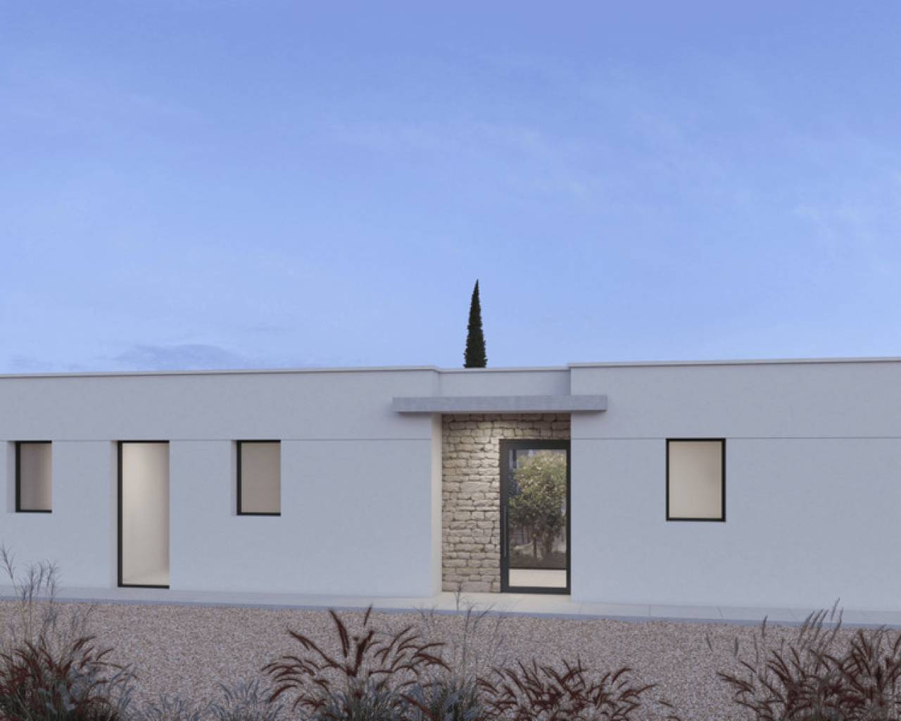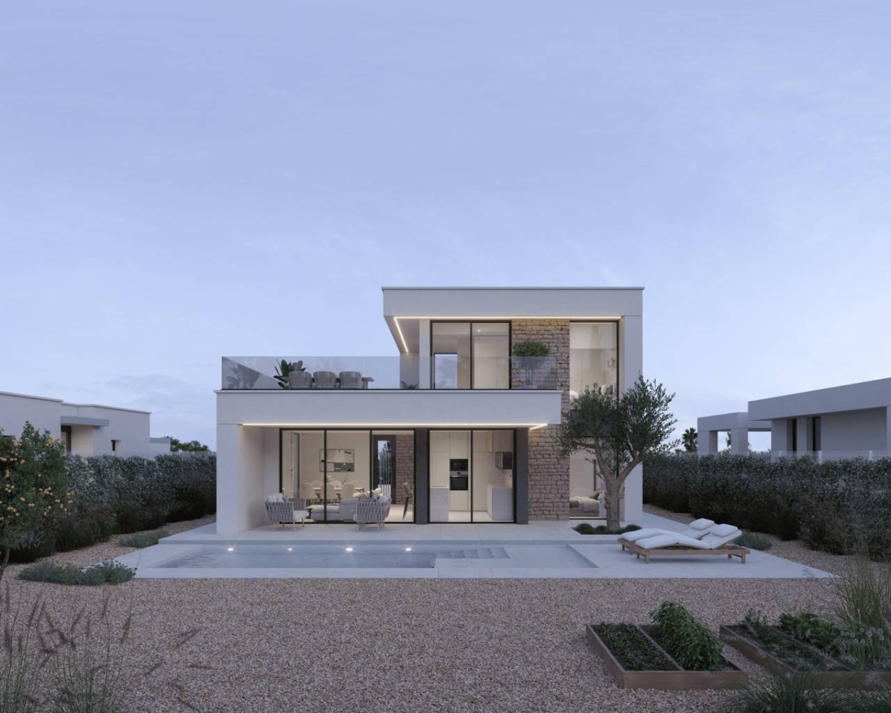 Villas with living-dining room-kitchen with island, 3 bedrooms and 3 bathrooms, dressing room and laundry room. Excellent quality and design. 162 m² of living space on plots between 700 and 1,000 m². Private swimming pool.