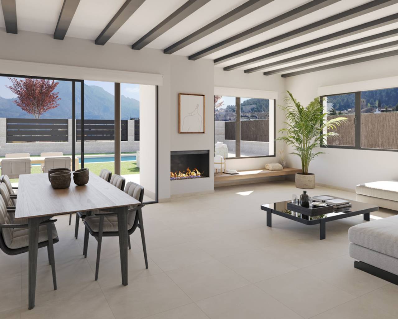 Located on the edge of the charming village of Penàguila, in the heart of the Sierra de Aitana (Alicante), this unique residential development offers a peaceful natural setting with stunning mountain views, just steps away from the urban core of Penàguila. The development spans over 53,000 m², comprising 35 individual plots of 800 m² each, ideal for building a detached villa with a maximum buildable area of 240 m² on one or two floors. Prime Location: Alcoy – 20 minutes Alicante – 50 minutes Benidorm – 55 minutes Valencia – 75 minutes This exceptional location combines natural beauty with easy access to key cities and the Mediterranean coast. Villa Types: Type 1 4 bedrooms, 3 bathrooms Built area: 178.62 m² Terraces: 47.40 m² Type 2 4 bedrooms, 3 bathrooms Built area: 155.60 m² Terraces: 54.01 m² Type 3 3 bedrooms, 2 bathrooms, 1 toilet Built area: 130.00 m² Terraces: 37.79 m² Type 4 3 bedrooms, 2 bathrooms, 1 toilet Built area: 140.97 m² Terraces: 35.79 m² Type 5 3 bedrooms, 2 bathrooms Built area: 161.26 m² Terraces: 23.60 m² Each villa is thoughtfully designed on a single floor, blending modern comfort with the serene charm of the surrounding landscape—perfect for a private residence or holiday retreat.