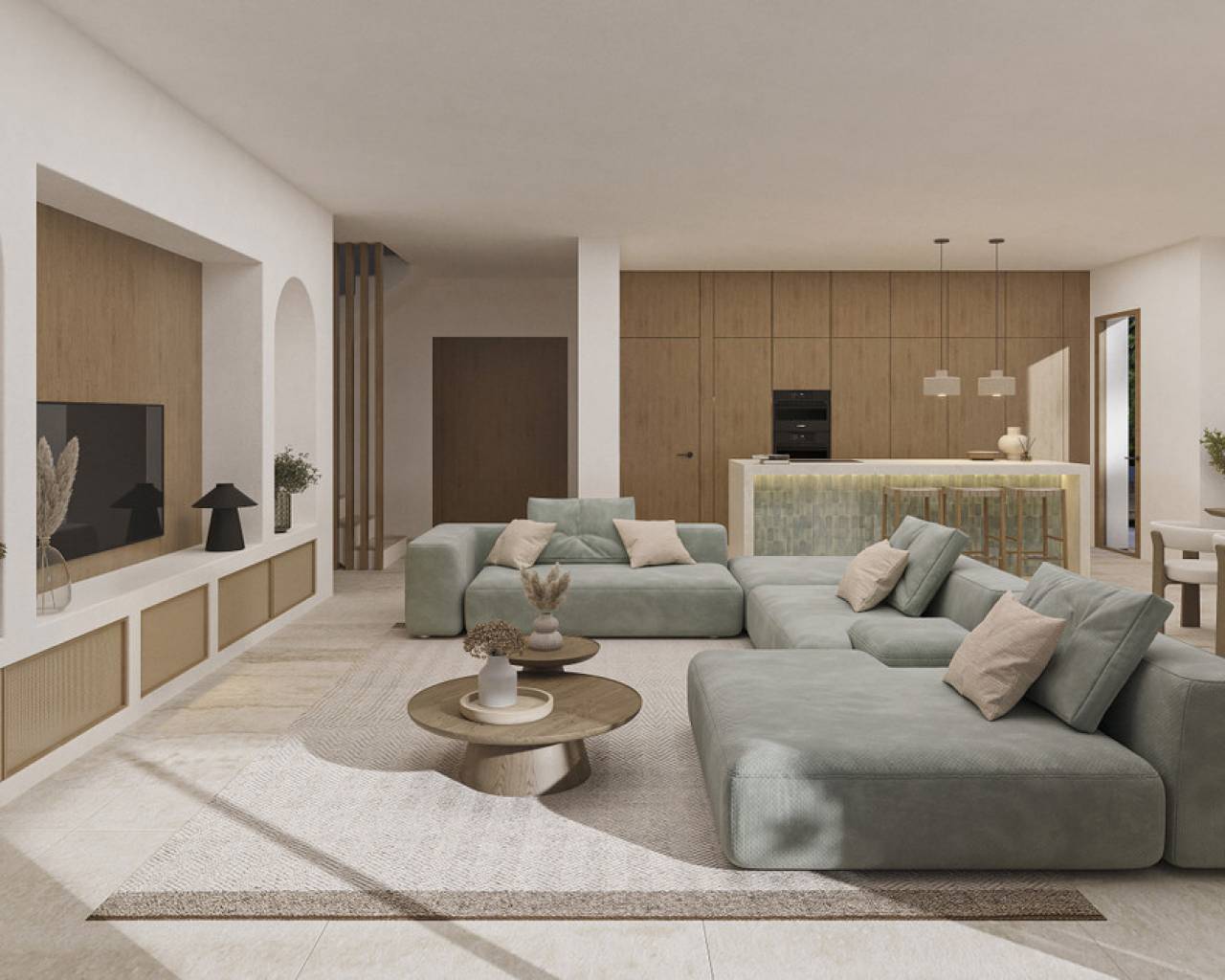 Sea view villa with Ibizan charm in La Fustera This stunning newly built villa combines the elegance of contemporary architecture with the warmth and character of Ibizan design. Located in the sought-after area of La Fustera (Benissa Costa), it enjoys panoramic sea views and is just minutes from the beach, supermarkets, restaurants and other essential services. Set on a plot of over 1,000 m², the property is distributed over two levels and offers a total of 4 spacious bedrooms and 3 bathrooms. The ground floor features an open-plan layout with a large living room, dining area and fully equipped kitchen with island and breakfast bar. Floor-to-ceiling sliding doors connect the interior with a generous south-facing terrace, creating a perfect indoor-outdoor flow. This level also includes a bedroom and a bathroom. Outside, the villa boasts several relaxation and dining areas, a pergola-covered BBQ space, and an inviting swimming pool surrounded by lush landscaping and sun loungers. On the upper floor, there are three additional bedrooms (including the master suite with en-suite bathroom and private terrace), as well as a second terrace with beautiful views. The home is fully equipped for year-round comfort and includes underfloor heating, ducted air conditioning, and high-quality finishes throughout. Additional features include a technical room for the heating system and a separate room for pool equipment, both located underground to maximize space and functionality.