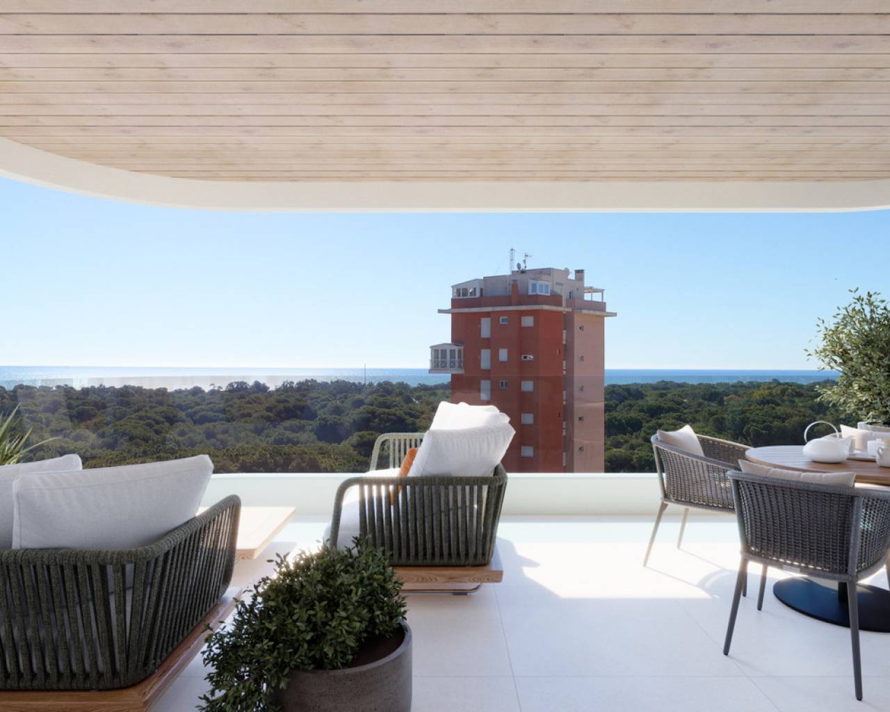 A modern residential complex designed for your new life. A haven of tranquillity next to Las Dunas nature park and the sea. This 10-storey development consists of 18 homes and 2 penthouses, featuring communal areas and direct sea views from the upper floors. The homes are designed for maximum privacy, with large terraces facing the sea and spacious communal zones that include a swimming pool and green areas where residents can relax and enjoy the peaceful surroundings. These eco-friendly homes offer the chance to enjoy the Mediterranean lifestyle in its most natural and serene setting, where walking, swimming, and outdoor sports are part of everyday life. The area around the residential complex has a unique charm—not just because of its beautiful beaches, but also due to its traditional local shops, a wide and varied gastronomy, inland trails, hiking routes from the pine forest right in front of the development, and a variety of sports activities. You'll have all essential services close at hand, including supermarkets, pharmacies, and public transport—just 5 minutes from the centre of Guardamar.