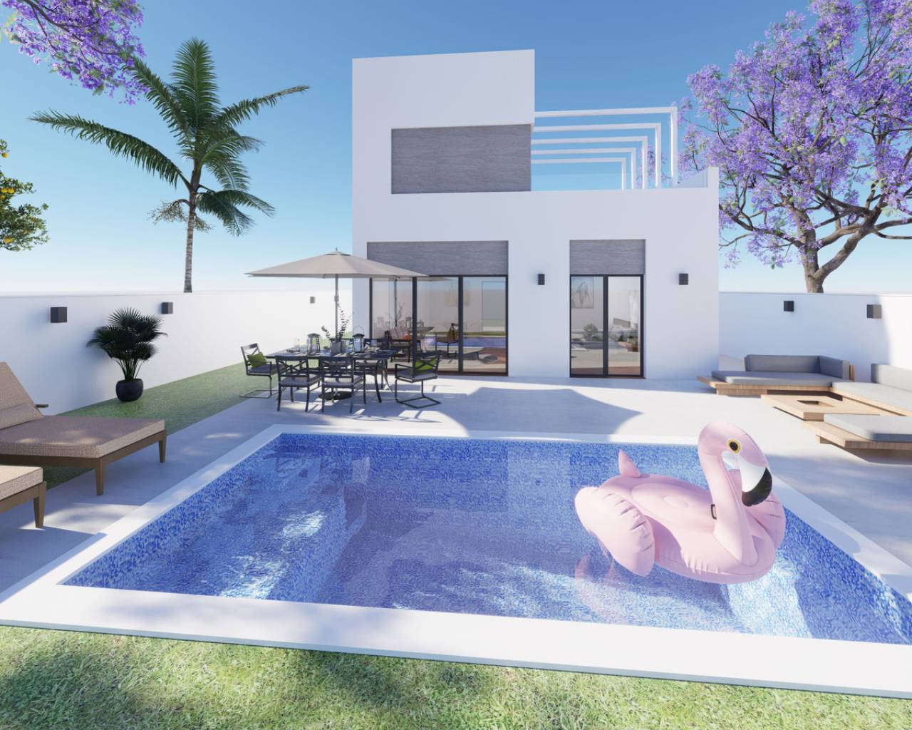 The plot is 306 m², with an optional private swimming pool, part of the residential complex in Lo Marabú, in an area with all possible services and beautiful views of the Laguna de la Mata.