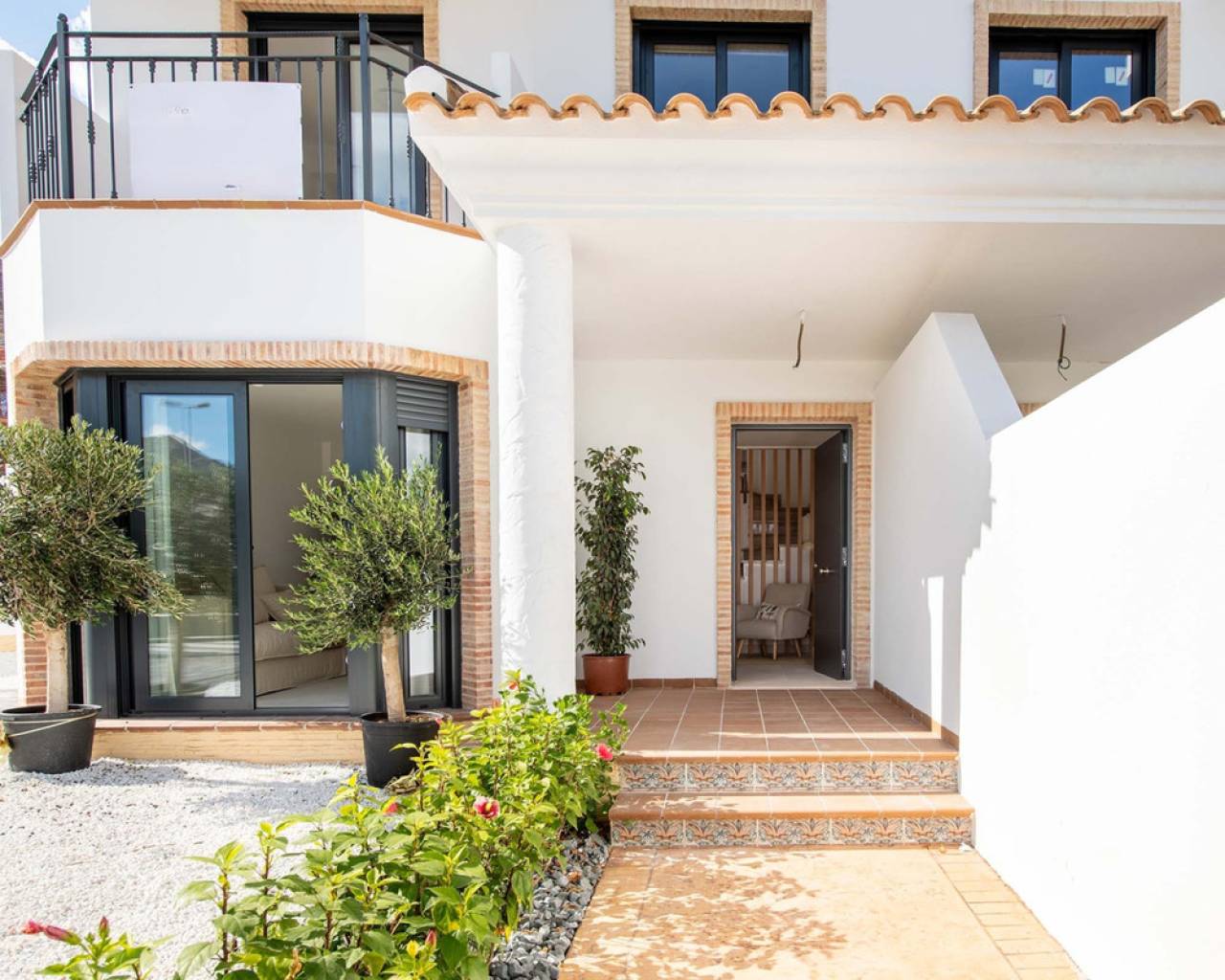 This new development is built with a reinforced concrete structure and foundations engineered for seismic stability, complemented by a walkable flat roof with full thermal and waterproof protection. The homes feature high-quality exterior façades with double-brick walls, integrated insulation, and anthracite aluminum carpentry with thermal break, double glazing, and motorized blinds. Interiors offer bright, comfortable spaces with smooth matte finishes, porcelain stoneware flooring, built-in wardrobes, and suspended ceilings in key areas. Bathrooms include modern porcelain fittings, shower trays, and stylish tiling options. The fully equipped kitchen comes furnished with premium cabinetry, porcelain countertops, and top-brand appliances. The property includes a complete plumbing installation with aerothermal hot water, pre-installation for ducted air conditioning, sectorised electrical system, LED lighting throughout, and provisions for solar panels and an electric car charging point. Outdoor areas feature non-slip pavements, artificial grass, a summer kitchen on the solarium, and access to a communal pool surrounded by landscaped gardens. Bungalows A4, A7 - SHOW HOUSE