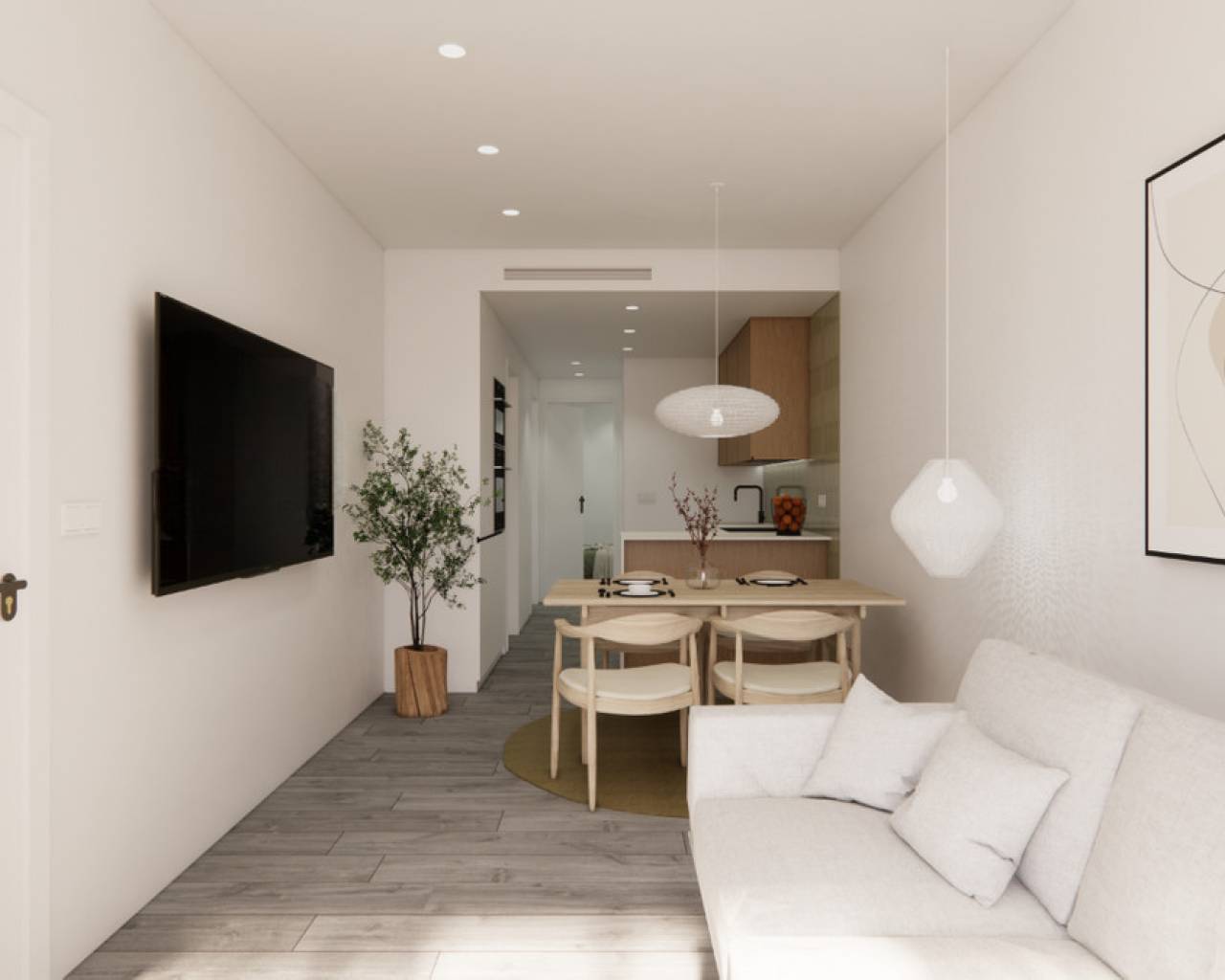 Just a short stroll from two of the most beautiful beaches in Torre de la Horadada, this new residential development captures the essence of Mediterranean living. The location offers a perfect balance between peace and convenience — a tranquil coastal environment surrounded by restaurants, cafés, shops, and all essential services within easy reach. The development consists of six carefully designed 2-bedroom apartments, each reflecting a contemporary interpretation of Mediterranean architecture. The layouts are open and functional, with bright interiors that make the most of natural light and sea breezes. Quality materials and thoughtful details create a warm and inviting atmosphere that blends elegance and comfort in every space. Residents can enjoy a unique rooftop experience, where a stunning communal terrace features a swimming pool, solarium, and barbecue area. It's the ideal spot to relax, sunbathe, or share unforgettable moments with family and friends while overlooking the town and the horizon. Whether you're looking for a permanent home by the sea or a second residence for weekends and holidays, this development offers everything needed to enjoy the Mediterranean lifestyle to the fullest light, space, and serenity in one of the most charming areas of the Costa Blanca.