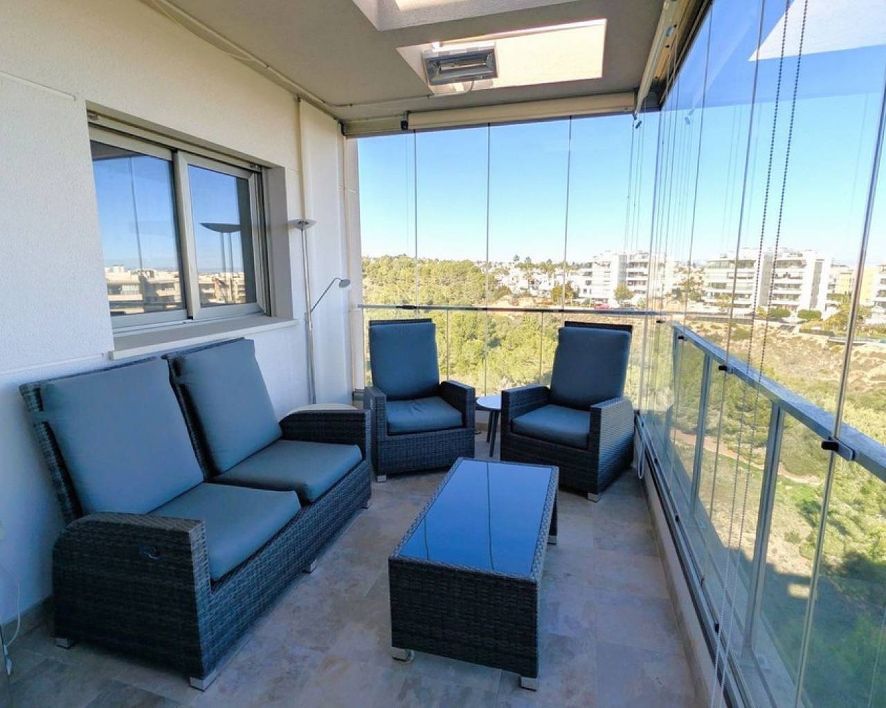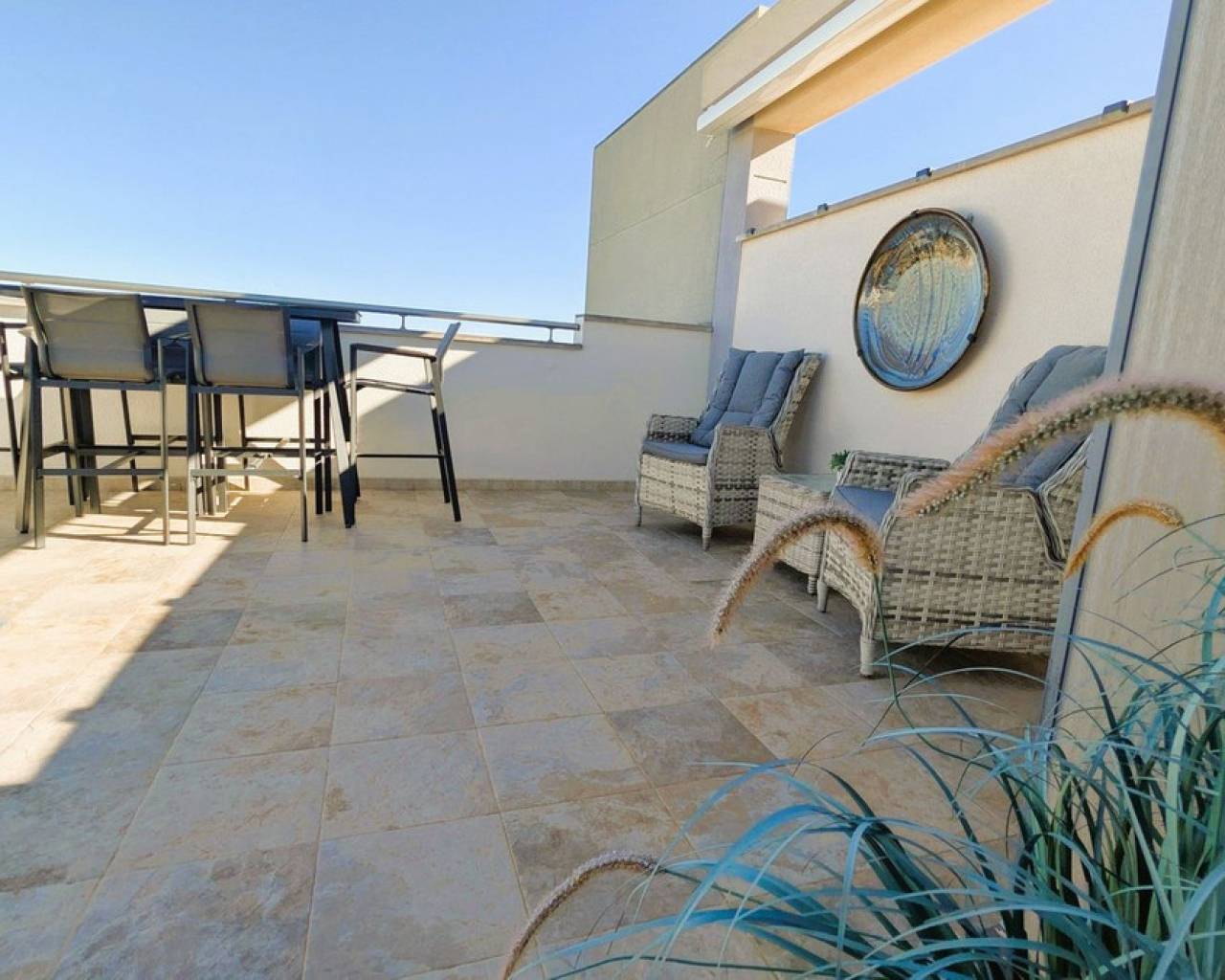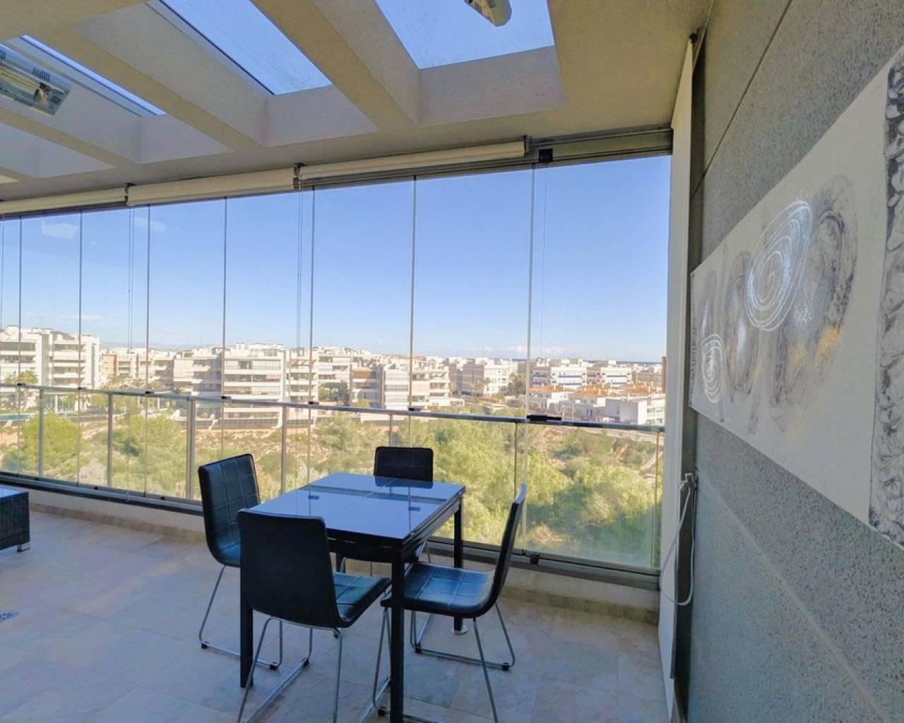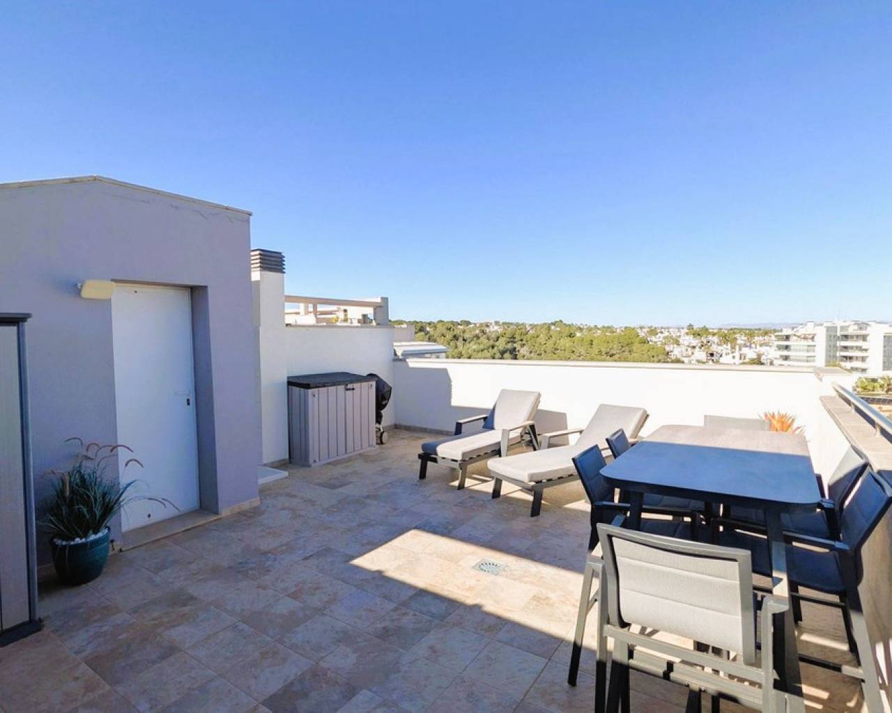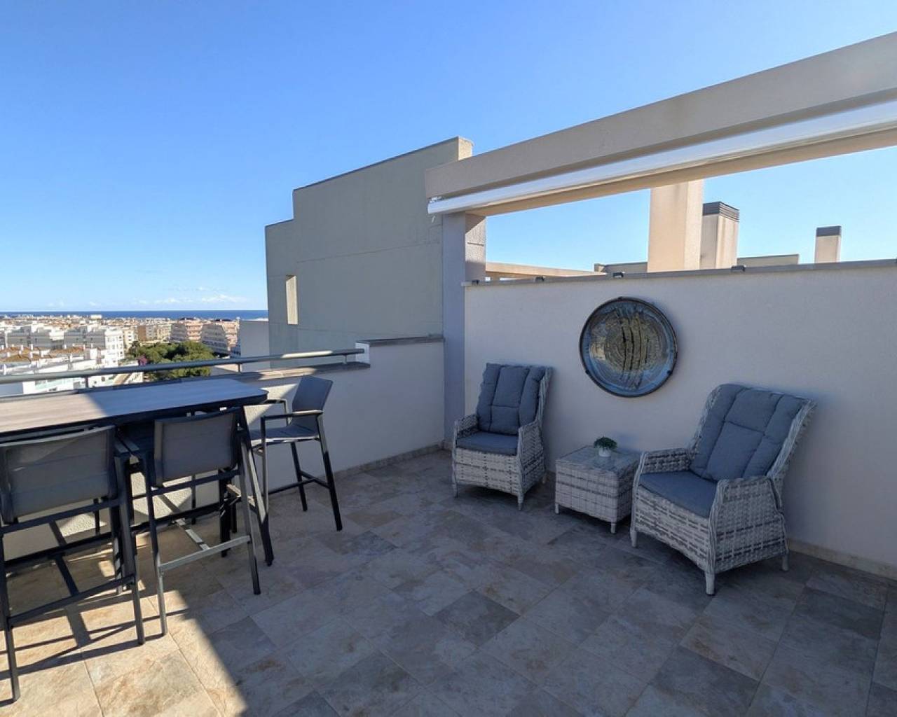 Altos del Mediterraneo Top-floor penthouse boasts a 45m² private solarium and balcony with stunning open sea views. Located in a secure complex within a prime coastal proximity. "Luxury redefined" ________________________________________________________________________________________ Luxury Penthouse with Spectacular Sea Views in Los Dolses, Villamartin Discover unparalleled luxury and coastal living in this fantastic, top-floor penthouse located within the prestigious, gated community of Altos del Mediterraneo in Los Dolses, Villamartin. This stylish and spacious property offers 78 sqm of living space, complemented by a 16 sqm balcony featuring bi-fold glass curtains for year-round enjoyment of the stunning open sea views, and a magnificent 45 sqm private rooftop solarium with similar vistas. The apartment features two generously sized bedrooms with built-in wardrobes, including a master suite with a private en-suite bathroom. The penthouse is presented in move-in condition, fully furnished and equipped with high-quality modern comforts. These include ducted air conditioning and underfloor heating throughout, ensuring comfort in every season. Residents benefit from outstanding community amenities, such as a large outdoor pool, an indoor heated pool, a fully equipped gym, and a sauna. A private, secure parking space is also included. The location is unbeatable, offering the perfect blend of leisure and convenience. The property is situated just minutes from the Los Dolses commercial area. Within a short drive, you can reach the Zenia Boulevard shopping center, the prestigious Villamartin Golf Course (plus four others), and the beautiful Blue Flag beaches of La Zenia and Campoamor. A bus route is conveniently located immediately opposite for those who prefer not to drive. This penthouse represents a unique opportunity for discerning buyers seeking a prime piece of the Costa Blanca lifestyle.