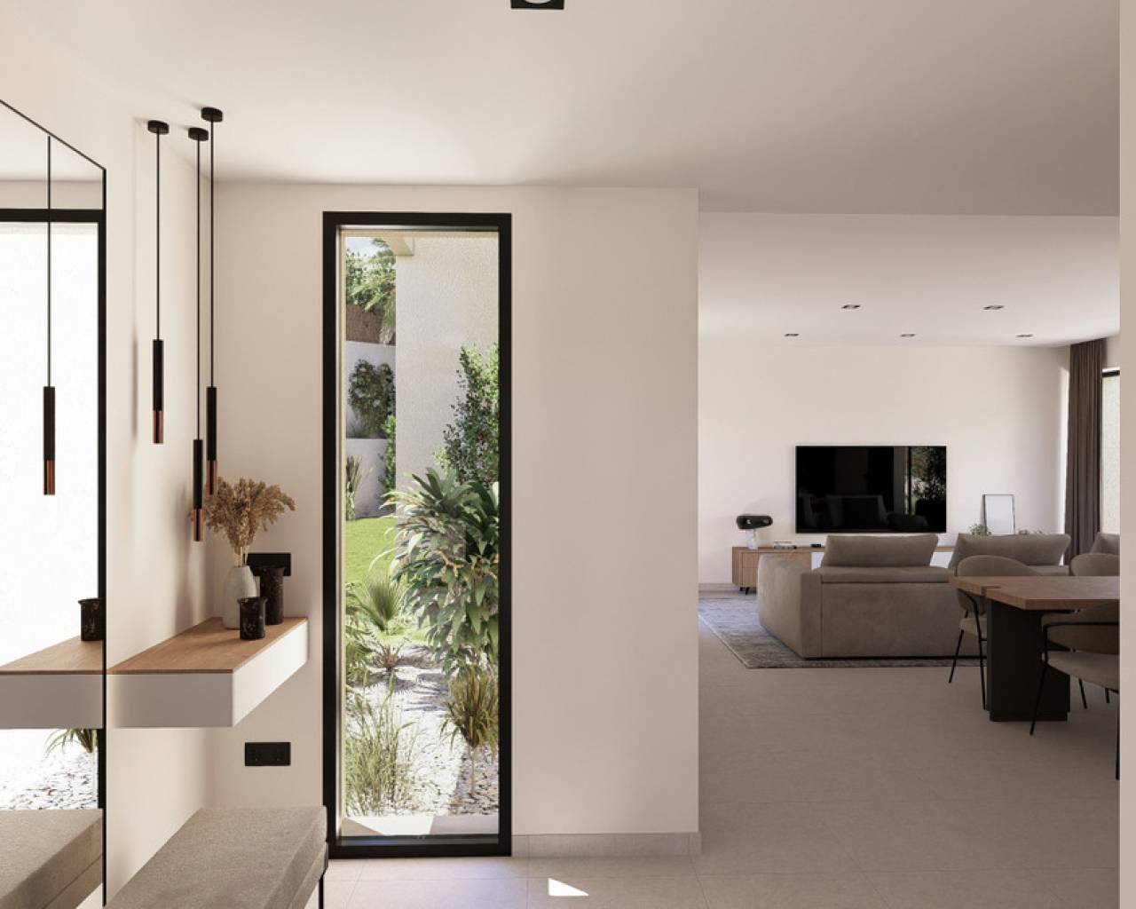 The light in all its phases At dawn, the warmth of the sun floods every corner of every room on the levantine coast. High ceilings add spaciousness and serenity, giving each room an elegant atmosphere in line with the architecture of the villa. A family home that projects outwards. Where the boundaries between inside and outside, front and back are soften. Designed to meet the needs of coexistence and favouring the enjoyment of each space. Living in a natural environment has never been so easy. Architecture has been designed to cater to the needs of individuals living on a beautiful golf course. The rooms offer ample space for living and create a seamless blend between the villas and their surrounding environment, resulting in a perfect symbiosis.
