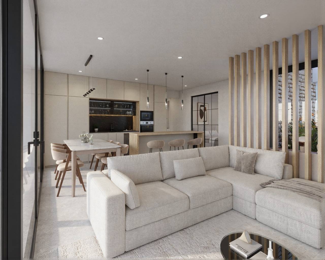 An Exclusive Villa Community This residential villa complex offers contemporary architecture combined with high construction standards and sustainable design, creating an ideal Mediterranean lifestyle setting. Modern Comfort & Design The villas feature bright open-plan interiors, porcelain flooring, LED lighting, elegant bathrooms with walk-in showers, and fully equipped modern kitchens with integrated appliances. Indoor-Outdoor Living Spacious terraces, solariums, and landscaped Mediterranean gardens allow seamless indoor–outdoor living, complemented by private and communal swimming pools and leisure areas. Efficiency & Sustainability Advanced thermal and acoustic insulation, aerothermal hot water systems, pre-installation for ducted air conditioning, and electric vehicle charging points ensure comfort, energy efficiency, and long-term value.