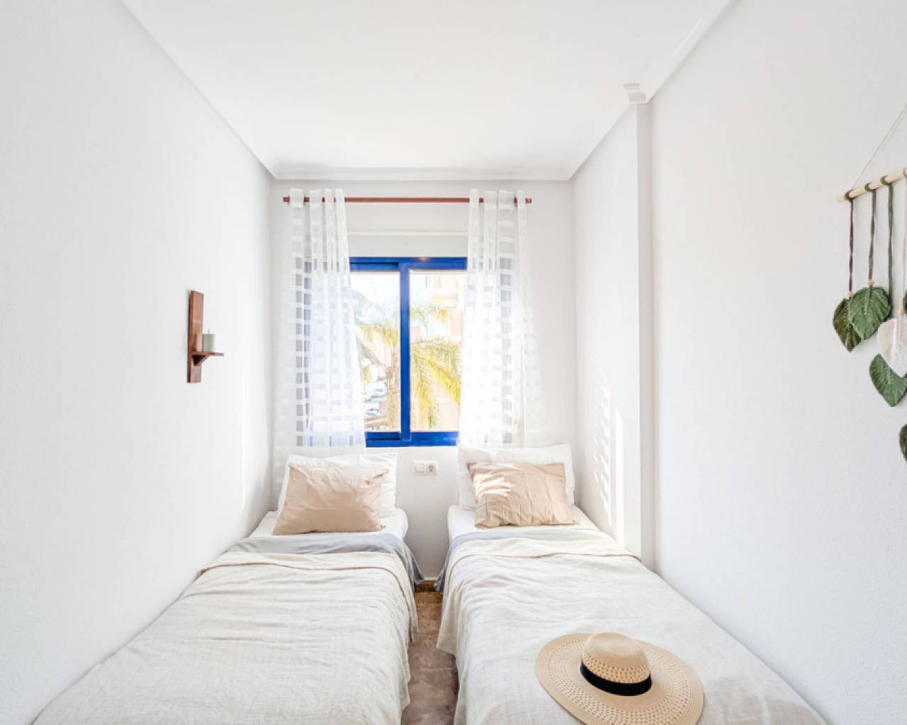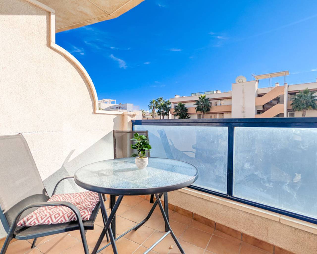 Exceptional Apartment Just Steps from the Beach in Cabo Roig Situated in one of Cabo Roig's most desirable areas, only a short five-minute stroll from the Mediterranean, this elegant apartment is located in the highly regarded Playa Marina 1 residential complex. The property offers an outstanding balance between proximity to beach life and a peaceful living environment, making it equally attractive as a holiday home, permanent residence or investment property. The apartment enjoys a privileged position within the complex, facing the tranquil pool and landscaped garden area. This lush, palm-lined setting creates a calm and private atmosphere, despite the lively selection of restaurants, cafés and amenities located just outside one of the complex's entrances. Inside, the home features a generous and bright living space with an open-plan layout connecting the lounge and kitchen. Air conditioning in the living area ensures comfort throughout the year, and large doors lead directly out to a south-facing terrace, perfect for outdoor dining, sunbathing or simply enjoying the warm climate. The kitchen is fully equipped and seamlessly integrated, including a washing machine and ample storage. The master bedroom is fitted with air conditioning and built-in wardrobes, offering a comfortable and restful retreat. The second bedroom overlooks the pool area and also includes wardrobe space, making it ideal for guests, family members or use as a home office. A private underground parking space is included in the price, adding valuable convenience and security. Playa Marina 1 is a well-maintained and professionally managed complex with two independent access points – one leading directly to Cabo Roig's vibrant dining and entertainment area, and the other providing quiet access via the pool and garden zone. Importantly, the complex is purpose-built for tourist accommodation, which is a major advantage in the current market where tourist licenses are increasingly difficult to obtain. This makes the apartment especially appealing for buyers seeking strong rental potential combined with personal enjoyment in a location with proven year-round demand. A rare opportunity to own a property that delivers lifestyle, investment potential and long-term security – just moments from the sea. Please contact us for more information or to book a viewing. We will of course conduct digital viewings if you are unable to be there in person.