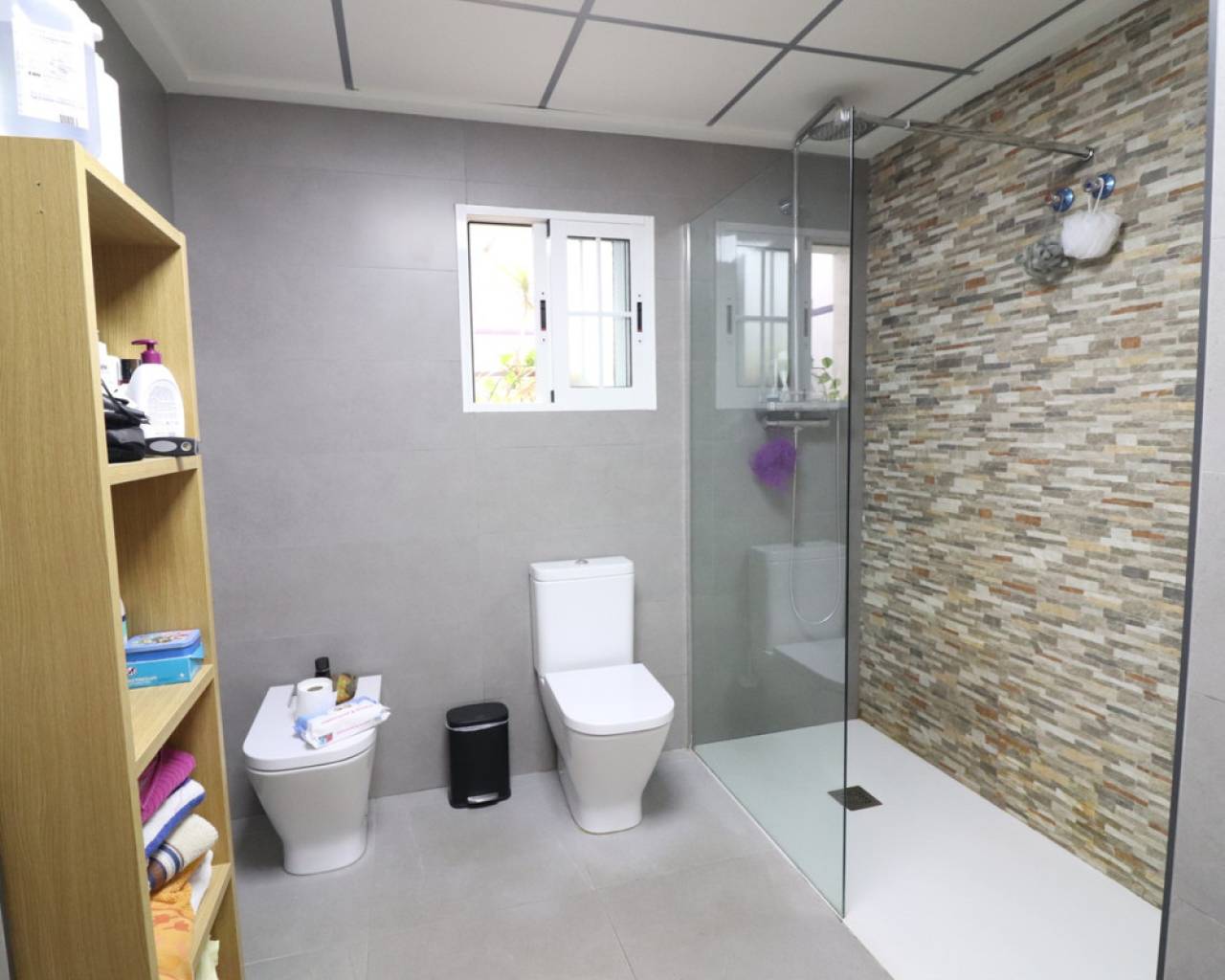 This South Facing, Three Bedroom, Detached Villa in El Saladar, is located in a well-known residential area on the outskirts of Almoradí town, which is just a 5 minute drive away. A variety of café bars can be reached within a 5 minute walk, while the beautiful beaches are approximately 20 minutes away. Golf enthusiasts will appreciate the proximity to the prestigious La Finca Golf 5* Hotel and Spa Resort, only a 15 minute drive, all set within the sought-after Costa Blanca South. This 130m² family home offers comfortable and practical living space. The main living area features a log burner, creating a warm and welcoming atmosphere, and an archway leads into the family-sized kitchen/dining room. From here, a door opens onto the patio and utility area, with steps leading up to the solarium. There is also direct access into the impressive 85m² garage. The villa comprises three double bedrooms, two of which have built-in wardrobes, along with a modern family shower room featuring a walk-in shower. Ducted air conditioning is installed throughout the property. Set on a generous 368m² plot, the exterior is designed for both relaxation and entertaining. There is a car port for two cars, along with a large garage space that can also be used as a family or entertainment area, complete with a fitted kitchen and there is an external WC. A covered terrace overlooks the private swimming pool with jacuzzi, surrounded by astro turf and enjoying open countryside views. Additional features include solar panels serving hot water and internal access to under build storage. This is a superb opportunity to own a spacious detached villa in a peaceful yet well-connected location on the Costa Blanca South, ideal as a permanent residence or family holiday home.