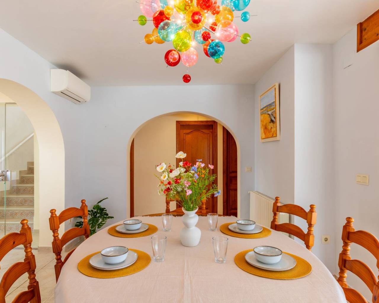 Discover this spectacular villa for sale in Moraira, located in the coveted area of Benimeit, one of the quietest and most prestigious residential enclaves on the Costa Blanca. With a design that combines Mediterranean style with maximum comfort, this property offers an exceptional living experience. The villa features 246 m² built distributed in bright and cozy spaces. It includes 3 spacious bedrooms and 3 full bathrooms, ideal for families or those seeking a second residence near the sea. Each room is designed to offer privacy and wellbeing, with a fluid layout that encourages togetherness. Situated on a 1,234 m² plot, this property in Moraira stands out for its extensive Mediterranean garden, private pool, and outdoor relaxation areas. Enjoy the sun all year round thanks to its excellent south orientation, perfect for meals on the terrace or barbecues at sunset. The villa includes: Hot and cold air conditioningCentral heatingTwo fully equipped kitchensPrivate garageCovered and uncovered terracesEverything is designed to offer a comfortable, safe, and functional lifestyle all year round. This property represents a unique opportunity to buy a villa in Moraira in a privileged location, with all amenities nearby, beautiful beaches, and an unparalleled natural environment. Ideal as a permanent residence, holiday home, or real estate investment on the Costa Blanca.