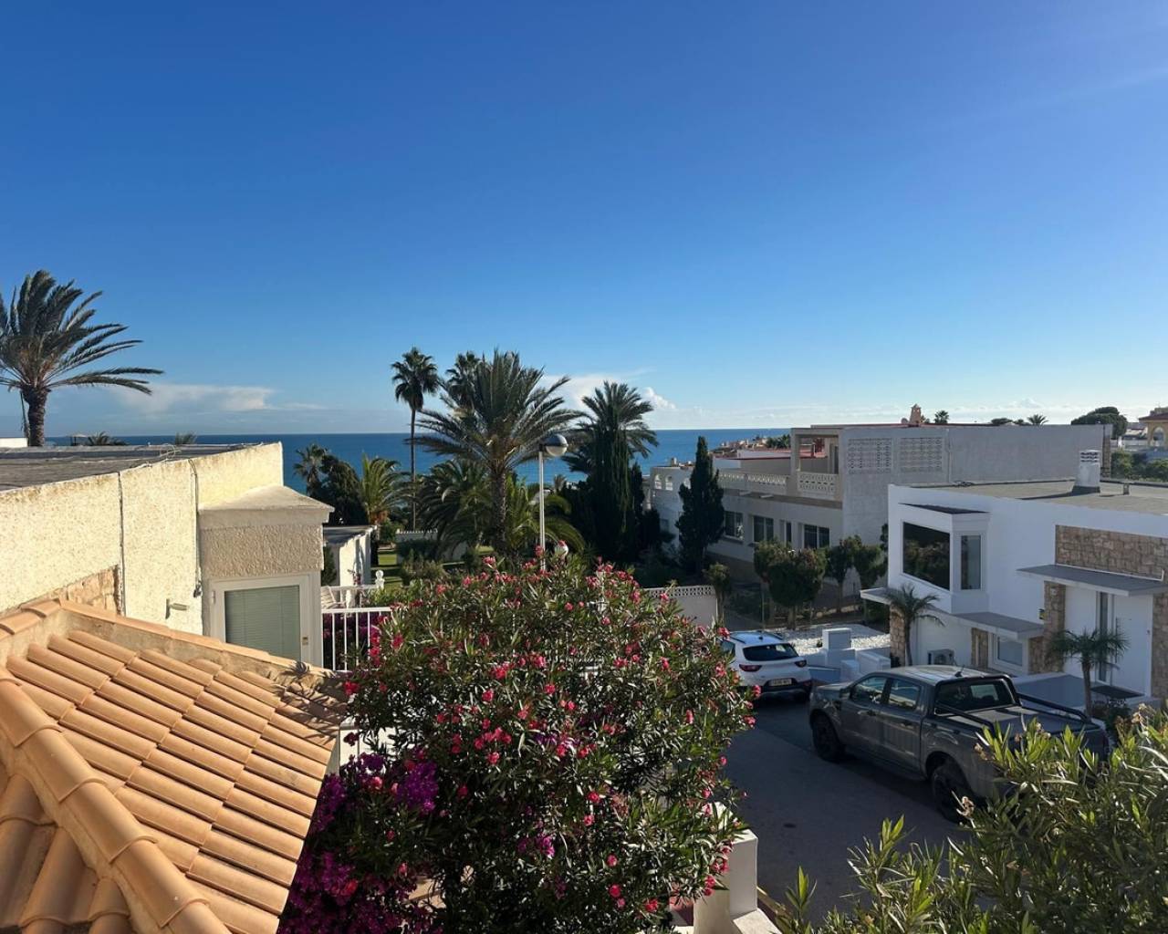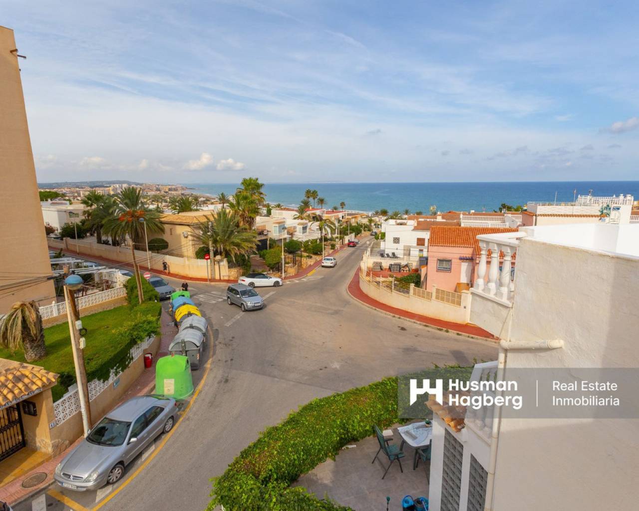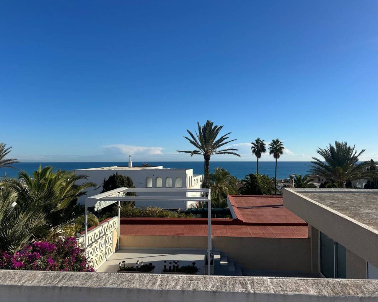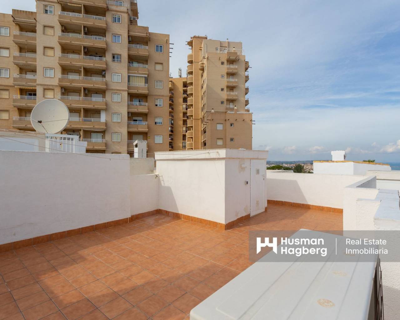 Charming townhouse with roof terrace in a sunny location and sea views We are pleased to present this unique and newly renovated townhouse with fantastic sea views from all floors - a real gem for those looking for a home on the coast with both character and modern comfort. The property offers two bedrooms, one bathroom, a bright living room and an open-plan kitchen. There are several lovely outdoor spaces - a terrace on two levels, a sunny balcony and a roof terrace shared with only one neighbour. From each level you can enjoy the view of the Mediterranean Sea, where sky and sea meet in harmonious blue tones. In 2024, the townhouse underwent an extensive renovation with several upgrades that raise both the standard and quality of life. Among other things, a practical roof storage room and a new balcony were built, and the patio has been expanded to create even more space for relaxation and social moments. The kitchen and kitchen floor have been renewed with stylish materials, and two new air conditioning units have been installed. The guest room now has solar cells, which contributes to a more sustainable living, and the previous bidet has been replaced with a washing machine for increased functionality. The area around Torre del Moro, where the property is located, is one of Torrevieja's most appreciated. Here, history, culture and nature meet in perfect balance. The iconic tower, which has stood here since the 14th century, still watches over the coast and reminds us of the city's rich heritage. Around the tower, a beautiful park spreads out with palm trees, walking paths and seating areas - a place where both locals and visitors gather to enjoy the tranquility and the expansive sea views. Here you live close to beaches, restaurants, parks and services, but still with the feeling of being in your own little oasis. Welcome to contact us for more information or to book a viewing - we of course offer digital viewings for those of you who are unable to be there in person.