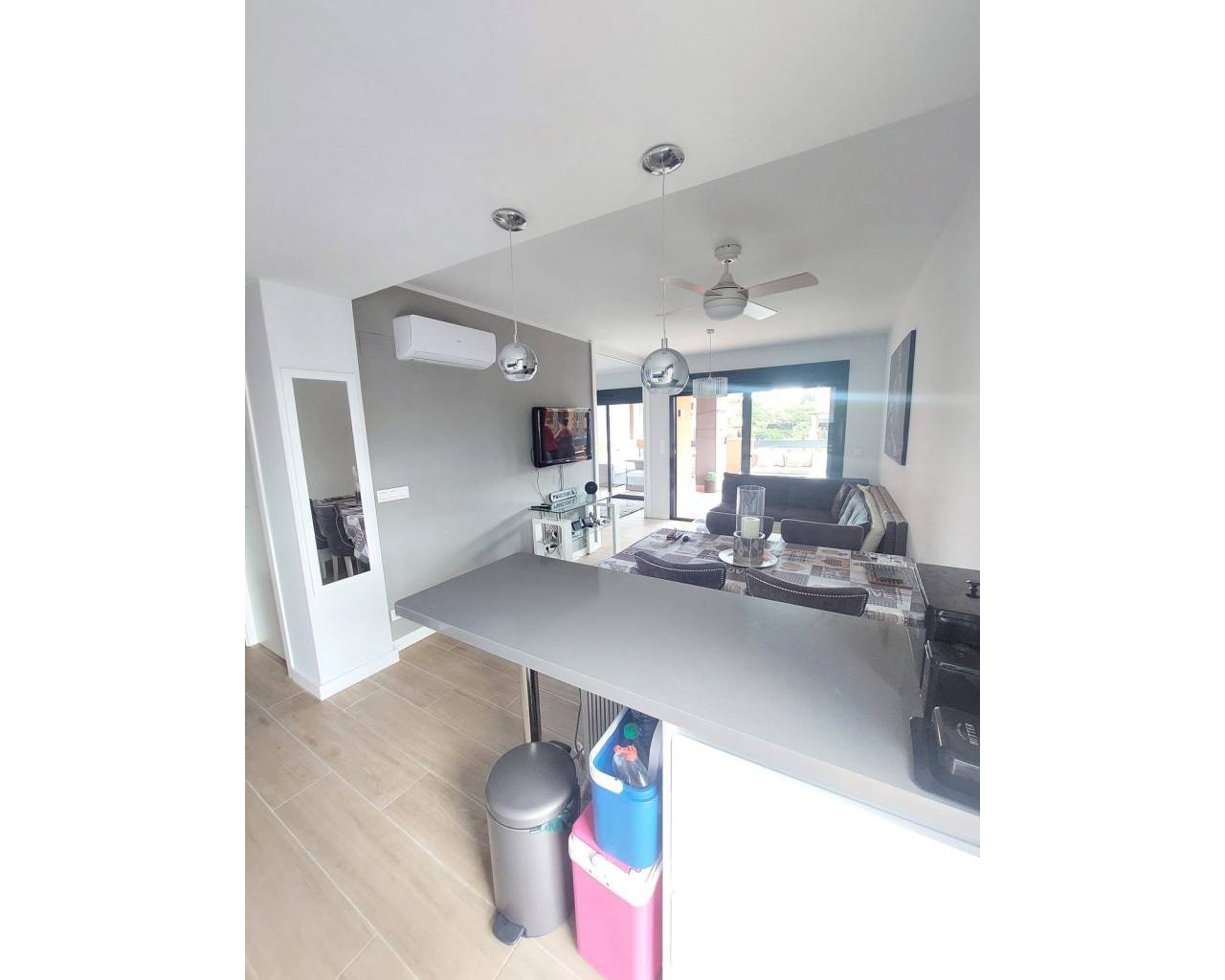 We are delighted to present to the sales market this almost new, resale, modern apartment located just a short walk from Villamartin Plaza, in the beautiful complex 'Palapa Golf'. This attractive development, painted in a distinctive orange hue, is ideally situated beside Villamartin Golf Course, making it perfect for golf enthusiasts, while still offering easy access to the shops, restaurants, and amenities of the plaza. The complex offers residents a large communal swimming pool, private gated parking, and the convenience of a lift, ensuring easy access to all floors. The communal areas are well-maintained, creating a welcoming and secure environment. Inside, the apartment features two double bedrooms, one of which includes an en-suite shower room leading directly to a practical utility/storage room. There is also a family bathroom, both equipped with underfloor heating for added comfort. The spacious open-plan living, dining, and kitchen area opens onto a remarkably large terrace, perfect for relaxing, entertaining, or enjoying the sunny Costa Blanca climate. The property also benefits from air-conditioning throughout, ensuring comfort all year round. Sold partly furnished, this apartment is in pristine condition, having seen very little use since construction. Its excellent condition makes it an ideal holiday home, permanent residence, or rental investment, with strong potential for return given its location near Villamartin Plaza and the popular golf course. If you are searching for a modern, stylish apartment close to Villamartin Plaza, look no further. This property combines comfort, convenience, and style in one of Costa Blanca South's most sought-after locations, offering an exceptional lifestyle opportunity or investment potential.