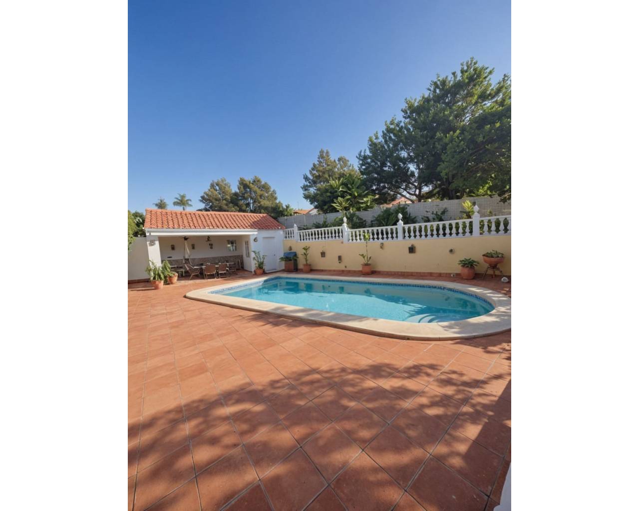 Stunning 5-Bedroom Detached Villa in San Miguel de Salinas, Alicante Welcome to your dream home in the picturesque Las Comunicaciones , San Miguel de Salinas! This exquisite 5-bedroom, 5-bathroom detached villa offers a perfect blend of luxury, comfort, and potential. Nestled in a serene location, the property boasts breathtaking views that will leave you in awe. Key Features: Spacious Living: With 5 bedrooms (plus a study which could also be used as an additional bedroom) and 5 bathrooms, this villa provides ample space for families or guests. The flexible layout allows for the possibility of using the property as two separate living spaces, making it ideal for multi-generational living or rental opportunities. Private Heated Pool: Dive into relaxation with your own private heated pool which is south facing and not overlooked, perfect for year-round enjoyment. The adjacent pool house and outdoor toilet add convenience and space for entertaining. Outdoor Oasis: Enjoy the beautifully landscaped front, side, and rear gardens, providing the perfect backdrop for outdoor gatherings, gardening, or simply soaking in the sun, there is also a built in barbecue area with a gas barbecue. There is a lovely jacuzzi area is covered by pergola meaning it can be used in all weathers! The Solarium offers additional space to unwind and take in the stunning views of the mountains surrounding area. Comfort and Convenience: The villa is equipped with air conditioning and a gas-oil boiler for efficient water and central heating, ensuring year-round comfort. Parking: Secure, gated (electric) parking is available, providing peace of mind. Proven Rental Potential: This property has a strong rental history, making it an excellent investment opportunity for those looking to capitalize on the thriving vacation rental market in Alicante. In brief the property comprises; To the ground floor you enter via a spacious hallway which also provides access to the upper floor. There is a spacious living/dining room with a fully equipped bar area making it perfect for entertaining! There is a large separate, fully fitted kitchen. There are two double bedrooms, one of which is en-suite and a further family bathroom on this floor as well as the "6th" bedroom which would make a perfect study or nursery. The top floor can also be accessed via an outside staircase adjacent to the private swimming pool and you enter here through a spacious fully fitted kitchen which leads into a very large living/dining area. From here you will find three double bedrooms, one of which is en-suite and also a further family bathroom. Don't miss the chance to own this incredible villa in a sought-after location. Whether you're looking for a family home, a vacation retreat, or an investment property, this villa is the perfect choice! Contact us today for a viewing and experience all that this stunning property has to offer.