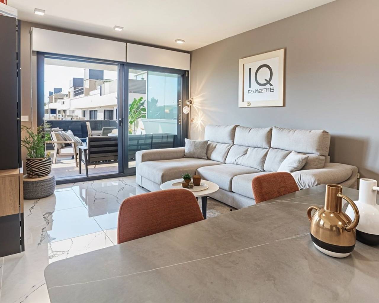 Modern & Luxurious Apartment in Los Altos – Amanecer X Resort (Orihuela Costa) barely 1 year old Price: €289,000 – 2 Bedrooms · 2 Bathrooms · 71 m² + 20 m² terrace · Underground parking, storage room, and electronic alarm for access. Step into this nearly new and extremely stylish apartment on the second floor of the exclusive Amanecer X resort. This is one of the most luxurious residences in Orihuela Costa, known for its modern architecture, premium finishes, and beautiful communal areas. Layout & Finish - 2 spacious bedrooms with built-in wardrobes - 2 modern bathrooms, one en-suite - Open-plan designer kitchen with high-quality appliances - Bright living area with large sliding windows - Spacious 20 m² private terrace overlooking the garden and pool - Only 1 year old, fully furnished, never rented - Airzone system, underfloor heating in bathrooms, electric shutters Amenities - Large communal swimming pool + children's pool - Fitness room, jacuzzi & sauna - Tropical landscaped gardens - Underground private parking + storage Location Located in Los Altos, a short distance from supermarkets, restaurants, La Zenia Boulevard, beaches, and golf courses. Perfect as a holiday home, permanent residence, or investment.