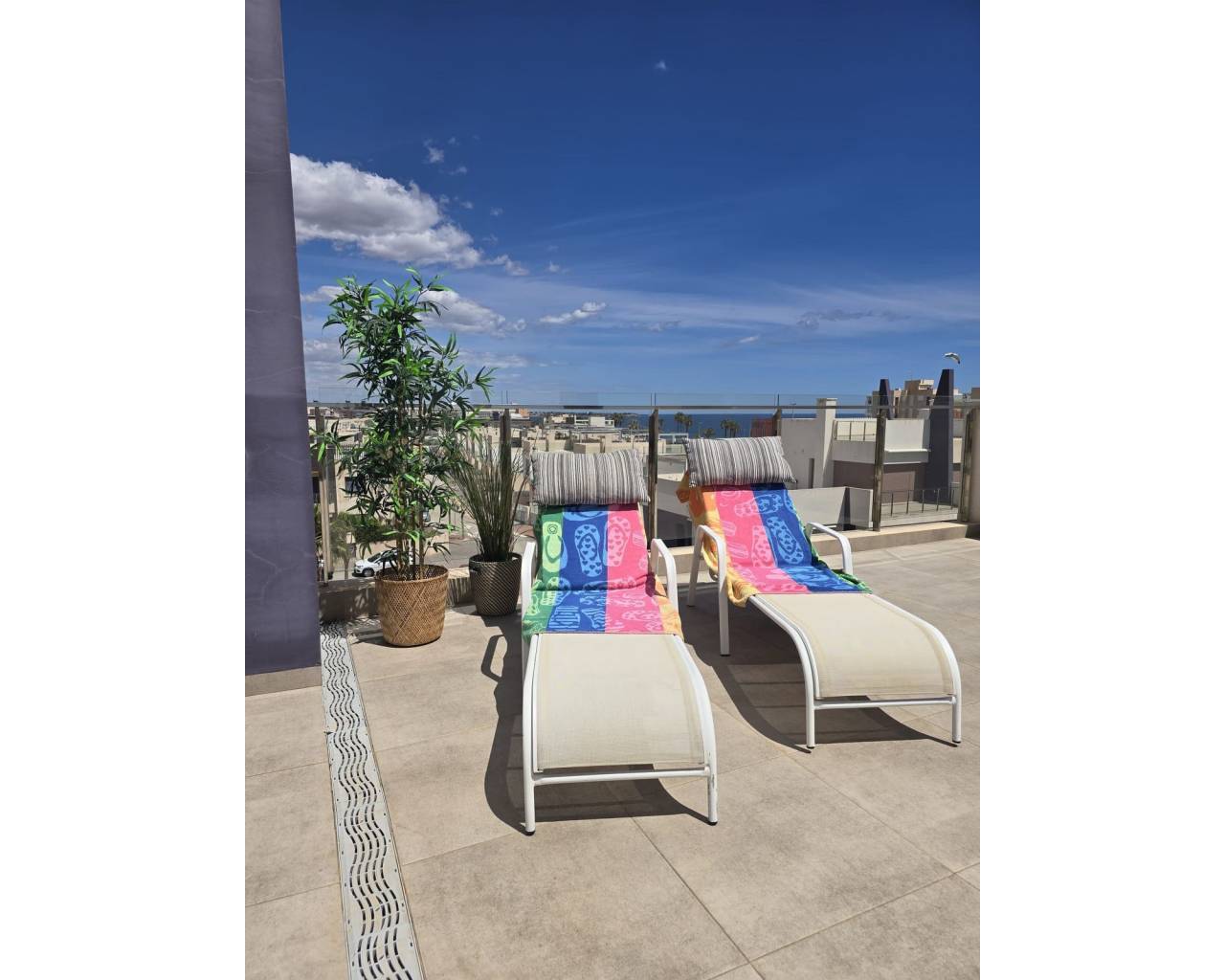 ✨ Dream Penthouse with Sea Views – Mil Palmeras ✨ Only 5 Minutes Walk to the Beach! Discover this stunning penthouse in one of the most desirable coastal areas of the Costa Blanca. Combining luxury, space, and location, this property is perfect for living, holidays, or investment. Property Highlights: • 3 spacious bedrooms | 2 modern bathrooms (master en-suite) • Bright open-plan living & kitchen area • 90 m² main terrace with lounge area, sunbeds & BBQ ☀️ • Additional 80 m² rooftop terrace – ideal for jacuzzi, outdoor kitchen or gym • Beautiful sea views • South-facing for all-day sun • Built in 2020 – excellent condition • Air conditioning & fitted wardrobes • Lift in the building Exclusive Gated Community: • 2 communal swimming pools • Children's playground • Safe, quiet and family-friendly environment Top Location: • 5-minute walk to Mil Palmeras Beach • Walking distance to restaurants & paddle tennis club • 10-minute drive to La Zenia Boulevard shopping center ✨ A rare opportunity to own a luxury penthouse by the sea in a prime location. Contact us today to arrange your private viewing – don't miss out!