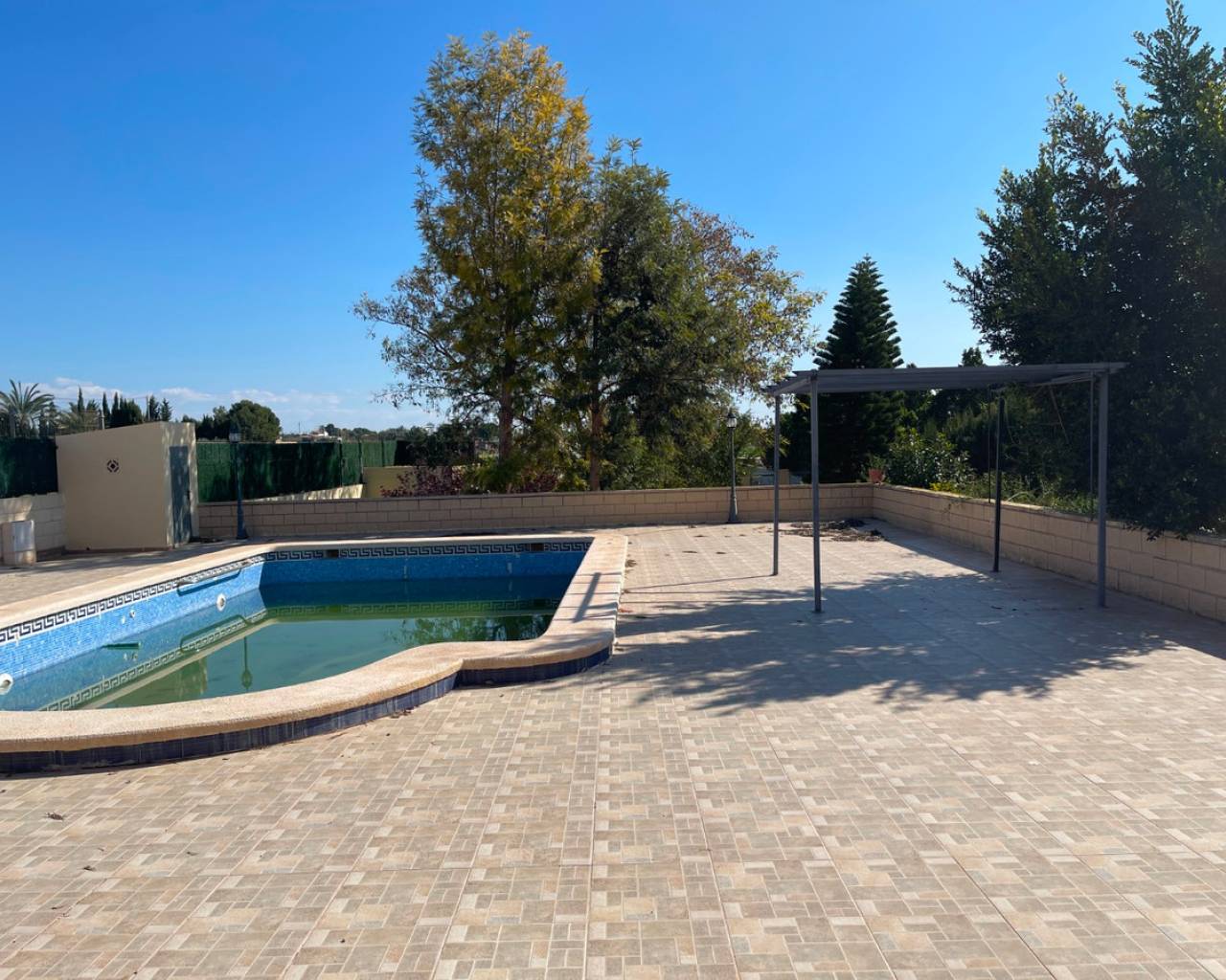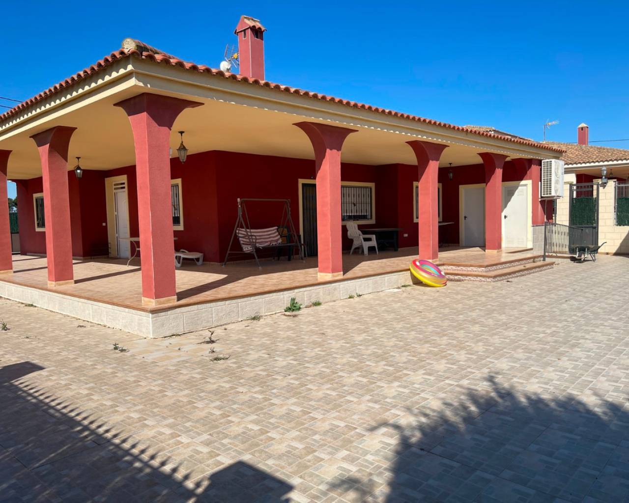 This villa is located between Albatera and Crevillente, offering excellent connections to both cities. It is less than 5 minutes from the motorway, providing quick access to Murcia, Alicante, the airport, and Costa Blanca, all approximately 30 minutes away.The property features a house with 132 m² of usable space, which is in excellent condition. All rooms are spacious and bright, with 3 bedrooms, one of which is en-suite, and a total of 2 fully equipped bathrooms. The kitchen is in top condition, and the large living room provides a comfortable and inviting environment. Additionally, the house is equipped with air conditioning via ducts, offering both cooling and heating functions for year-round comfort.Outside, you can enjoy a large terrace of over 49 m², ideal for relaxing in the shade during the summer months. The main garden, covering 2,000 m², includes a swimming pool of approximately 35 m², a barbecue area, several trees, and a fully fenced plot with an electric gate for easy vehicle access. At the end of the garden, you will find a 12 m² storage room.The property also includes an additional plot of around 11,000 m², which can be used for agricultural purposes.The house is in excellent condition, though the swimming pool requires some minor adjustments to the tiles. Other than that, the house is ready for immediate move-in.Please feel free to contact us to arrange a viewing and discover everything this fantastic property has to offer.
