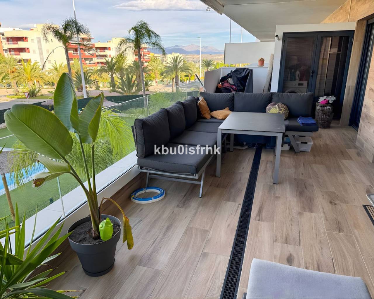 Luxury apartment in Arenales del Sol with 2 bedrooms, 2 bathrooms, parking space and a large terrace with views of the park, mountains and swimming pool. We are pleased to present this nearly new luxury apartment, located in a modern building less than two years old, in one of the most exclusive and sought-after areas of Arenales del Sol. The property has been built with high-quality materials and is fully equipped and tastefully furnished in an elegant, modern and comfortable style, offering an excellent standard of living. The apartment comprises two spacious bedrooms, including a master bedroom with private access to an en-suite bathroom. There are two modern, designer bathrooms finished to a high standard. Large windows provide plenty of natural light throughout the property, and all rooms enjoy direct access to the generous terrace, creating a seamless connection between indoor and outdoor living. The large private terrace offers open views over the park, the surrounding mountains and the communal swimming pool, making it an ideal space for relaxing, dining or enjoying the Mediterranean climate. The apartment is located within a premium residential complex featuring a large sports-style swimming pool, a fully equipped gym, beautifully maintained communal areas and a private parking space. Comfort and energy efficiency have been carefully considered, with central air conditioning and heating, an efficient system resulting in very low electricity costs, individual hot water supply and high-quality furniture included. The property is in impeccable condition and has been carefully maintained by the current owners. Arenales del Sol is a highly desirable coastal location, just a five-minute walk from the beach, known for its white sand, gentle access to the sea and protected natural dunes, offering peace and tranquillity. The area is safe, elegant and exclusive, ideal for both permanent living and holidays. Excellent transport connections complete the offering, with Alicante Airport just seven minutes away by car and Alicante city centre reachable in fifteen minutes by car or around twenty minutes by bus. The property is offered at a very attractive promotional price compared to other nearly new apartments in this luxury area, representing an outstanding opportunity.
