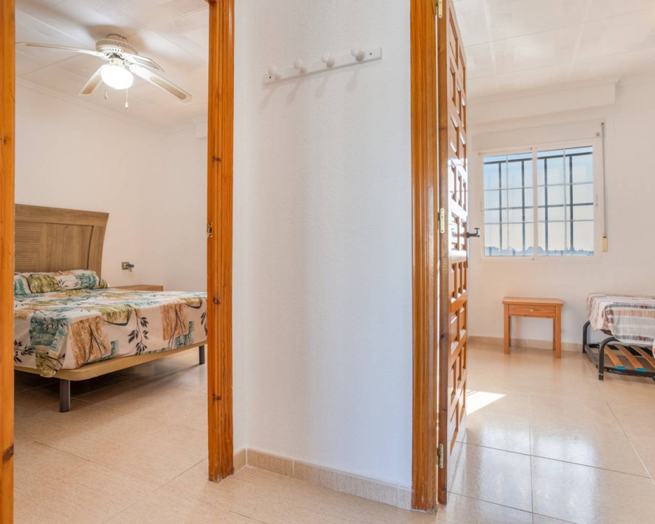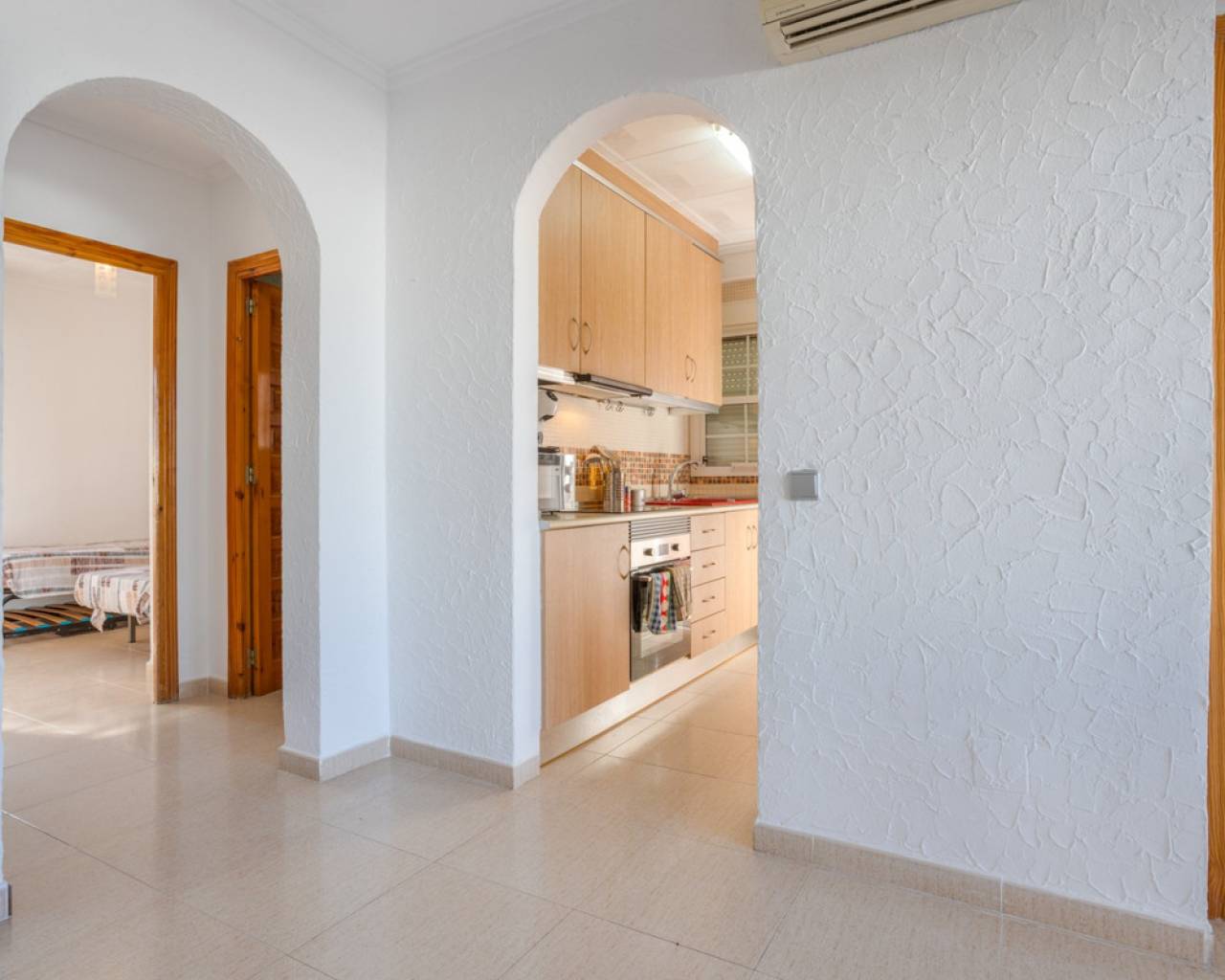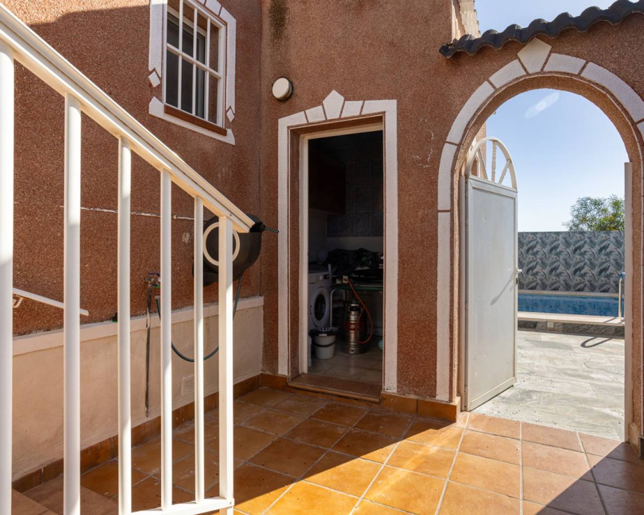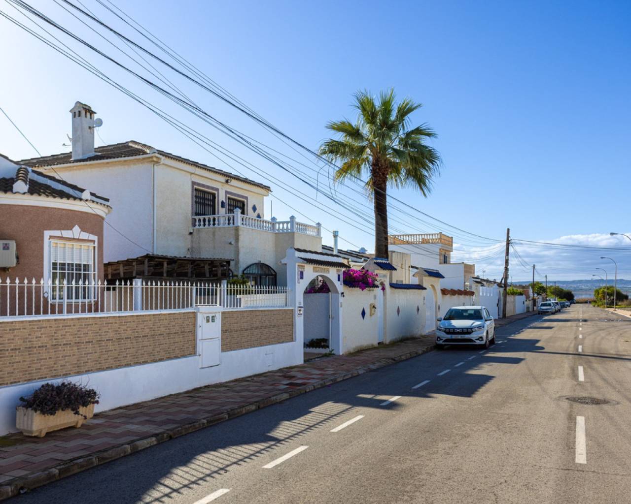 Discover this charming detached villa, located in a quiet and pleasant residential area of Torrevieja, perfect for those seeking privacy, comfort, and a high quality of life near the sea. The property sits on a spacious 300 m² plot and offers ample outdoor space to enjoy the Mediterranean climate year-round. The property comprises 60 m² of living space, practically and functionally laid out. Inside, you'll find three bright bedrooms, two with fitted wardrobes, and two full bathrooms, ideal for a family or for entertaining guests. The separate kitchen is fully equipped with appliances and features a utility room directly adjacent to the kitchen for added convenience and storage. The villa is in good condition and is sold furnished, ready to move into. The living room is equipped with air conditioning, ensuring comfort in any season. Outdoors, the property boasts a beautiful and practical recreation area with a private pool, perfect for relaxing and enjoying time with family and friends. It also includes a fully tiled terrace, ideal for al fresco dining, a storage/laundry room, and a private parking space. The west-facing location ensures beautiful sunsets and abundant natural light in the afternoon. Location and distances:Beach: 15 minutesLeisure areas, restaurants, and shops: 5 minutesGolf course: 10 minutesAirport: 40 minutes An ideal property as a permanent residence, holiday home, or investment, combining privacy, outdoor space, and a prime location on the Costa Blanca.