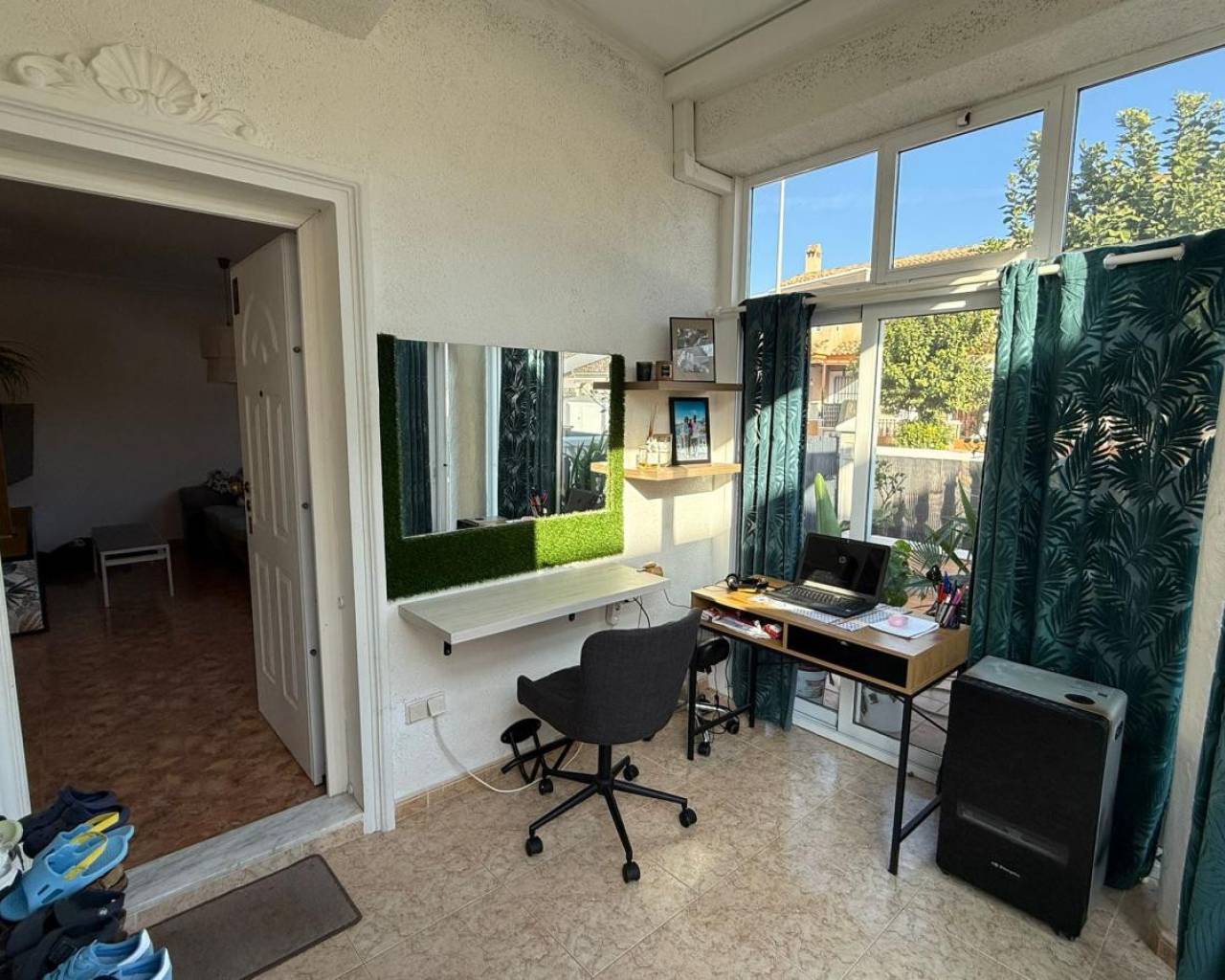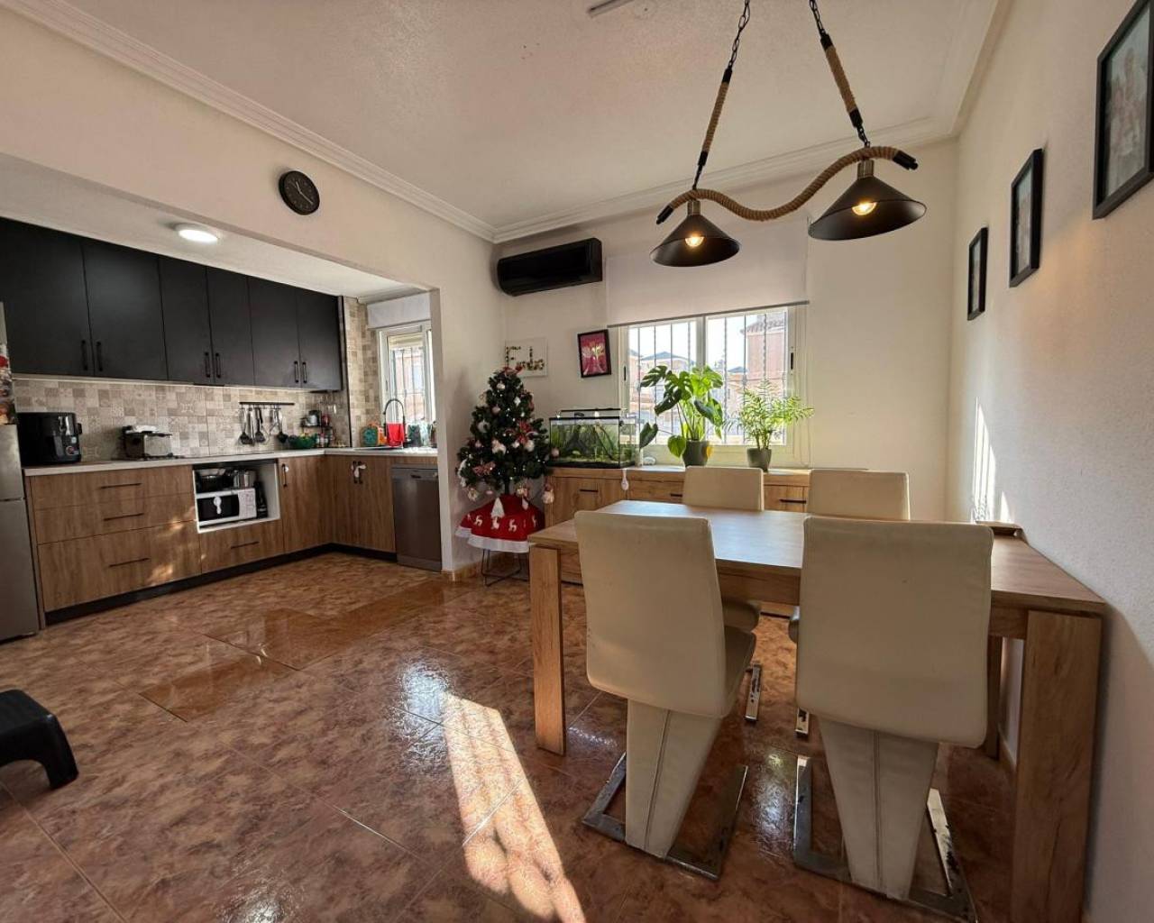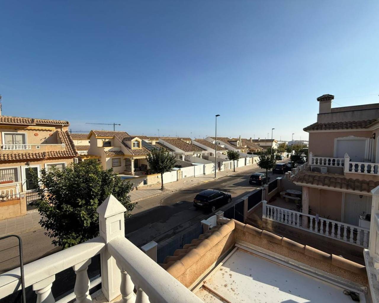 Fantastic semi-detached house for sale in the highly sought-after area of Torre de la Horadada. Situated in a peaceful residential community with a lovely communal pool, this property is less than 900 meters from the stunning beaches of Torre de la Horadada an exceptional location for both holiday living and year-round comfort. As you enter the property, you are welcomed by a spacious front porch, perfect for parking your car, hosting outdoor dinners, or simply relaxing and enjoying the exceptional Mediterranean climate. Yuou have a North terrace for morning sun, East terrace and south terrace to enjoy the sun till the last moment. Inside, the home stands out for its excellent condition fully renovated, beautifully maintained, and ready to move in. The ground floor features a bright and spacious living room, a modern kitchen, and a bathroom. Heading up to the first floor, you will find two generous bedrooms with built-in wardrobes and a complete bathroom. A fantastic bonus: both bedrooms offer access to a shared balcony, ideal for enjoying morning coffee or an evening breeze. On the second floor, a large private solarium awaits you. Whether you love sunbathing, entertaining, or creating your own chill-out area, this space gives you endless possibilities. This duplex truly has it all location, condition, outdoor space, and access to a wonderful communal pool. Homes like this are in high demand, so don't miss your opportunit