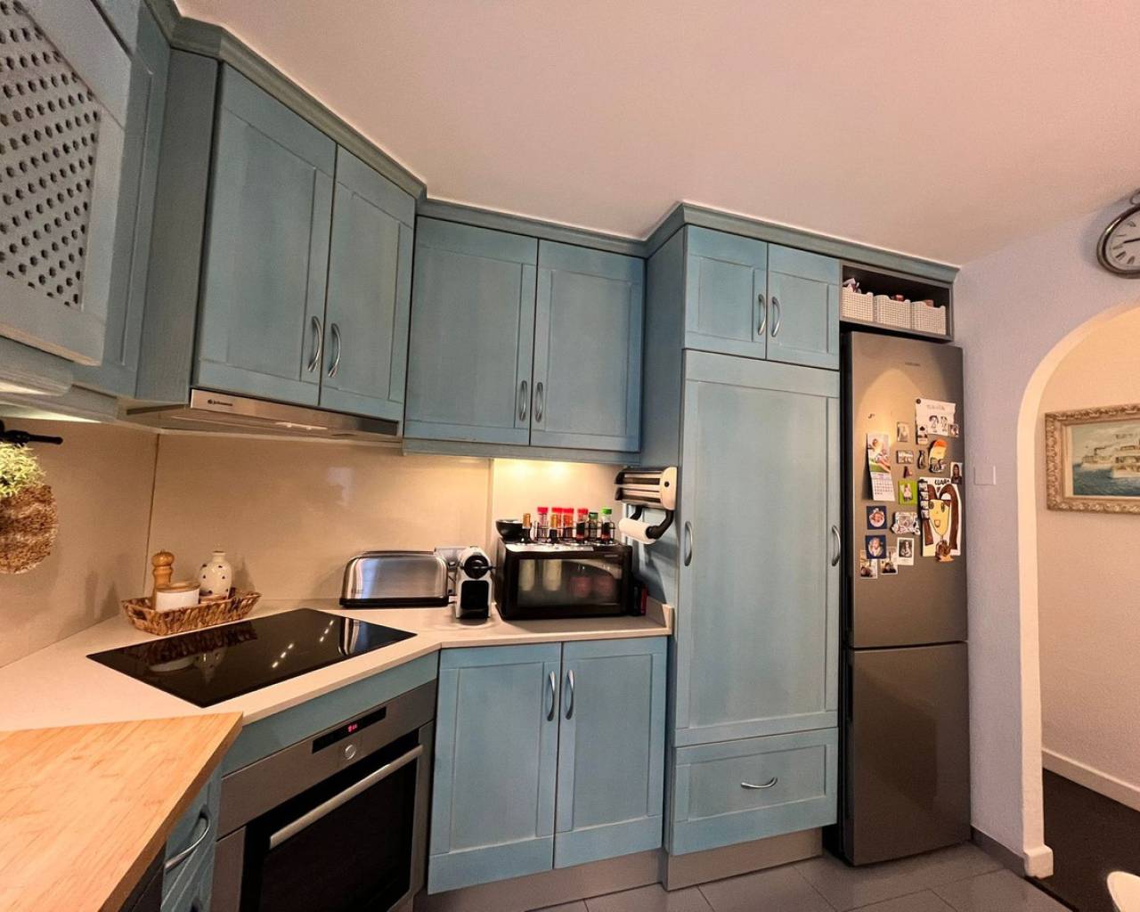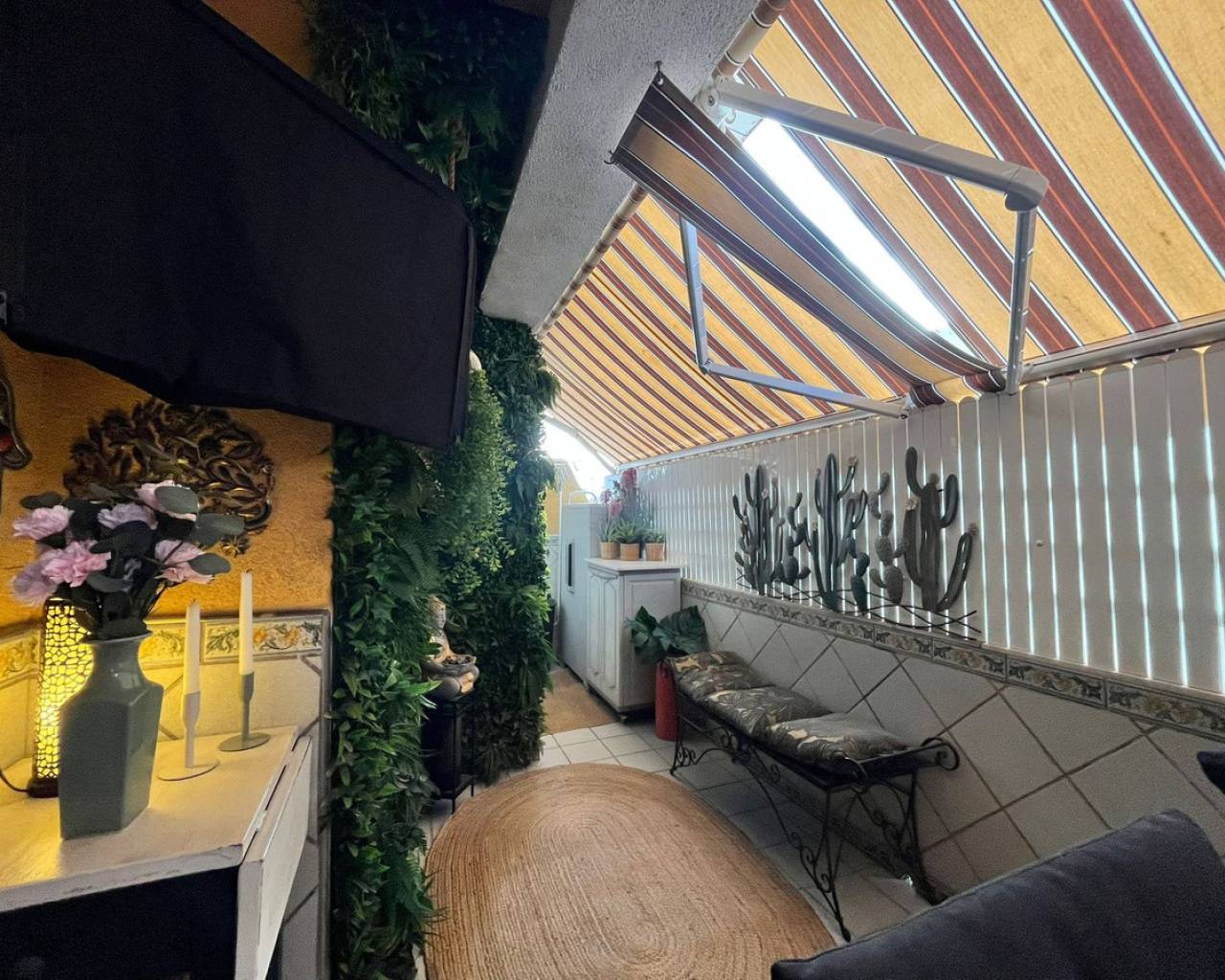 Exceptional Penthouse in Torrevieja – 750 m from Playa del Cura Located in Torrevieja, just a 10-minute walk from the famous Playa del Cura, this magnificent penthouse enjoys a privileged location close to all amenities: shops, restaurants, services, and transport links. The apartment stands out for its generous volumes, excellent condition, and luxurious furnishings. The spacious living room with fireplace, arranged over two levels, offers a bright, open, and very comfortable living space, extended by a welcoming dining area. The kitchen is separate, fully equipped, and furnished with high-quality materials. The property features three bedrooms, one of which is currently arranged as a dressing room with a sofa bed, offering great flexibility of use. Two fully equipped bathrooms, each with a WC, washbasin, and shower, complete the sleeping area. Outside, a very large, partially covered terrace provides a true additional living space. It is equipped with awnings, a barbecue, and wall heating, making it ideal for year-round outdoor enjoyment. The apartment is equipped with two hot/cold air-conditioning units, a limescale water filtration system for the entire home, and an osmosis system for drinking water. A next-generation thermoelectric water heater was installed in 2025. The kitchen is fully equipped: beechwood doors, Silestone worktops and splashbacks, refrigerator, freezer, oven, microwave, and ceramic hob. The washing machine and dryer are installed on the terrace in a dedicated cupboard. The apartment also features a centralized TV installation with an individual satellite dish, an alarm system, ceiling fans in two bedrooms, the living room, and the terrace, as well as a thermostatic shower in the main bathroom. The property is sold partially furnished, including the living room furniture, the main bedroom furniture, the sofa bed in the dressing room/bedroom, the bed in the second bedroom, the kitchen table and chairs, and the terrace furniture. A rare penthouse on the market, combining comfort, high-quality features, and an ideal location just minutes from the sea.