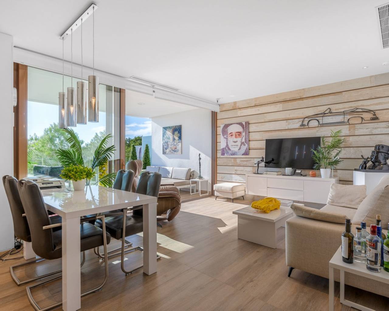 This stylish apartment with 2 bedrooms and 2 bathrooms is located in the exclusive Acacia community of Las Colinas Golf & Country Club, one of the most prestigious resorts on the Costa Blanca. The property offers a spacious and light filled living area with open kitchen, designed for comfortable living and relaxed enjoyment. Large sliding windows that fully disappear into the walls create a seamless connection between indoor and outdoor spaces, allowing the living area and the generous terrace to merge into one. From the terrace you can enjoy stunning panoramic views over the golf course and the sea, as well as direct views of the beautiful infinity pool, which blends perfectly into the surroundings and enhances the sense of luxury and tranquillity. Thanks to its favourable orientation, the apartment enjoys natural light throughout the day. The apartment is impeccably maintained and is sold fully furnished, making it completely move in ready. Its location close to the infinity pool, landscaped gardens and green areas highlights the exclusive and peaceful character of the community. The property also includes a private underground parking space, offering additional comfort and security. An ideal choice as a luxury holiday home, permanent residence or a solid investment in a prime location where golf, nature and sea come together.