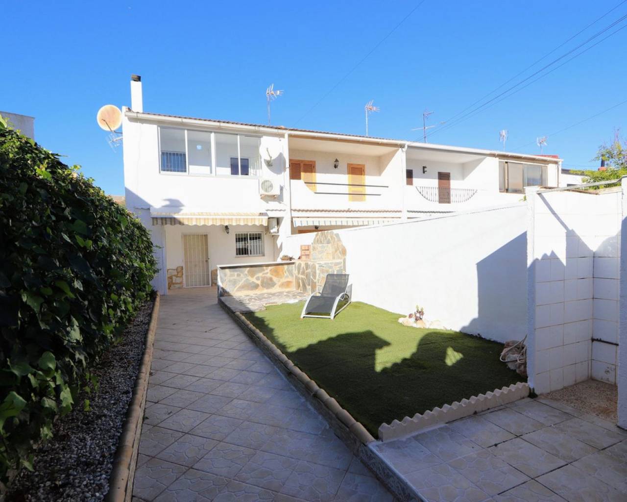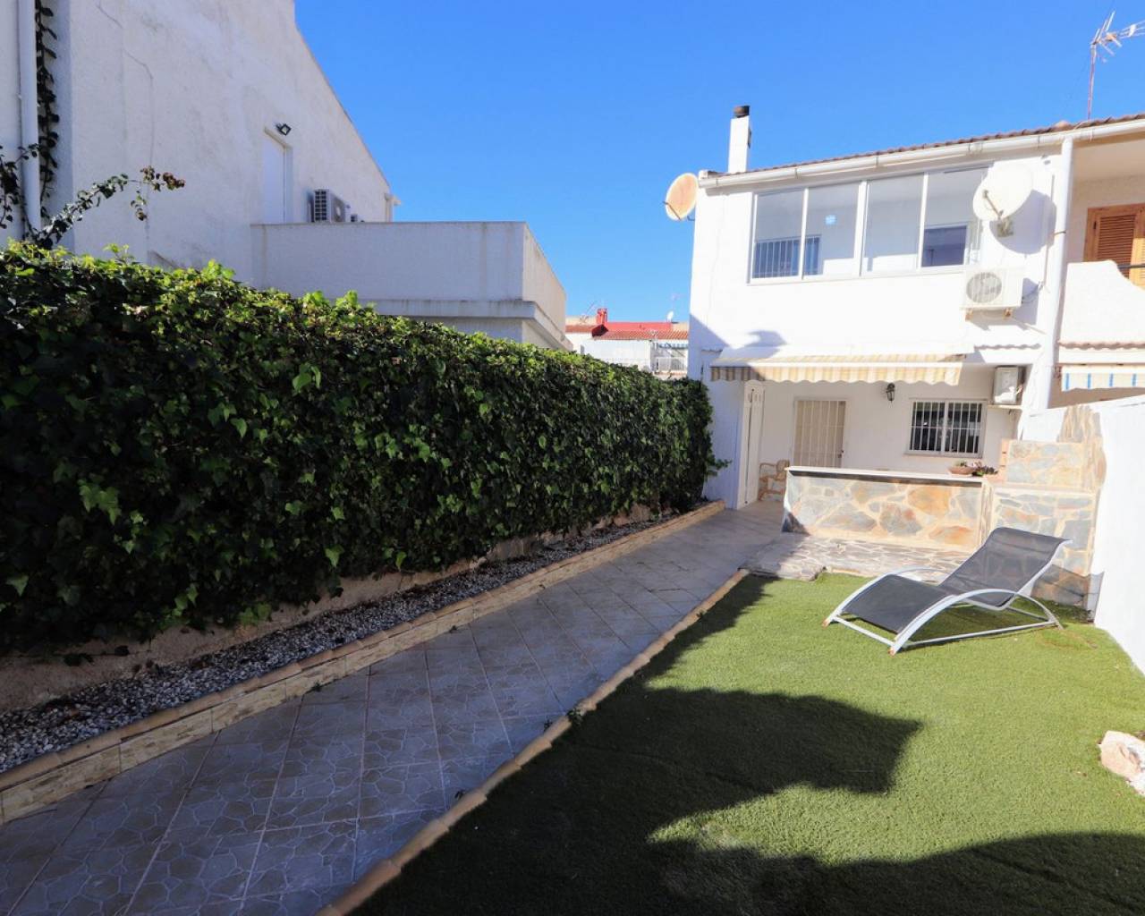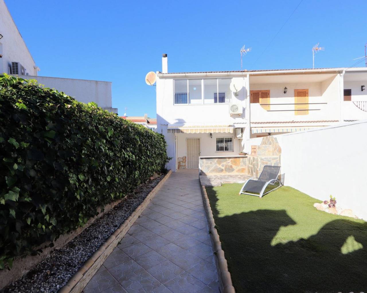 Take a look at this Lovely Semi Detached Villa located in Los Balcones. The property offers 3 bedrooms with wardrobes, 1 bathroom, living/dining area and a fully fitted kitchen. The property benefits from a private sunny terrace, and another terrace at the back with storage room and air conditioning. The property is located in a peaceful and well-connected area and you'll find supermarkets, pharmacies, restaurants, and cafés within walking distance and for shopping and entertainment, the popular La Zenia Boulevard is just a short drive away. Los Balcones is a quiet area with good transport connections. It is a quiet residential area with many parks and green areas and it is close to wonderful beaches from Torrevieja such as Playa de los Náufragos and it is 7 km away from Aquopolis Torrevieja water park. It is also close to hospitals like the Hospital Universitario de Torrevieja (3 km away) and airports such as Alicante Airport (35 km away) and Region of Murcia International Airport (43 km away). Los Balcones has its own facilities close by at the Filton shopping centre with amenities such as a supermarket, hairdressers, bars and restaurants, and an Ironmongers etc There is also a large supermarket and 2 pharmacies one at each end of the main zone. There is a local primary school a short distance away, and the bus route for all secondary schools and to the city of Torrevieja.