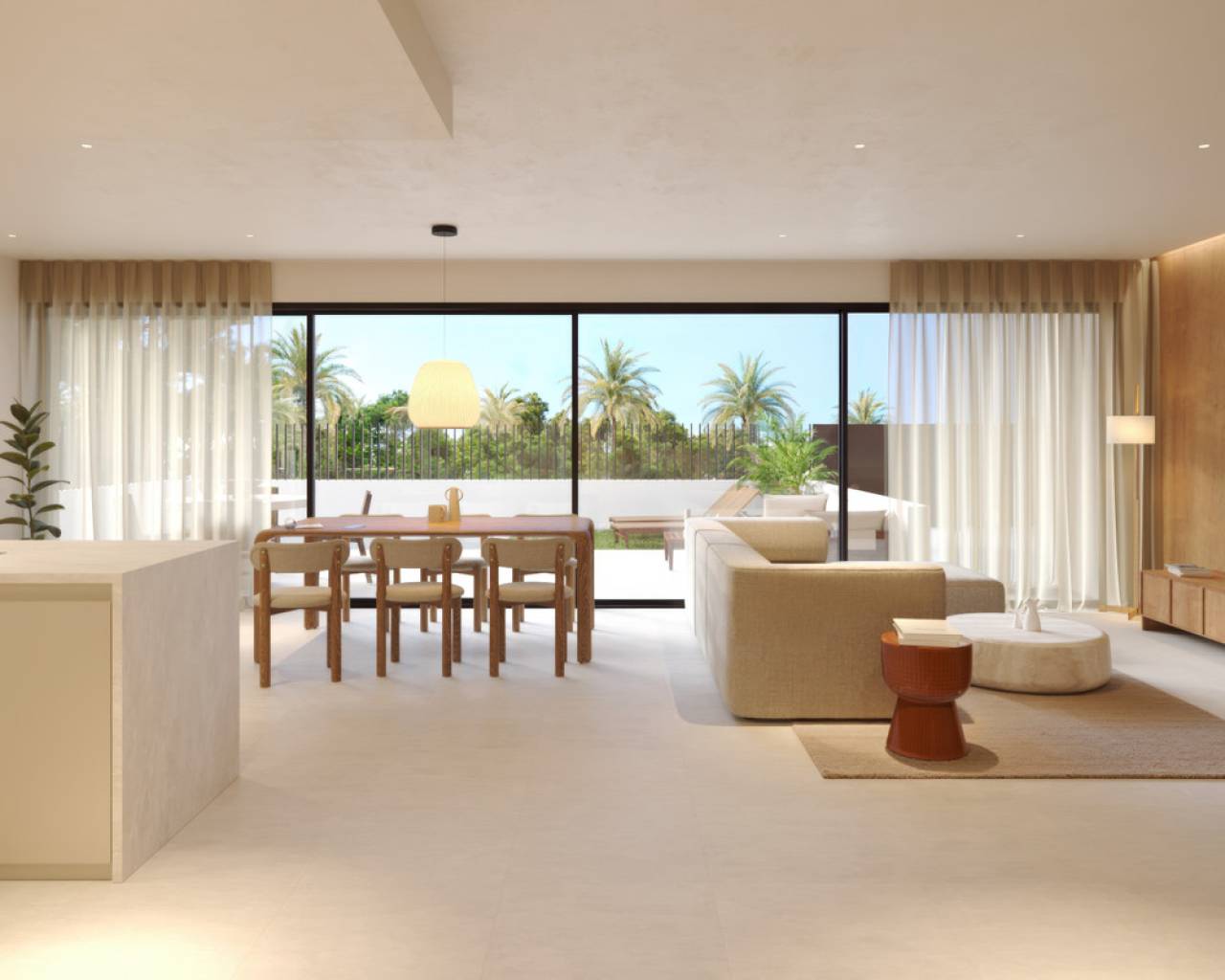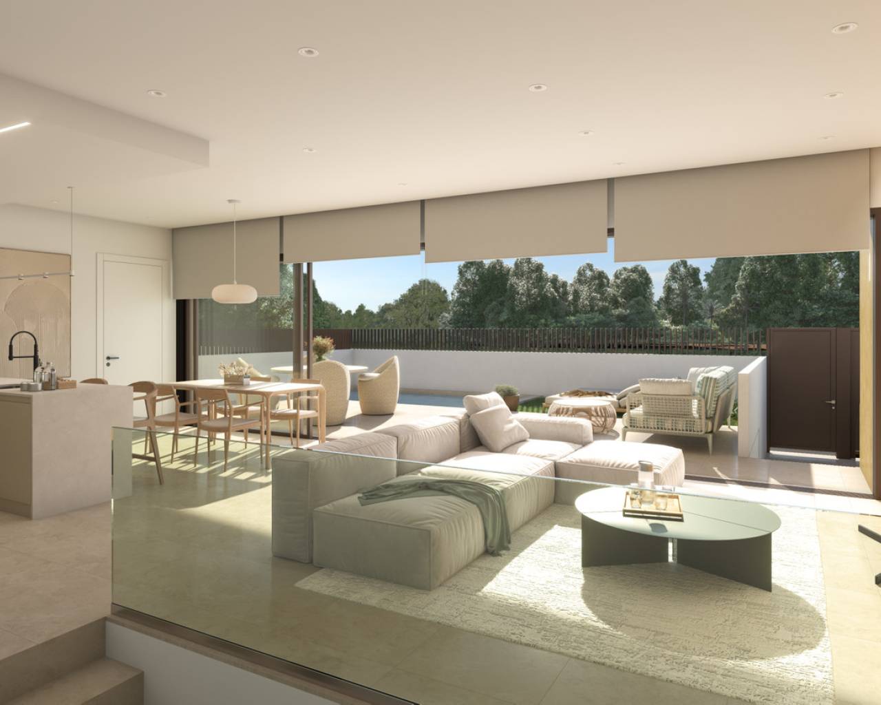 An new exclusive development comprised of just 14 single-story detached homes, designed to offer privacy, comfort, and a contemporary lifestyle. Located in Dolores, in a quiet area close to all amenities, the residential complex enjoys excellent transport links to Elche and the beaches of Guardamar del Segura, making it an ideal choice for both permanent residence and extended stays. Each home has been designed to maximize natural light and the connection between indoors and outdoors. The heart of the home is a spacious living-dining room with an integrated kitchen and breakfast bar, spanning over 45 square meters, which opens to the outside through a spectacular sliding glass door over 8 meters long. This opening creates a continuous indoor-outdoor space of over 80 square meters, seamlessly integrating the terrace and private pool into the daily life of the home. The houses feature three double bedrooms, including a master bedroom with an en-suite bathroom and open dressing room, as well as a second full bathroom. Each has a private plot with a swimming pool and parking space, and offers the option of adding a solarium of approximately 50 m², equipped for a barbecue area and jacuzzi. The complex stands out for its quality, energy efficiency, and design focused on enjoying the climate and comfort year-round.