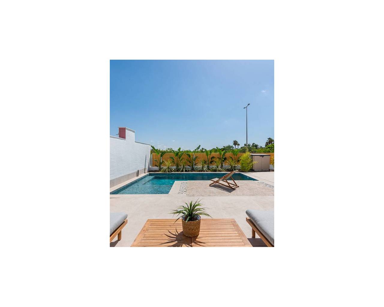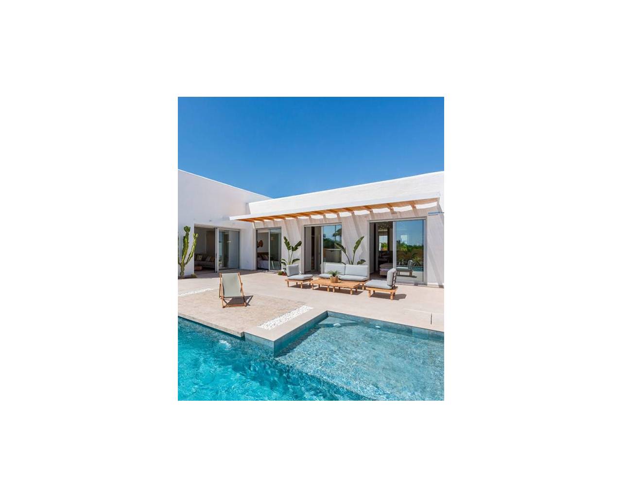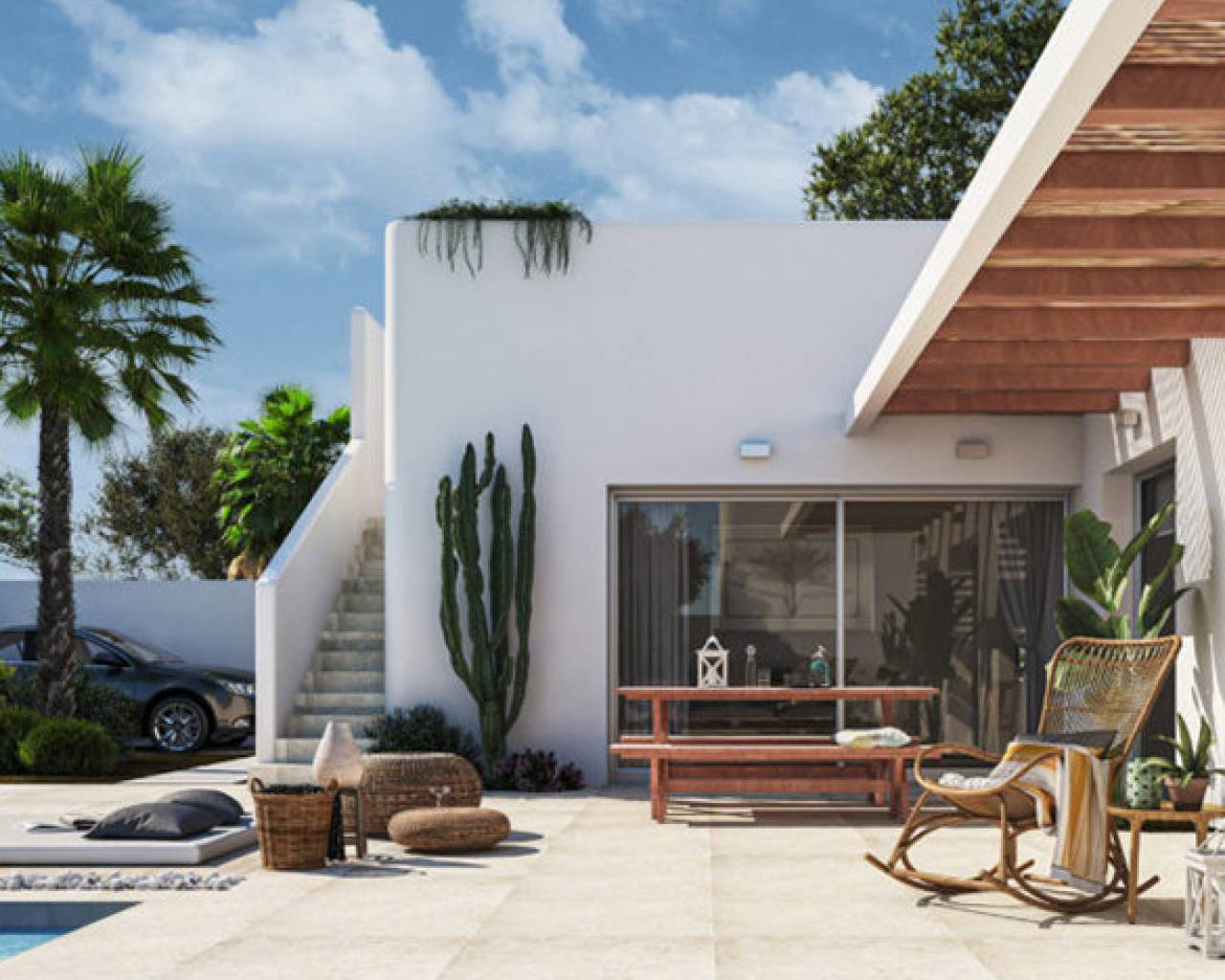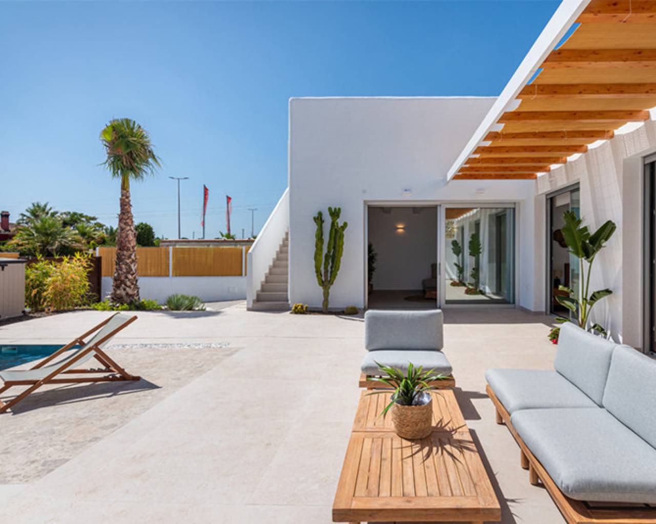 This new residential is located in Dolores (Alicante), a privileged area of the Costa Blanca, surrounded by nature and equipped with all services. 25 minutes from Alicante airport, near the beautiful beaches of Guardamar del Segura and a few minutes from the main golf courses in the area. Its excellent location makes the residential a perfect option for those looking for tranquillity. The residential is made up of 6 homes Ibizan style townhouses on plots independent with terrace, lounge area parking and private pool. The homes consist of a living-dining room, a fitted kitchen, 3 bedrooms, 2 bathrooms, 1 pantry and a solarium with privileged views. All of them carefully designed with high quality materials to satisfy the most demanding customers demanding. Outdoor parking spaces are available for Villa 05 and Villa 06.