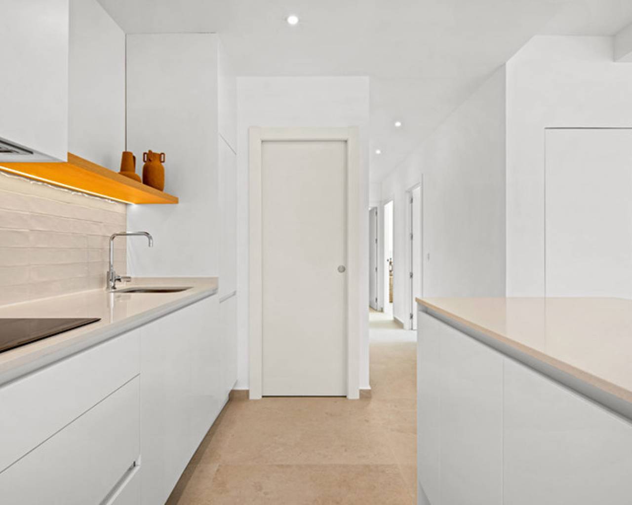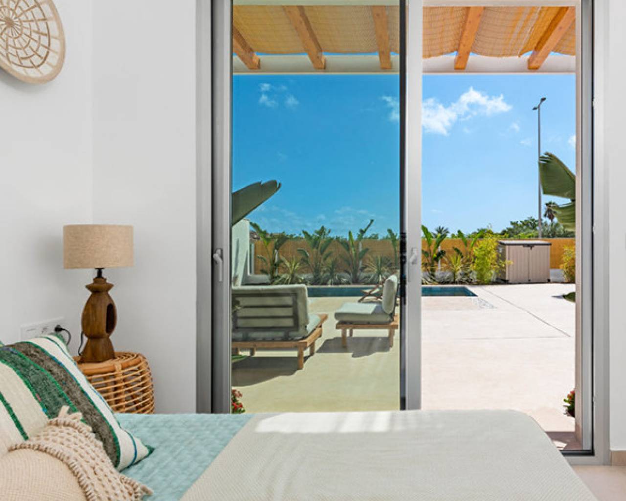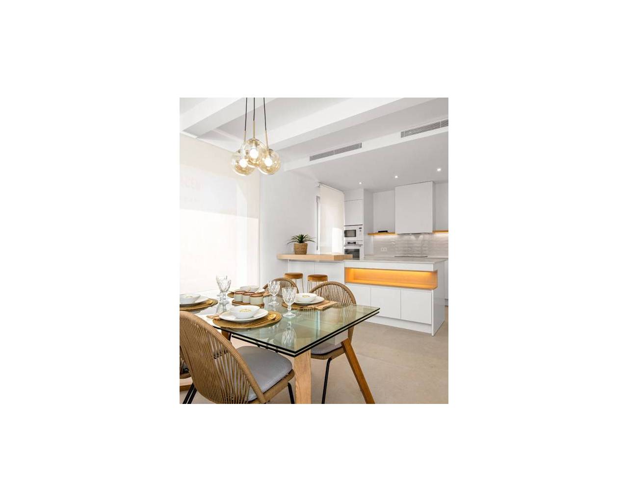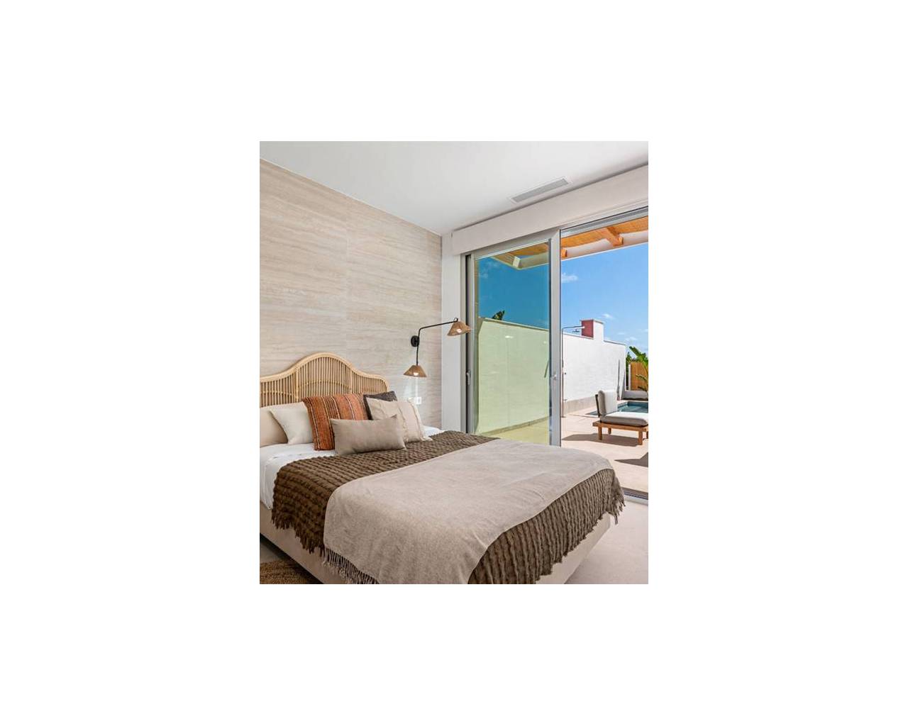 This new residential is located in Dolores (Alicante), a privileged area of the Costa Blanca, surrounded by nature and equipped with all services. 25 minutes from Alicante airport, near the beautiful beaches of Guardamar del Segura and a few minutes from the main golf courses in the area. Its excellent location makes the residential a perfect option for those looking for tranquillity. The residential is made up of 6 homes Ibizan style townhouses on plots independent with terrace, lounge area parking and private pool. The homes consist of a living-dining room, a fitted kitchen, 3 bedrooms, 2 bathrooms, 1 pantry and a solarium with privileged views. All of them carefully designed with high quality materials to satisfy the most demanding customers demanding. Outdoor parking spaces are available for Villa 05 and Villa 06.