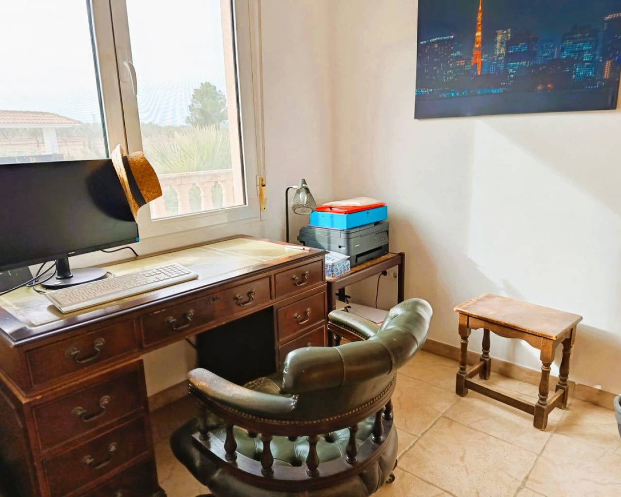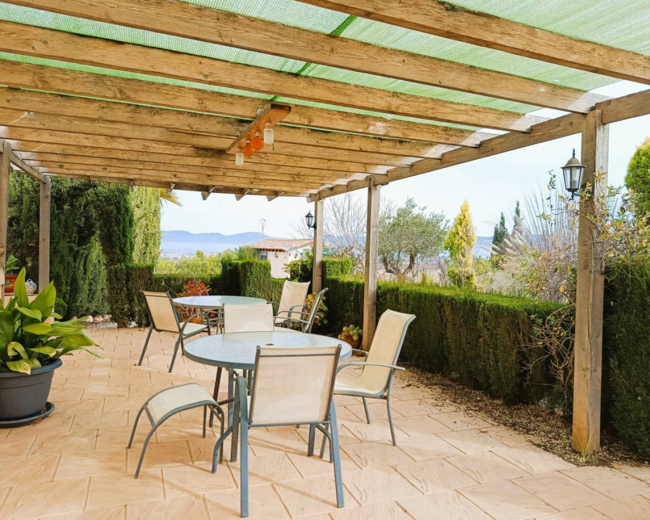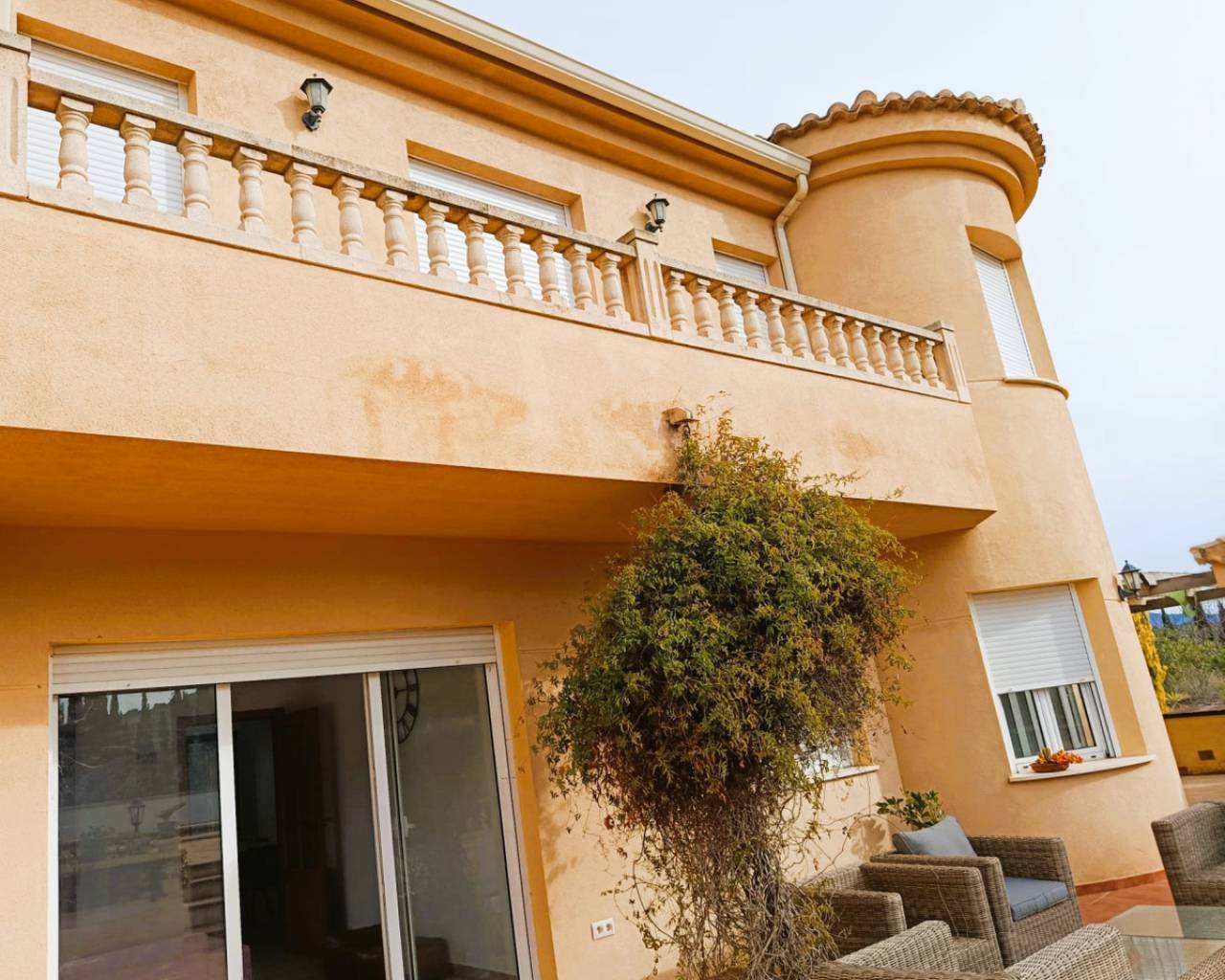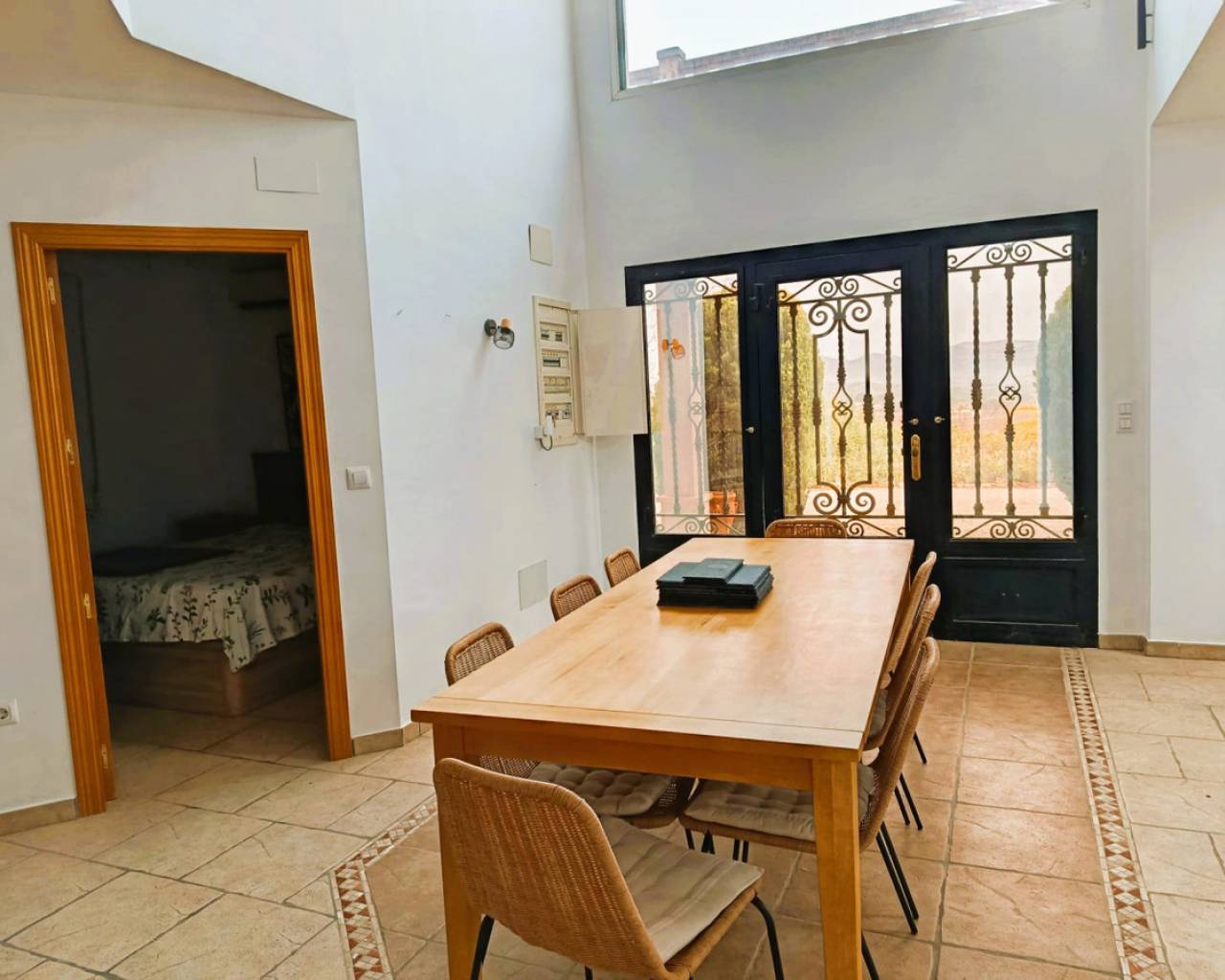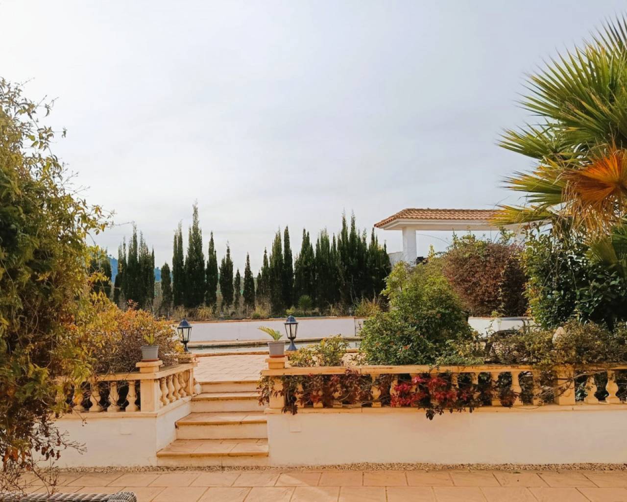 Set within more than 13,000 m² of enclosed land, this remarkable villa enjoys an elevated position with wide-ranging views across the surrounding countryside and uninterrupted sightlines to Sax Castle. While immersed in a rural setting, the property is officially located within the Elda municipality. Entry to the estate is through electric gates, opening onto a private driveway and double garage. The grounds have been designed for outdoor enjoyment, offering multiple areas to relax and entertain, including a covered dining space, a fully equipped summer kitchen and bar, and a dedicated BBQ area with an Indian tandoor. The land also incorporates a herb garden and established fruit trees such as fig and apple. The villa stands out architecturally, with its distinctive twin towers connected by an upper-level balcony. From this elevated position, the rear bedrooms overlook the sun-filled pool area and surrounding terraces, creating a strong connection between the house and its outdoor spaces. The main entrance, facing south, leads into a spacious reception area currently used as a dining room. Large windows allow light to flow through the interior throughout the day, while framing views of the landscape beyond. On this level, the property also offers a well-proportioned kitchen, a comfortable living room centred around a double-sided fireplace, a double bedroom and a bathroom. The first floor is arranged around a central gallery, giving access to four bedrooms and two bathrooms, with balconies on both sides of the house. Two of the bedrooms are located within the towers; one features an en-suite bathroom, while the other shares a Jack-and-Jill bathroom. At the top of the house, a further staircase leads to a practical service area and a roof terrace, from where the views towards Sax Castle are particularly impressive, especially after dark. The property is connected to mains services and benefits from solar panels installed in recent years, significantly reducing electricity costs. Underfloor heating and air conditioning ensure year-round comfort. Carefully planned and solidly built, the villa features 29 windows, providing light, views and a sense of space in every room. This is a substantial and well-equipped home, ideal for those seeking privacy, character and energy efficiency, combined with exceptional surroundings.