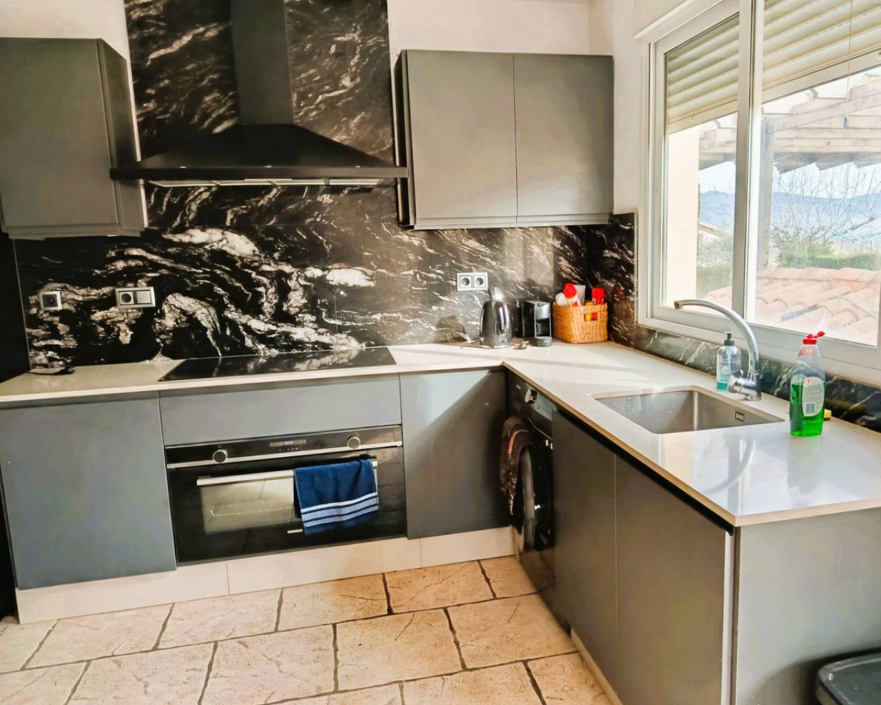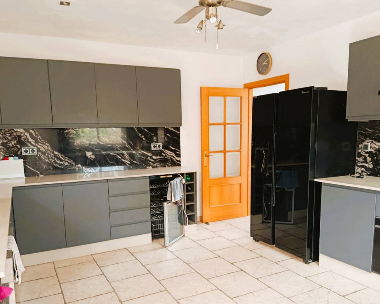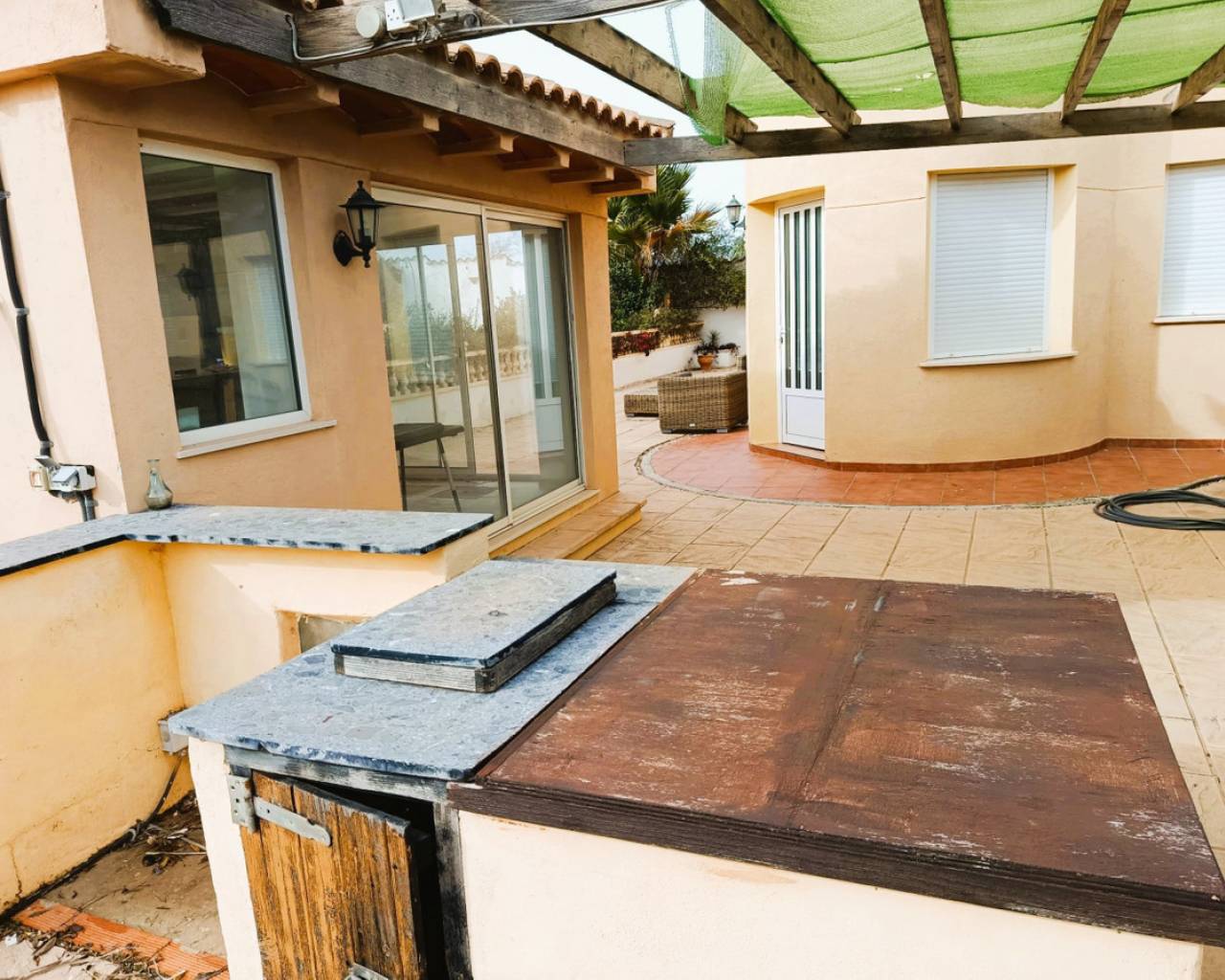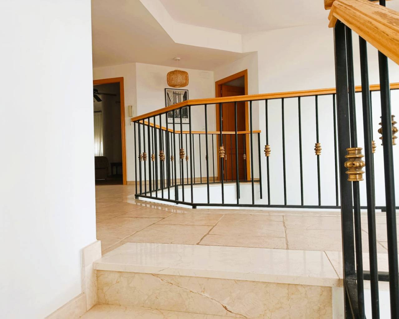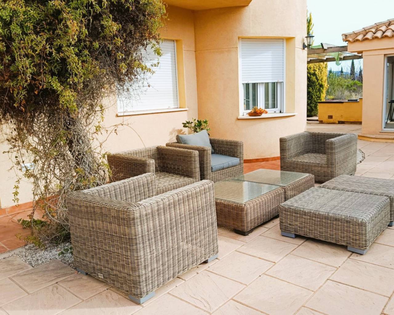 Set within more than 13,000 m² of enclosed land, this remarkable villa enjoys an elevated position with wide-ranging views across the surrounding countryside and uninterrupted sightlines to Sax Castle. While immersed in a rural setting, the property is officially located within the Elda municipality. Entry to the estate is through electric gates, opening onto a private driveway and double garage. The grounds have been designed for outdoor enjoyment, offering multiple areas to relax and entertain, including a covered dining space, a fully equipped summer kitchen and bar, and a dedicated BBQ area with an Indian tandoor. The land also incorporates a herb garden and established fruit trees such as fig and apple. The villa stands out architecturally, with its distinctive twin towers connected by an upper-level balcony. From this elevated position, the rear bedrooms overlook the sun-filled pool area and surrounding terraces, creating a strong connection between the house and its outdoor spaces. The main entrance, facing south, leads into a spacious reception area currently used as a dining room. Large windows allow light to flow through the interior throughout the day, while framing views of the landscape beyond. On this level, the property also offers a well-proportioned kitchen, a comfortable living room centred around a double-sided fireplace, a double bedroom and a bathroom. The first floor is arranged around a central gallery, giving access to four bedrooms and two bathrooms, with balconies on both sides of the house. Two of the bedrooms are located within the towers; one features an en-suite bathroom, while the other shares a Jack-and-Jill bathroom. At the top of the house, a further staircase leads to a practical service area and a roof terrace, from where the views towards Sax Castle are particularly impressive, especially after dark. The property is connected to mains services and benefits from solar panels installed in recent years, significantly reducing electricity costs. Underfloor heating and air conditioning ensure year-round comfort. Carefully planned and solidly built, the villa features 29 windows, providing light, views and a sense of space in every room. This is a substantial and well-equipped home, ideal for those seeking privacy, character and energy efficiency, combined with exceptional surroundings.