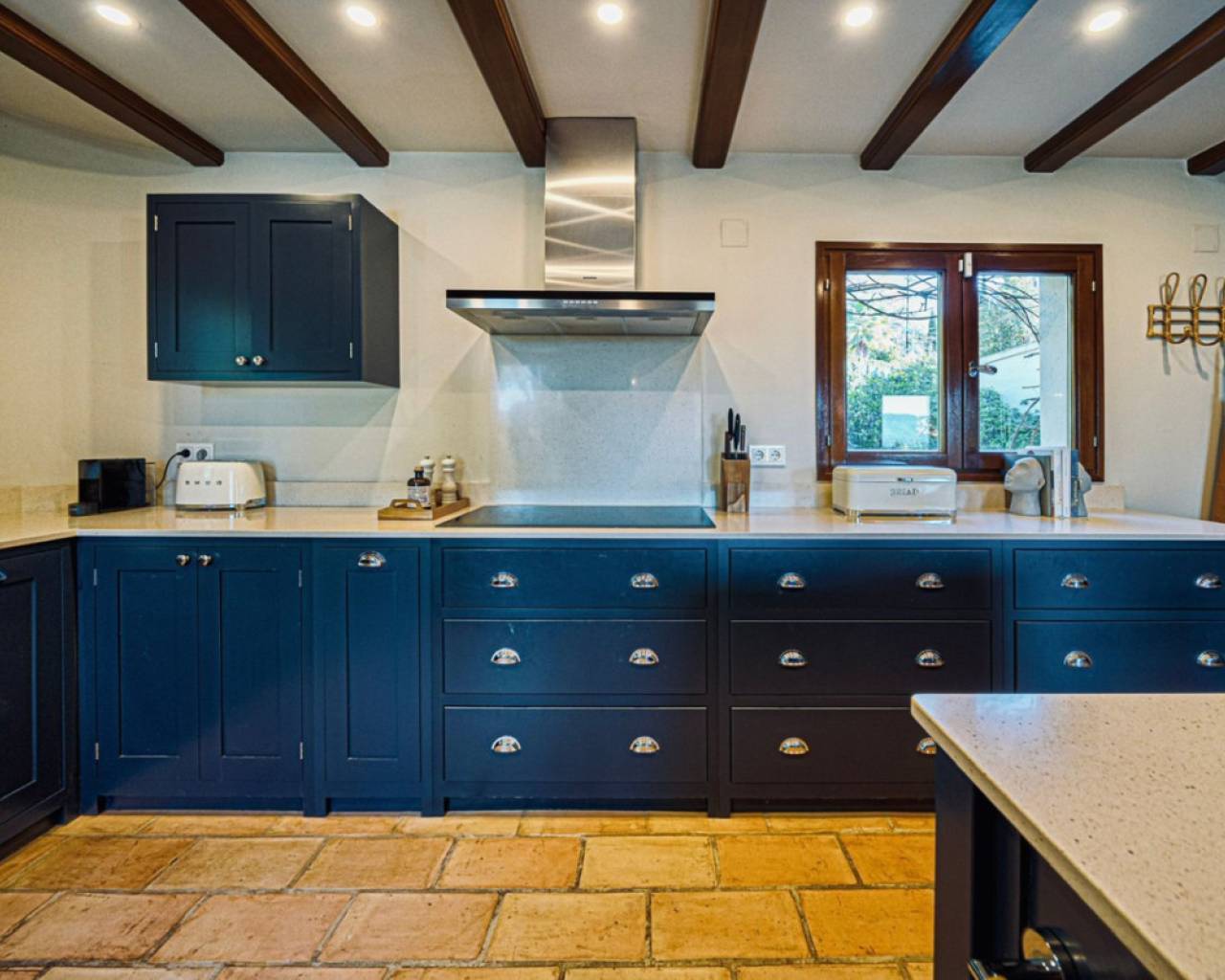 We are proud to present this wonderful villa at the foot of Montgó, with lovely views of the valley, just a short drive from all amenities. This beautiful villa comprises five spacious bedrooms, four full bathrooms, and a guest toilet. On the main floor, we have a large living-dining room with a wood-burning fireplace and a beautiful fully equipped open kitchen, a complete bedroom with an en-suite bathroom, a guest toilet, and another bedroom with an en-suite bathroom and independent entrance. On the upper floor, we find the master bedroom with access to a private terrace, another bedroom, a dressing room, and a large full bathroom. On the lower floor, at pool level, we have an independent entrance to a bedroom with an en-suite bathroom, perfect for our guests. Outside, there is a beautiful garden with automatic irrigation, a good-sized pool, and several terraces, both shaded and unshaded, perfect for enjoying the outdoors, admiring the views, or sunbathing. Additionally, there is an outdoor kitchen in the naya, inviting us to enjoy dinners with friends and family. The entire villa is equipped with double-glazed windows, central heating with diesel, underfloor heating in the bathrooms, hot and cold air conditioning, a storage room, a laundry room, and a 1000-liter water deposit. All of this makes this villa an ideal place to enjoy both summer and winter.