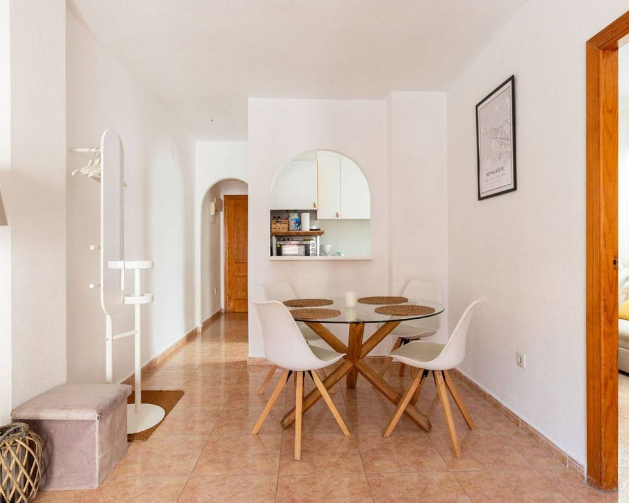 In the heart of Torrevieja, at Calle San Lorenzo 2, you will find this beautiful renovated apartment on the third floor of the building. The home offers two bedrooms, a bathroom, a neat kitchen, and a bright living room with access to a north-facing balcony. Air conditioning in the living room ensures year-round comfort. The residence features an elevator and a pleasant communal pool area. The location is excellent – just 100 metres from the El Corte Inglés outlet and around one kilometre from the beach. Built in 2000, the apartment has a constructed area of 58 m². Community fees are approximately 350 euros per year, property tax approximately 184 euros per year.