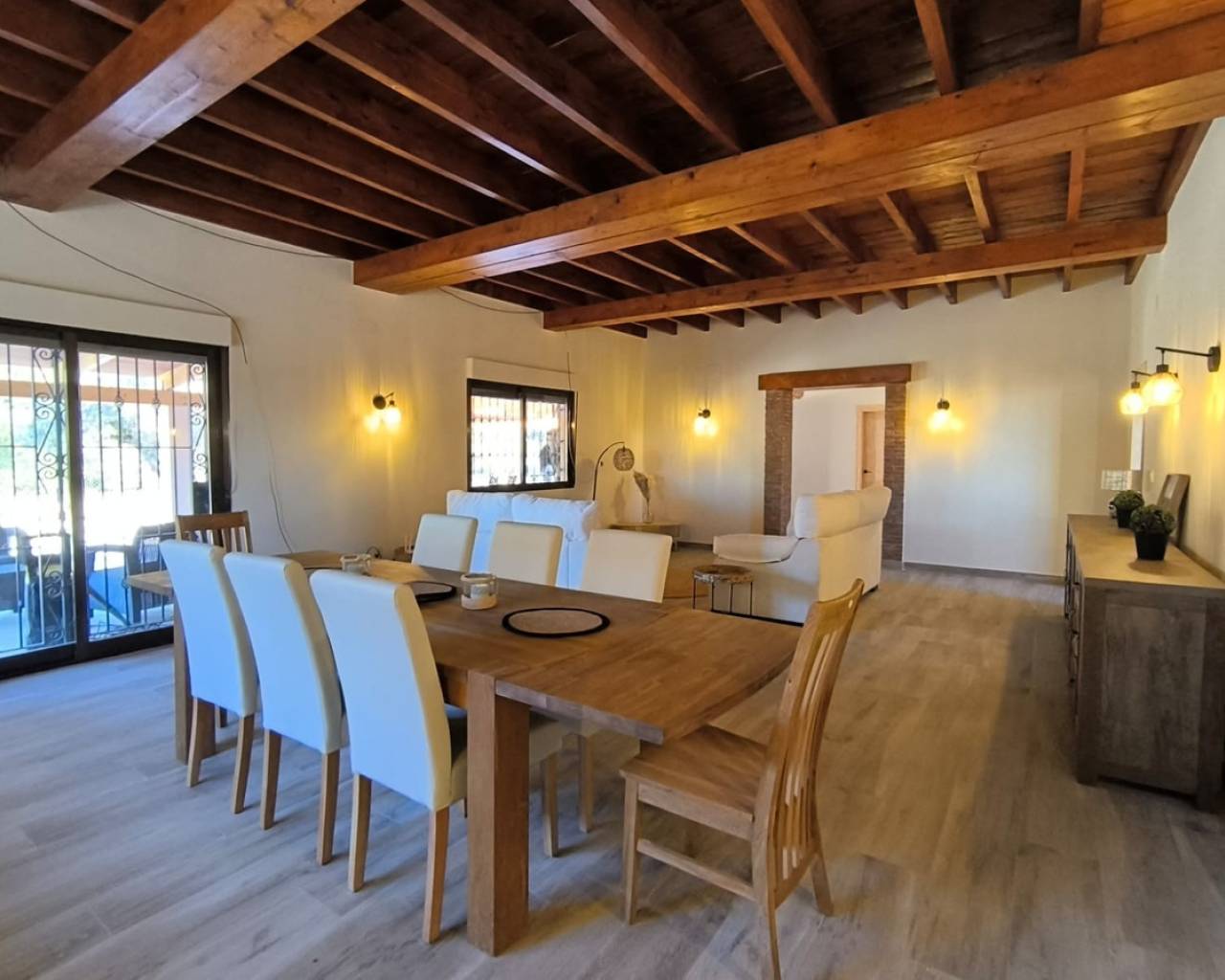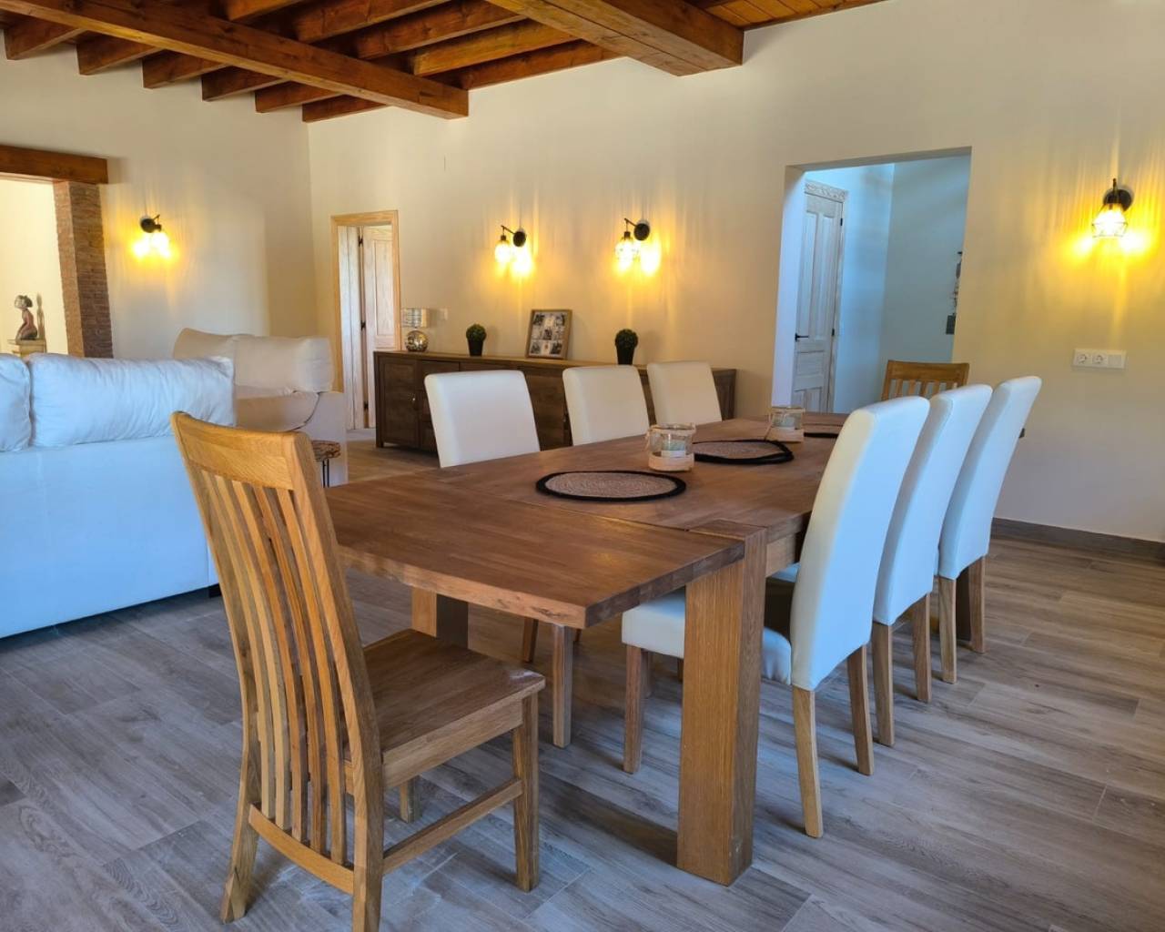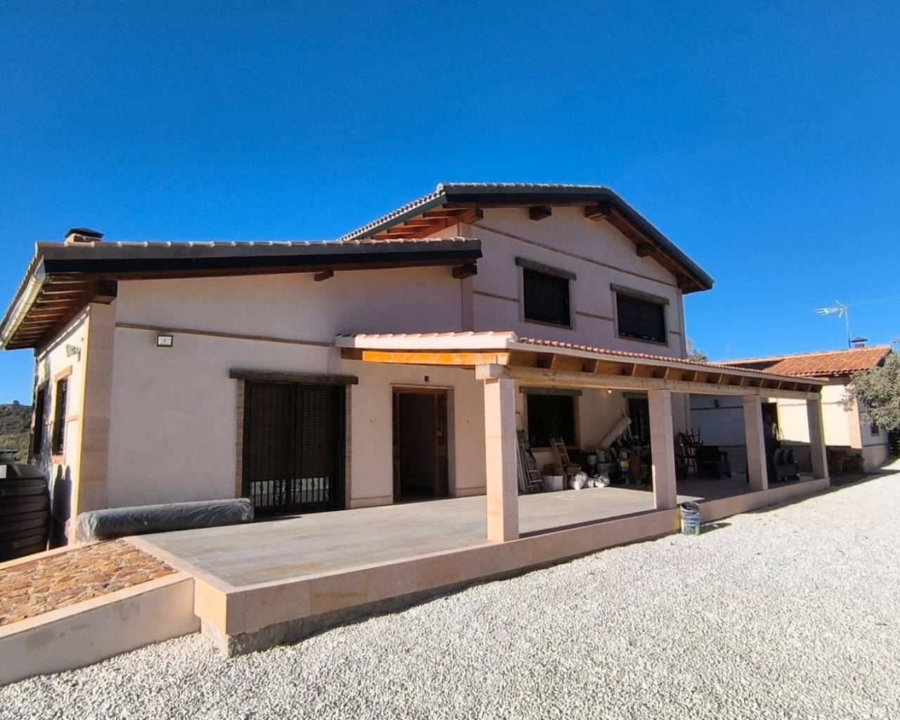 READY TO MOVE INTO NOW – A Warm, Character-Filled Villa with Guest Annexe, Pool & Spectacular Mountain Views | La Zarza, MurciaIf you are searching for something truly special - not another cold, white modern box, but a home with warmth, soul, and exquisite attention to detail—this beautifully renovated villa in La Zarza is an exceptional opportunity. Fully modernised throughout and ready for immediate occupation, this property blends stylish contemporary finishes with natural wood accents and a welcoming Mediterranean ambience.Just a 15-minute drive from Pinoso, the villa enjoys a peaceful countryside setting with breathtaking views across the pine-covered regional park. Set on a 5,000 m² plot (with 3,000 m² securely fenced) and offering 227 m² of high-quality living space, this ready-to-move-in home is ideal for full-time living, a family retreat, or an investment in the booming inland property market.Main House – 3 Bedrooms, All EnsuiteThe main home offers a thoughtful layout and exceptional comfort:Ground-floor master suite with walk-in wardrobe, luxurious ensuite bathroom and direct patio access—wake up to mountain views each morning.A generous entrance hallway creates an impressive first impression, separating the sleeping area from the main living space.A stunning open-plan lounge, dining area and modern kitchen, all flowing out to the large south-facing covered terrace—your year-round outdoor living and entertaining space.Beautiful views over the alpine-style mountain backdrop.A spacious utility room / larder, perfect for extra storage.A second hallway leads to a useful storage cupboard and the home's architectural centrepiece:Floating Staircase With LED LightingThis striking staircase leads to the first floor, where you'll find:Two large double bedrooms, both featuring modern ensuite shower rooms.The balustrade can still be customised to match your preferred style.Guest Annexe – Perfect for Visitors or Rental IncomeAdjacent to the main home is a fully self-contained studio annexe, complete with:Private entranceKitchenBathroomIdeal for guests, older family members, or holiday lettings.Outdoor Living & Stunning ViewsThe exterior of the property offers everything needed to enjoy Spanish outdoor living:Inviting swimming pool with panoramic mountain viewsLarge terrace areas for sunbathing and diningBeautiful natural surroundings with a backdrop of pine forests and protected parklandThe villa benefits from mains electricity and a large water deposit, making it highly suitable for year-round living.Fully Renovated – Ready for Immediate LivingThe property has undergone a complete renovation, including:New bathrooms with modern finishesNew kitchen and appliancesNew flooring in the entire houseFully repainted to give fresh clean consistent finsihUpdated lighting throughoutNew septic tank installedFresh finishes and updated fittingsThis is a rare opportunity to acquire a unique, character-rich home that is finished to a high standard and available right now.If you are seeking a property that feels warm, welcoming and genuinely different—this villa is the perfect match.We are specialists in the Costa Blanca and Costa Calida specialising in the Alicante and Murcia Inland regions with a particular emphasis on Elda, Pinoso, Aspe, Elche and surrounding areas. We are an established, well known and trusted company that has built a solid reputation amongst buyers and sellers since we began trading in 2004. We offer a complete service with no hidden charges or surprises, starting with sourcing the property, right through to completion, and an unrivalled after sales service which includes property management, building services, and general help and advice to make your new house a home. With a portfolio of well over 1400 properties for sale, we are confident that we can help, so just let us know your preferred property, budget and location, and we will do the rest.