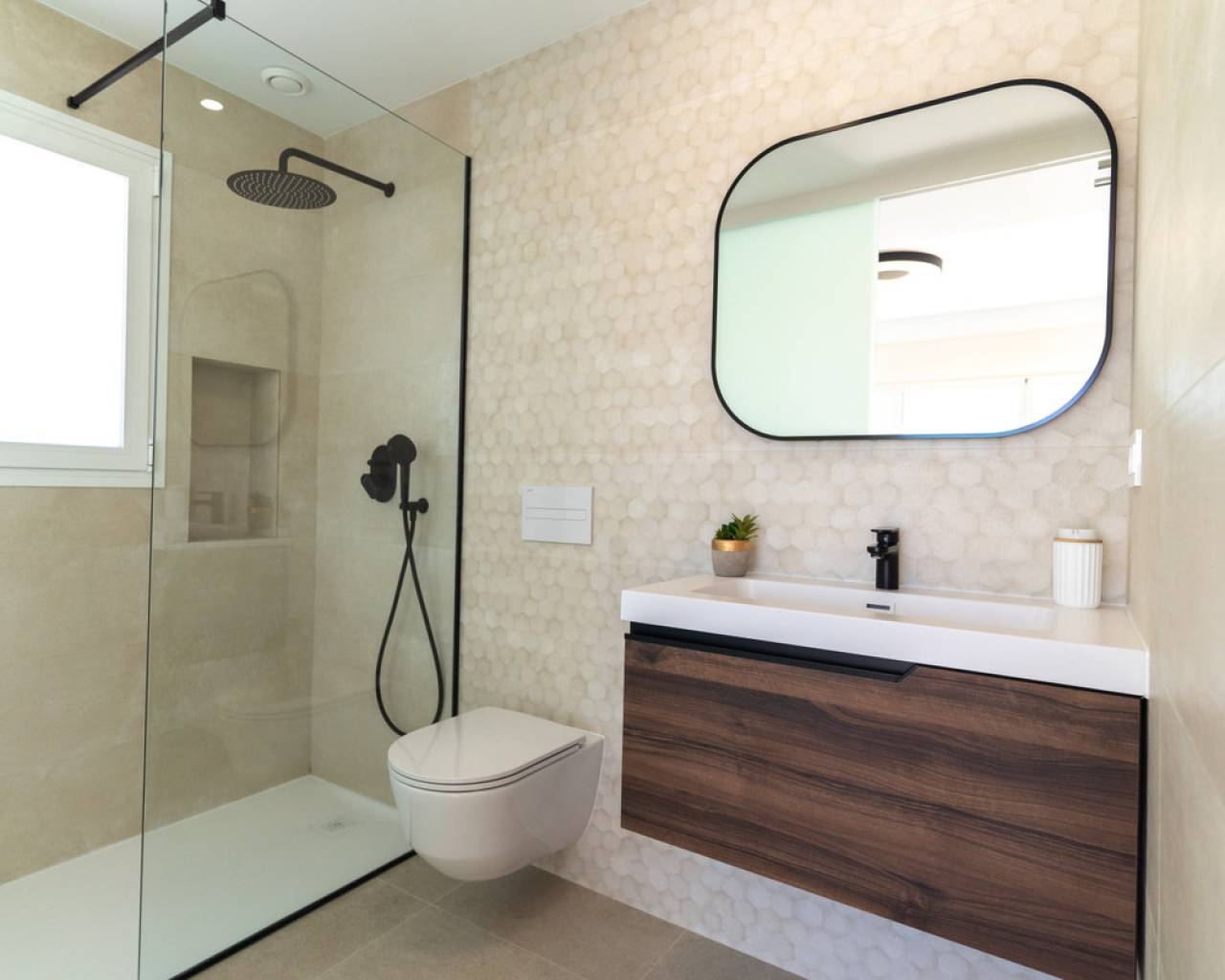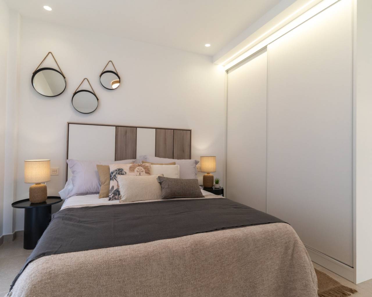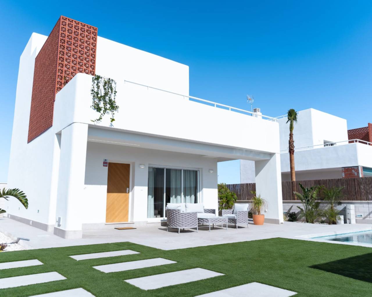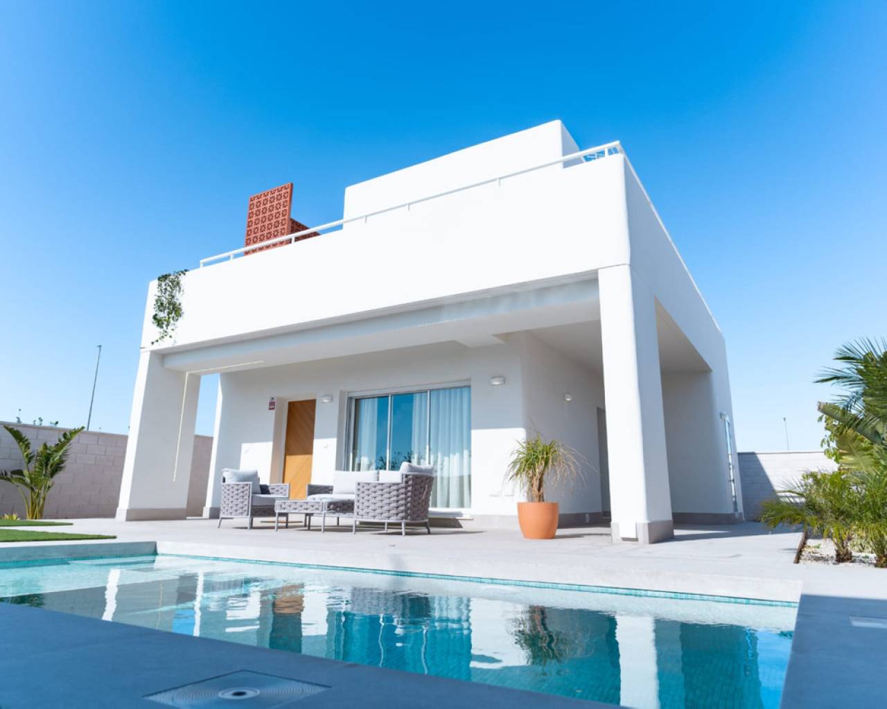 In these villas you will find the best Mediterranean style adapted to modern design, combining elegance and comfort. Our detached villas have 3 bedrooms and 3 bathrooms, all en suite, ensuring privacy and comfort in every corner. They also have private swimming pools and solarium, offering an exclusive space for you. We take care of every detail in each property, guaranteeing a functional and cosy atmosphere. Our aim is to offer you a unique experience, so that you find in us the house you are looking for, with all the comforts and services you deserve. The interior of the villas consist of 3 bedrooms, 3 en-suite bathrooms, large open plan living room with kitchen, all located on two floors. The exteriors have a large landscaped plot, solarium and private swimming pool in all homes. LOCATION Pilar de la Horadada is a coastal town in Alicante, known for its beautiful beaches such as Playa de las Higuericas. It combines tradition with a relaxed atmosphere and has the church of Nuestra Señora del Pilar as one of its main attractions. Ideal for those looking to enjoy the sun and tranquillity of the Mediterranean.