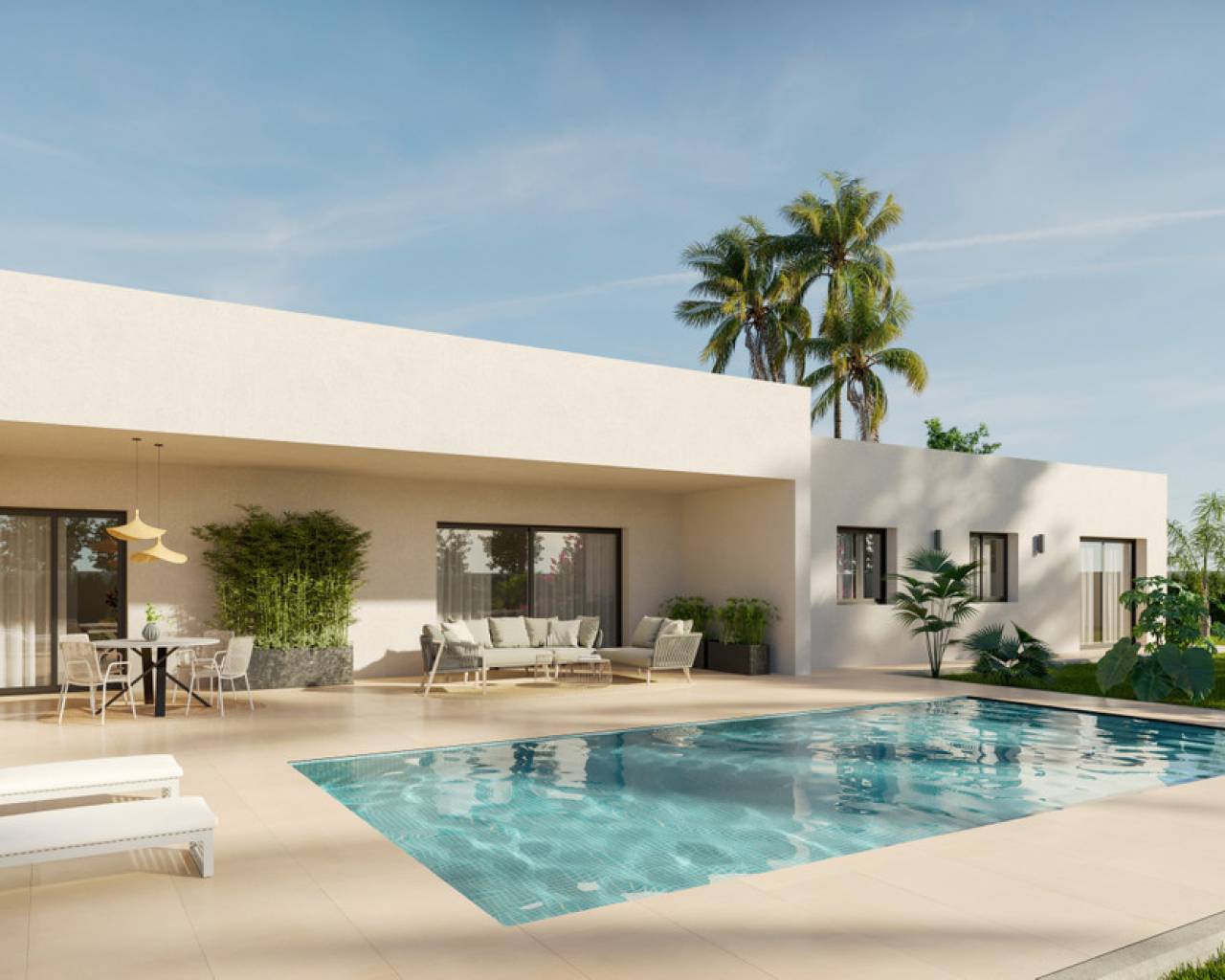 YOUR DREAM HOME Discover the perfect villa where design, quality, and comfort come together to offer you an unparalleled lifestyle. It will have all the necessary utilities, including water and electricity supply, installation of a photovoltaic panel system for self-consumption of electric energy, and a wastewater treatment system using a biological oxidation purifier. It will feature high-quality finishes and an extensive luxury specification list. Equipped with a 8x4 swimming pool with an outdoor shower, porcelain perimeter around the pool, pre-installation for heating, barbecue area with toilet facilities, enclosed garage with an automatic door and included motor, pre-installation for an electric charging point, landscaped area with artificial turf, motorized automatic access gate to the plot (including motor), and a natural stone-clad wall. ***Notes: • Upon full completion of the project, the final construction report and water and electricity certifications will be delivered. • The construction completion timeline, once the building permit is obtained, depends on the size of the property and its annexes: 8–10 months for single-story Insulated Slab homes 12–14 months for single-story homes With Structure 12–14 months for two-story Insulated Slab homes 15–18 months for two-story homes With Structure • The construction will be carried out as a SELF-DEVELOPMENT project.