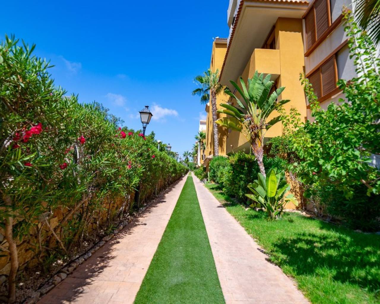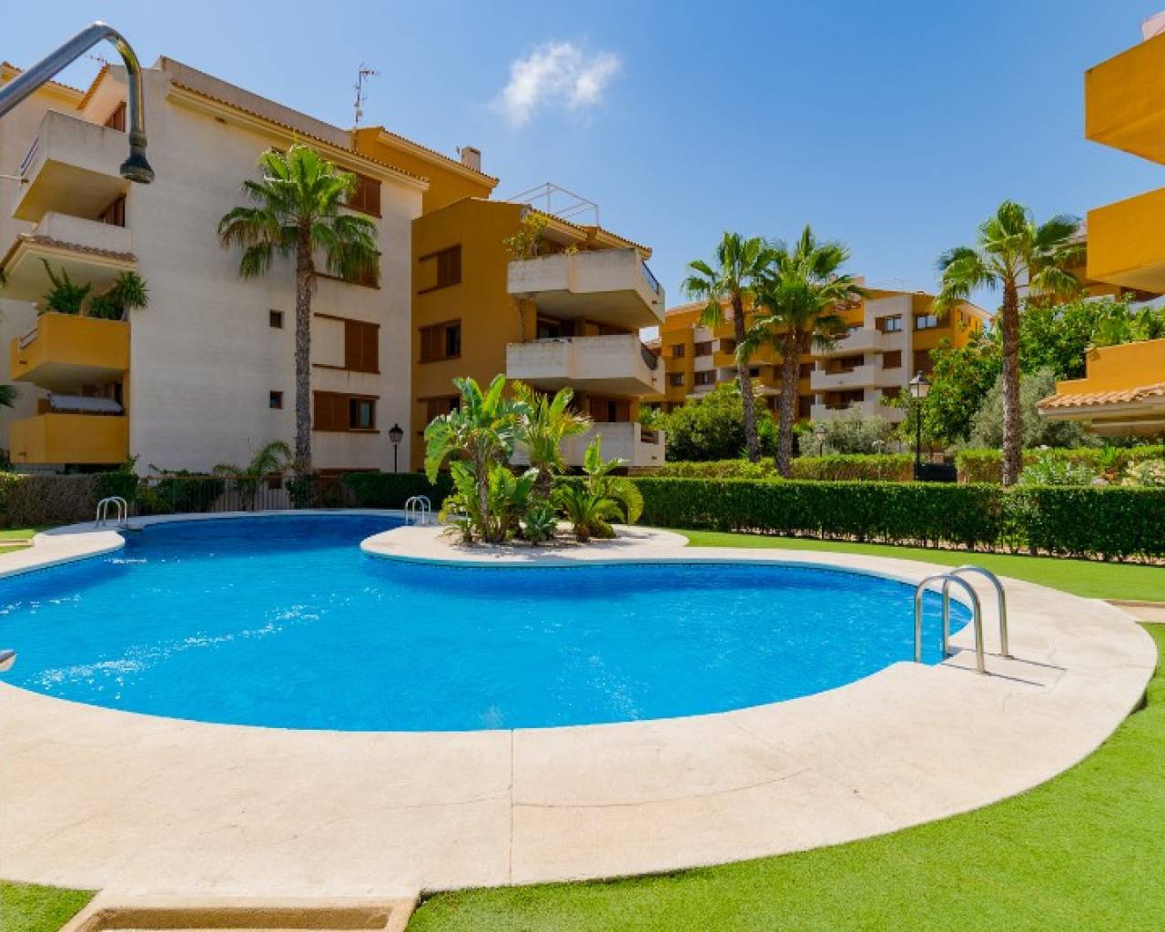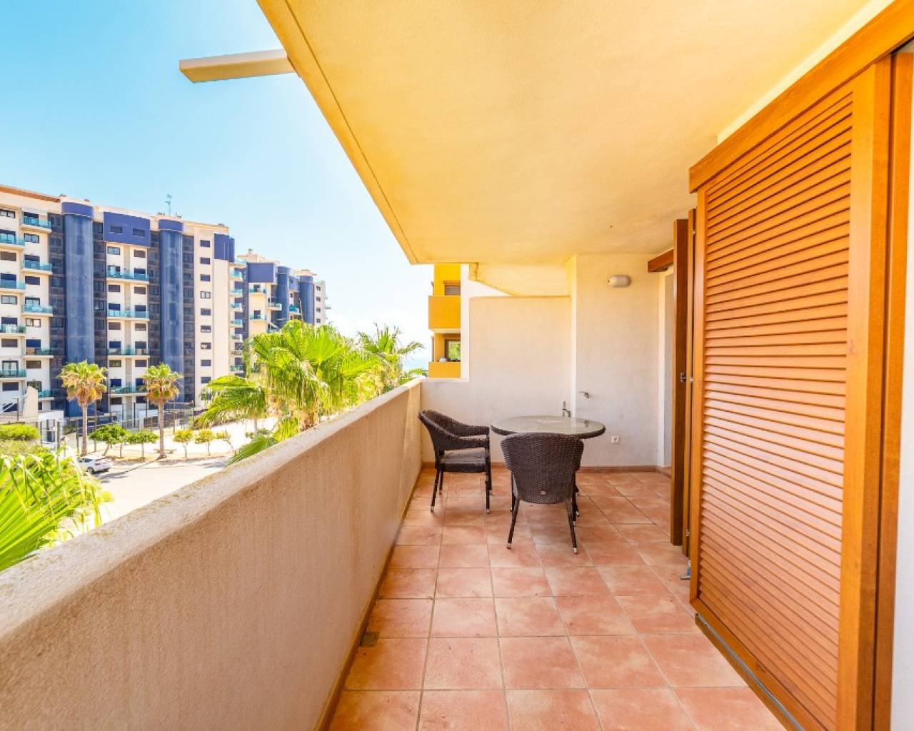 Seaside apartment for sale in Parque Recoleta in Punta Prima,Costa Blanca. For sale apartment with sea views in the gated community "Parque Recoleta" in Punta Prime. Comfortable property consists of 2 bedrooms and 1 bathroom, cozy open kitchen and a lounge-dining room with access to a terrace with nice views. From the terrace you can enjoy the view to a communal areas and the sea. The apartment have central air conditioning for cold and heat and heated floor in the bathroom. Apartment is sold with space in the underground garage. Closed area with pool and 24 hour security. The urbanization Parque Recoleta is located in the south of Costa Blanca just a few steps from the sea and surrounded by infrastructure. Punta Prima is a typical Spanish seaside tourist resort, located on the southern Costa Blanca and less than 30 minutes from two international airports, Murcia and Alicante(Spain). The beaches, which are some of the cleanest around and have been awarded Blue Flag status, are complemented by a wonderful promenade with shops, boutiques, bars and restaurants. Orihuela Costa has a Mediterranean climate with 320 days of sunshine a year.