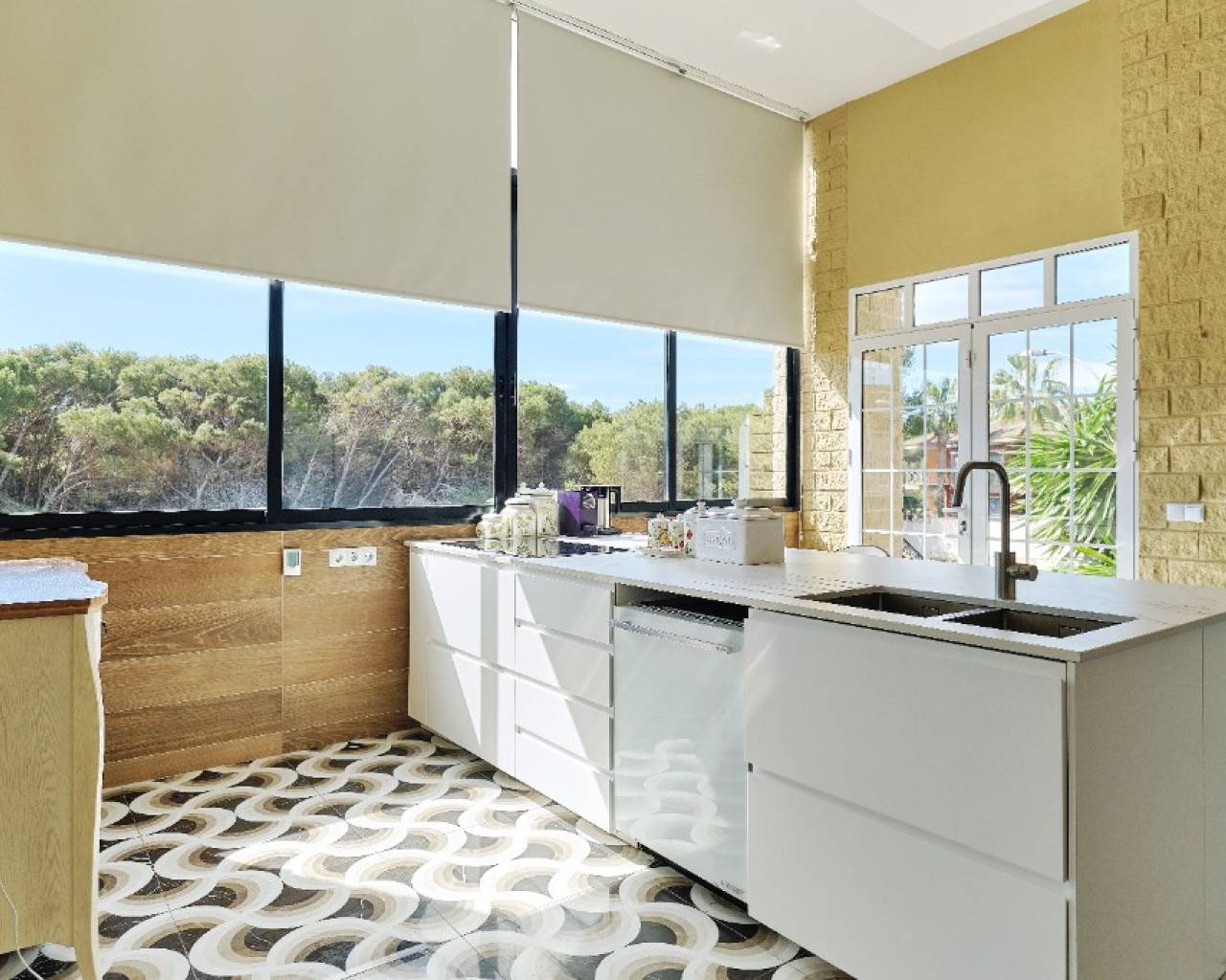 We offer for sale a luxury villa near the sea in one of the best areas of the Costa Blanca - Campoamor. Exquisite villa on a plot of 1000 sq.m. surrounded by a well-maintained garden with Mediterranean plants, there is also a large swimming pool, a small lounge area for relaxing with family or friends and many other cozy corners to enjoy the mild Spanish climate. There is a garage also. Spacious house with a total area of 200 sq.m. Thanks to its good location, panoramic windows and the use of soft, noble tones in the decoration of most rooms, the villa is filled with sunlight all year round. Villa consists of a large, fully equipped closed kitchen with access to the garden and to a spacious living-dining room, an office, 4 bedrooms and 2 bathrooms. Individual gas heating, underfloor heating in bathrooms and kitchen. There is a large dressing room. The design of each room is decorated in an aristocratic style, so this is an ideal option for those who appreciate comfort, privacy and luxury. The villa is located in an elite gated urbanization, which is surrounded by pine plantations. Also on the territory of the complex there is a communal pool, common recreation areas, a tennis court, and for lovers of natural products there is a great opportunity to order delicious milk and freshly baked bread from local farmers. The Campoamor is one of the best areas on the Costa Blanca. Gorgeous sandy beaches within walking distance, the presence of many bars, restaurants, shops, pharmacies nearby, the Royal Yacht Club, a horseback riding school and best golf courses - an excellent place for both living all year round and for holidays.