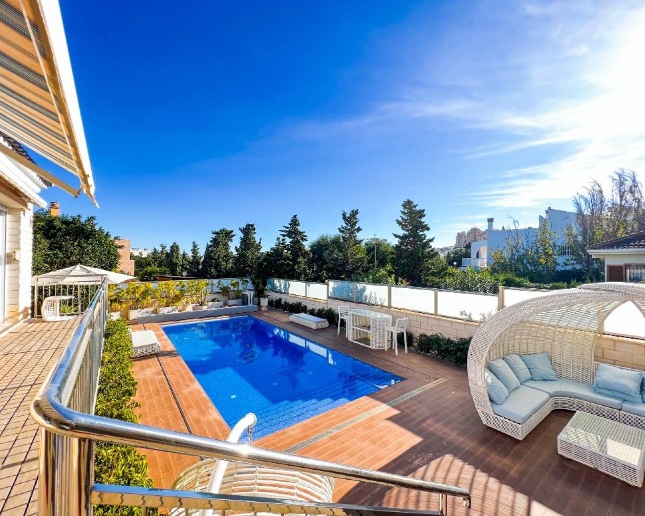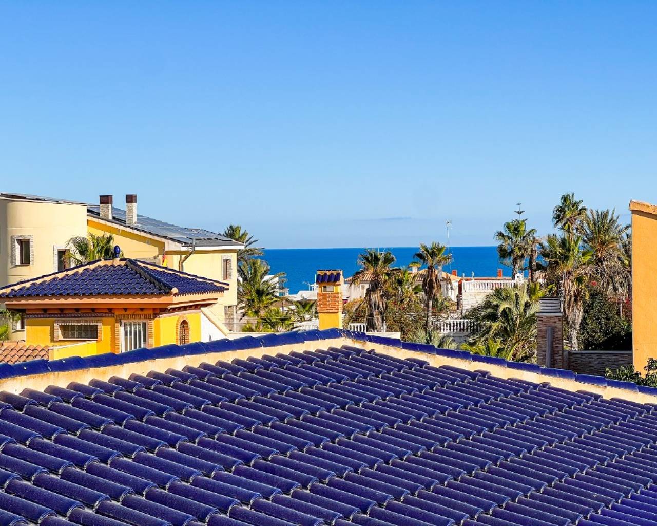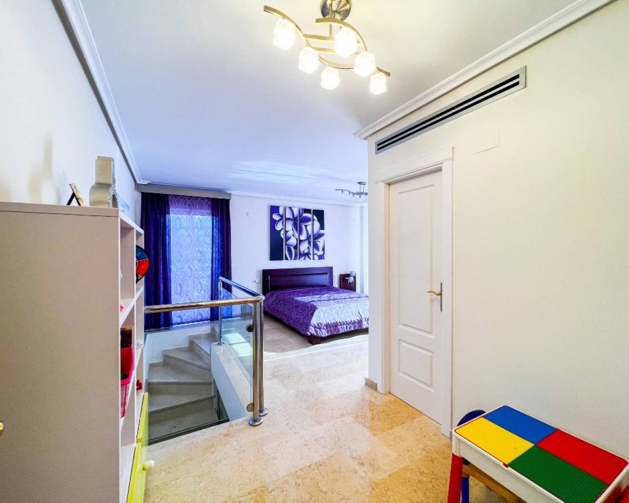 Luxury villa for sale near the sea in La Mata, Costa Blanca, Spain. A spacious modern house with an area of 380m2 has a plot of 625 m2, on which there is a heated swimming pool with a relaxation area, parking and a barbecue area. The villa itself is built on several levels and has 5 bedrooms and 4 bathrooms, each of which is designed in its own unique style and equipped with everything necessary for comfort. In addition, future owners will have a pleasant surprise in the form of their own cinema room and the presence of wet and dry saunas, which allows for diversified leisure time for each family member and friends. There is also a large dressing room. There is underfloor heating in the basement and both saunas can be turned on by timer. Also very important to notice, that on both levels where bedrooms are located, separate climate control. La Mata is a magnificent area located in the south of Orihuela Costa. Mesmerizing seascapes and a mild Mediterranean climate make La Mata a favourite place to live and relax among Europeans. The existing atmosphere of lightness made this place one of the best on the coast.. In the immediate vicinity of the villa you will find magnificent sandy beaches, restaurants and bars, as well as absolutely everything you need for the highest level of living and a great holiday. The nearest international airport is Alicante, 30 minutes' drive away.