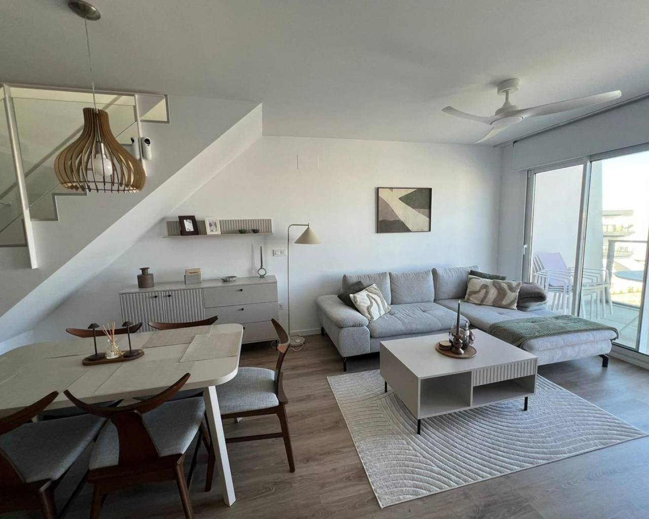 Apartment with a rooftop terrace and panoramic sea views in Gran Alacant – a unique offer! Location: Gran Alacant, Alicante – a prestigious and quiet area with easy access to the beach, services, and transport. Only a 15-minute drive from Alicante Airport! Property Description: This spacious duplex apartment with a total area of 148 m² (usable area: 68 m²) is located on the second floor and offers sea views, providing a sense of luxury and a Mediterranean lifestyle. The interior has been designed with comfort and functionality in mind. It offers a living room with a dining area, two bedrooms, and two bathrooms, as well as a private terrace (approx. 8 m²) perfect for relaxing. A highlight is the large solarium – a 58 m² terrace. The apartment is equipped with ducted air conditioning and is finished with high-quality appliances and furniture. The property is located in a newly built complex (2025), in a quiet and safe environment, yet close to the sea, beaches, and recreational areas. Additional features: Parking space included in the price, Terrace with a view and balcony, Storage unit, Swimming pool and green areas surrounding the complex, Ideal room layout – maximum use of space. This property is ideal both as a family home for year-round living and as an investment for holiday or long-term rentals – thanks to its seaside location and high standard of finishing. We invite you to contact us and arrange a viewing – this is a unique opportunity in Gran Alacant!