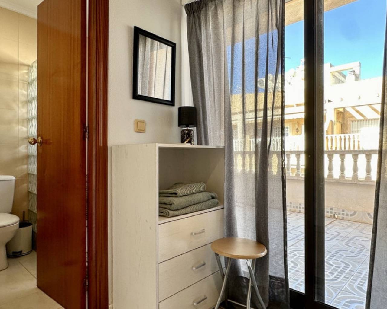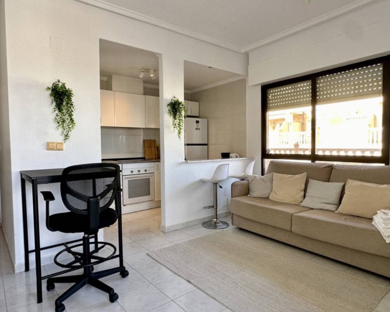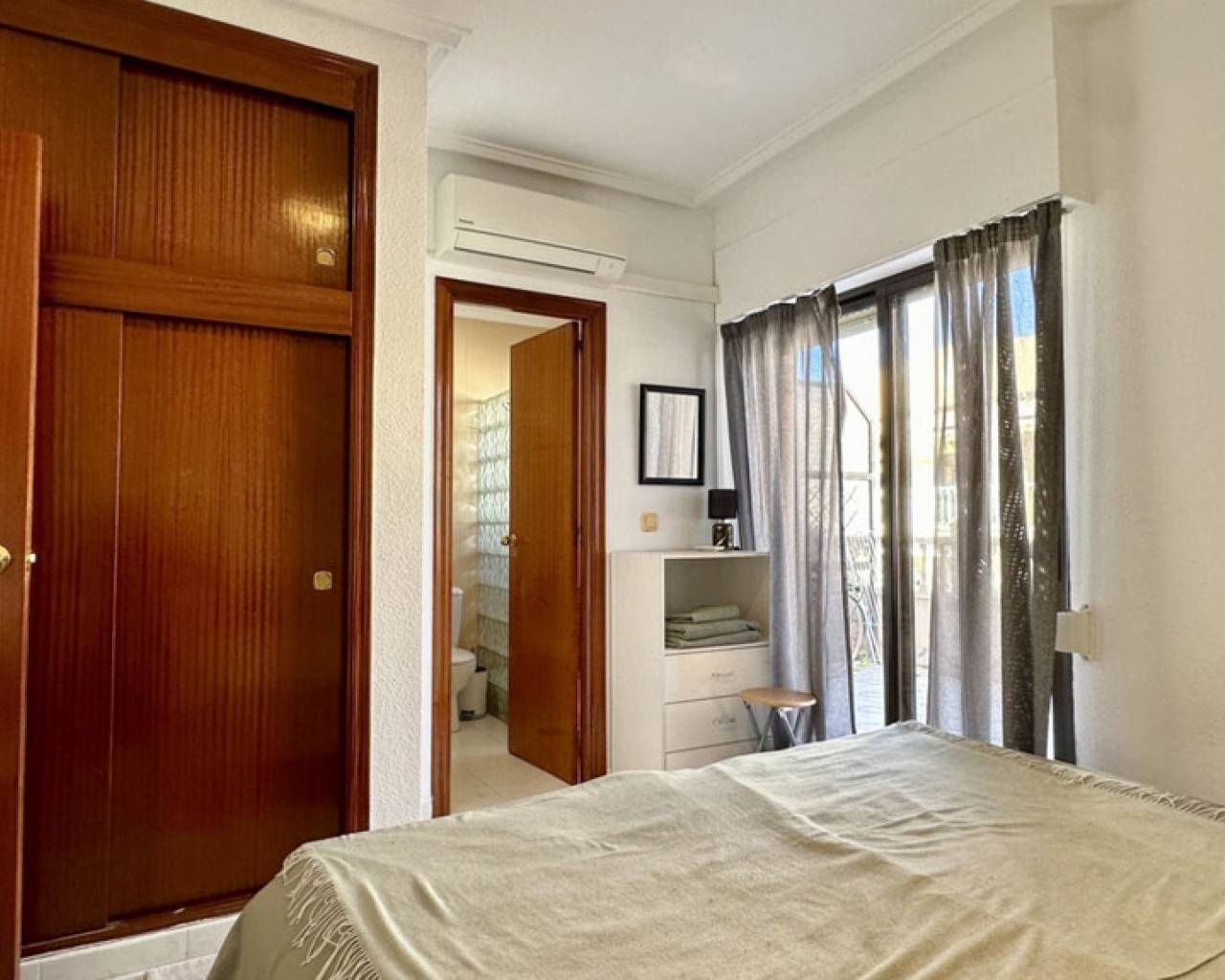 This well-maintained apartment is located in Torrevieja and offers a comfortable layout combined with an exceptionally spacious terrace — ideal for enjoying the Mediterranean lifestyle. The property features 1 bedroom, 1 bathroom, and a total built area of 57 m². The living area is bright and functional, with an open connection to the dining space and kitchen, creating a pleasant and practical living environment. The bedroom is generously sized and has direct access to the terrace, providing excellent natural light and an airy feel. The bathroom is well laid out and fully equipped. One of the highlights of this apartment is the large terrace, perfect for outdoor dining, sunbathing, or relaxing all year round. Located close to all amenities such as shops, restaurants, and public transport, this property is ideal as a holiday home, permanent residence, or rental investment. Key features: 1 bedroom1 bathroom57 m² builtLarge private terraceBright living areasGood location in Torrevieja