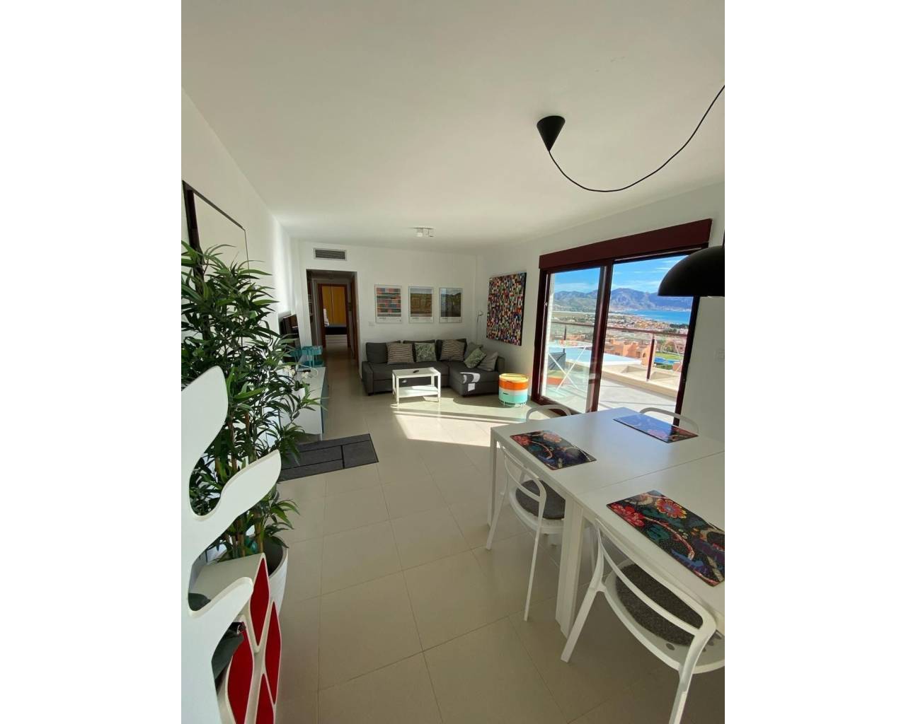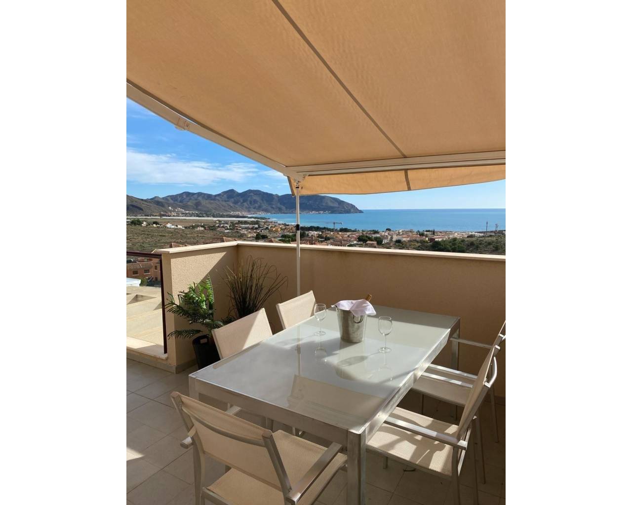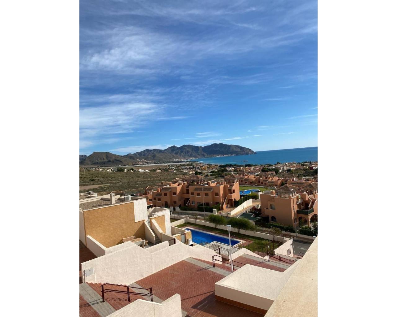 Perched at the very top of the sought-after Mojon Hills resort in Isla Plana, this exceptional two-bedroom apartment enjoys a truly commanding position with uninterrupted panoramic views across Isla Plana and the Costa Cálida coastline. Elevated, open, and bathed in natural light, the outlook alone sets this property apart. Built in 2010, the apartment offers a spacious and well-designed layout comprising two generous bedrooms and a modern family bathroom. It is sold fully furnished and equipped, with quality appliances throughout, allowing for immediate use either as a private residence or an income-generating investment. Hot and cold air conditioning ensures year-round comfort, while high-speed internet makes the property equally suitable for longer stays or remote working. Residents benefit from access to a well-maintained communal swimming pool and landscaped communal areas, all supported by very low community fees of just €50 per month. The property also includes an allocated parking space within the community, with additional ample parking available outside for guests. The elevated position not only guarantees privacy and views, but also makes this apartment highly attractive for holiday rentals. The property has a proven rental history, achieving nightly rates from approximately €100 in low season up to €250 during peak summer months, offering excellent potential returns. Whether you are seeking a lock-up-and-leave holiday home, a permanent residence with views, or a ready-made rental business, this apartment truly ticks every box. Opportunities in this prime position are limited. Contact us today to arrange a viewing and experience the views, space, and potential of this outstanding Mojon Hills apartment for yourself.