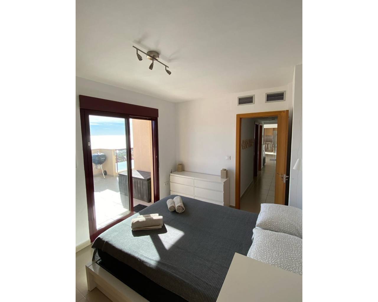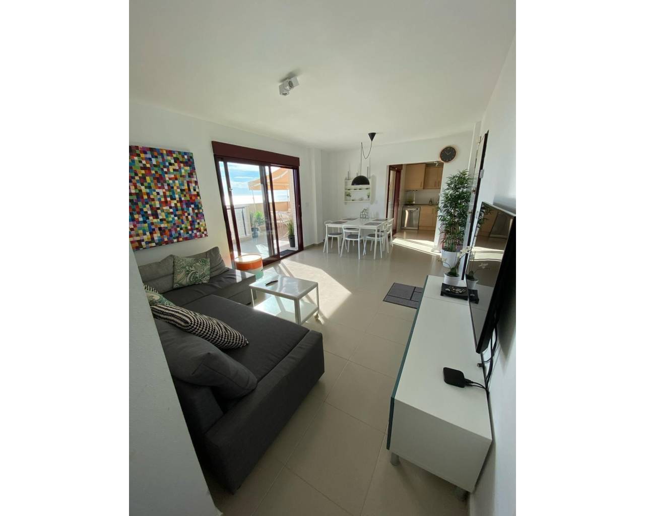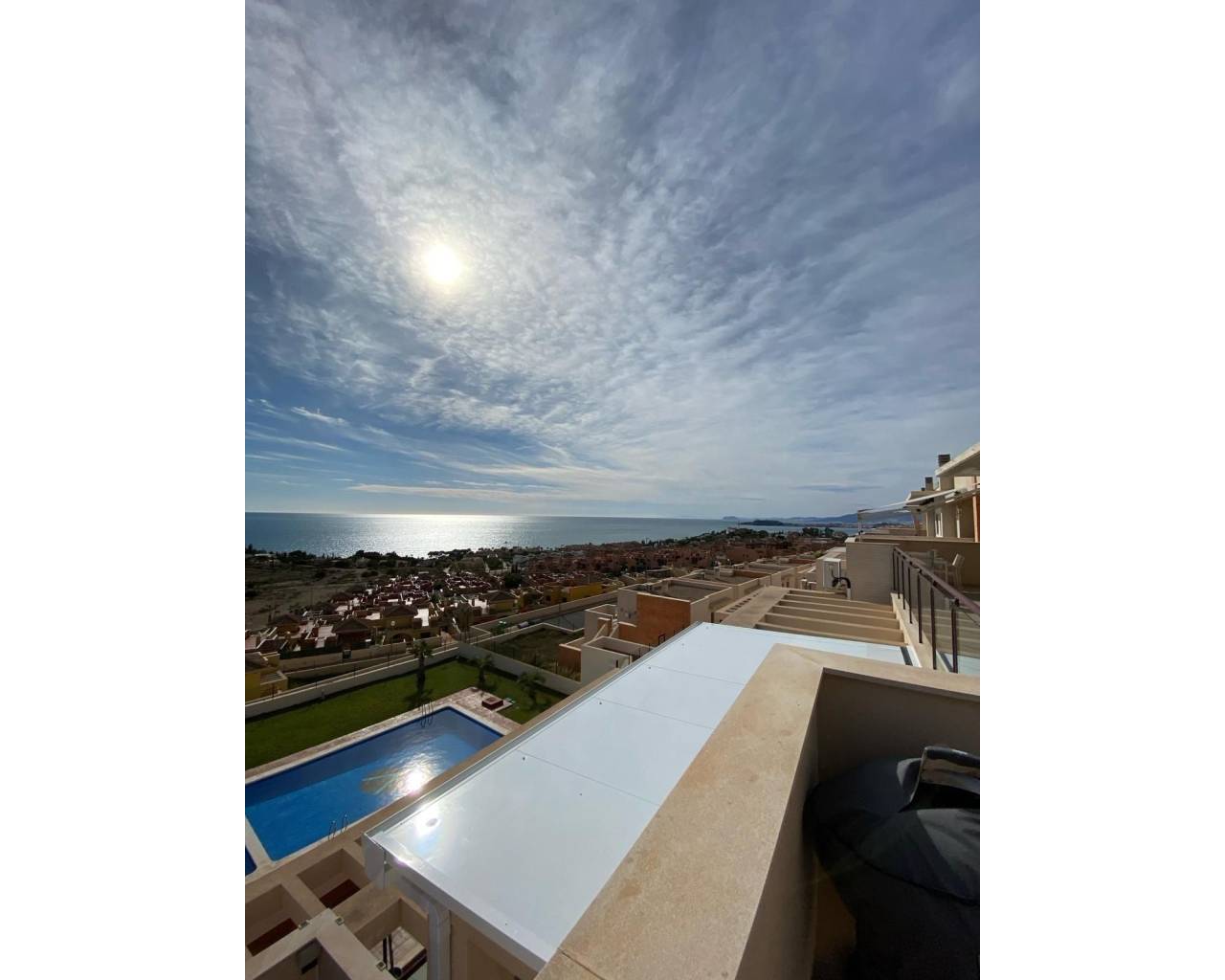 Perched at the very top of the sought-after Mojon Hills resort in Isla Plana, this exceptional two-bedroom apartment enjoys a truly commanding position with uninterrupted panoramic views across Isla Plana and the Costa Cálida coastline. Elevated, open, and bathed in natural light, the outlook alone sets this property apart. Built in 2010, the apartment offers a spacious and well-designed layout comprising two generous bedrooms and a modern family bathroom. It is sold fully furnished and equipped, with quality appliances throughout, allowing for immediate use either as a private residence or an income-generating investment. Hot and cold air conditioning ensures year-round comfort, while high-speed internet makes the property equally suitable for longer stays or remote working. Residents benefit from access to a well-maintained communal swimming pool and landscaped communal areas, all supported by very low community fees of just €50 per month. The property also includes an allocated parking space within the community, with additional ample parking available outside for guests. The elevated position not only guarantees privacy and views, but also makes this apartment highly attractive for holiday rentals. The property has a proven rental history, achieving nightly rates from approximately €100 in low season up to €250 during peak summer months, offering excellent potential returns. Whether you are seeking a lock-up-and-leave holiday home, a permanent residence with views, or a ready-made rental business, this apartment truly ticks every box. Opportunities in this prime position are limited. Contact us today to arrange a viewing and experience the views, space, and potential of this outstanding Mojon Hills apartment for yourself.