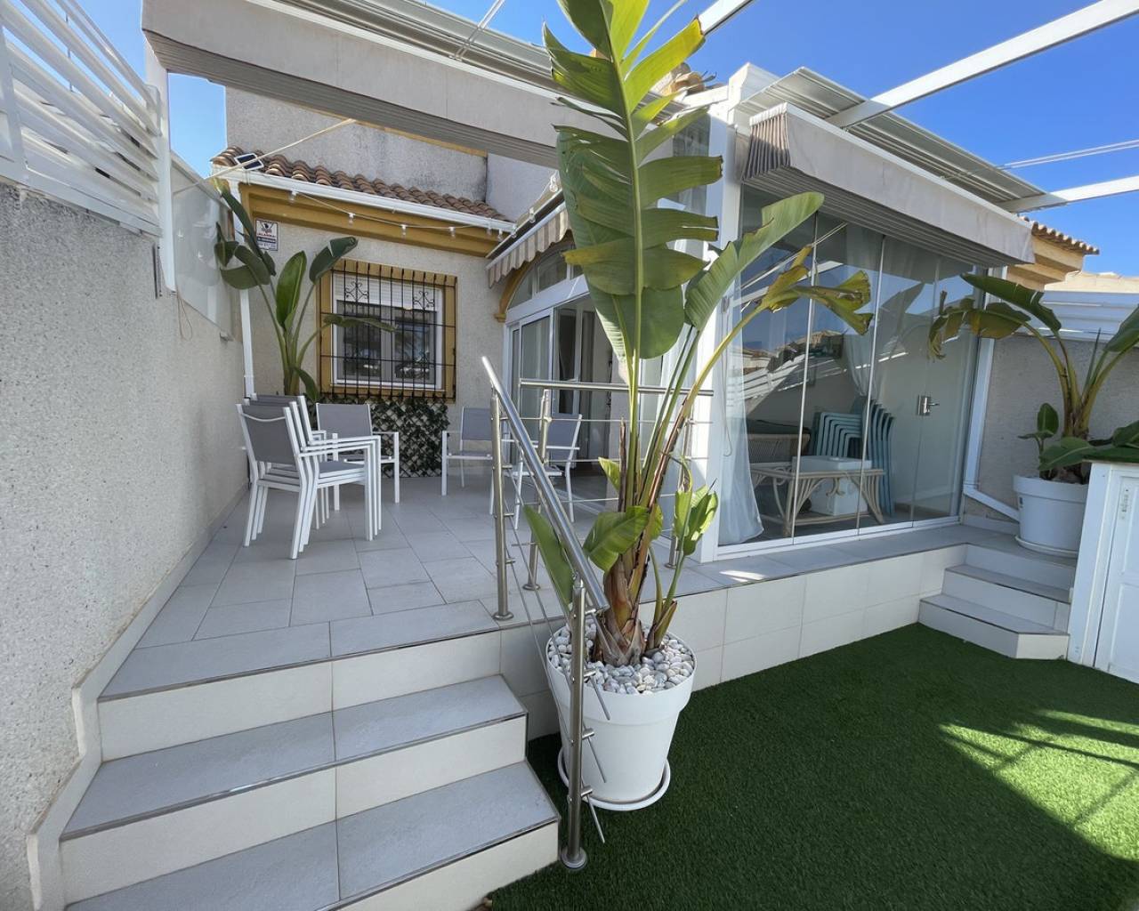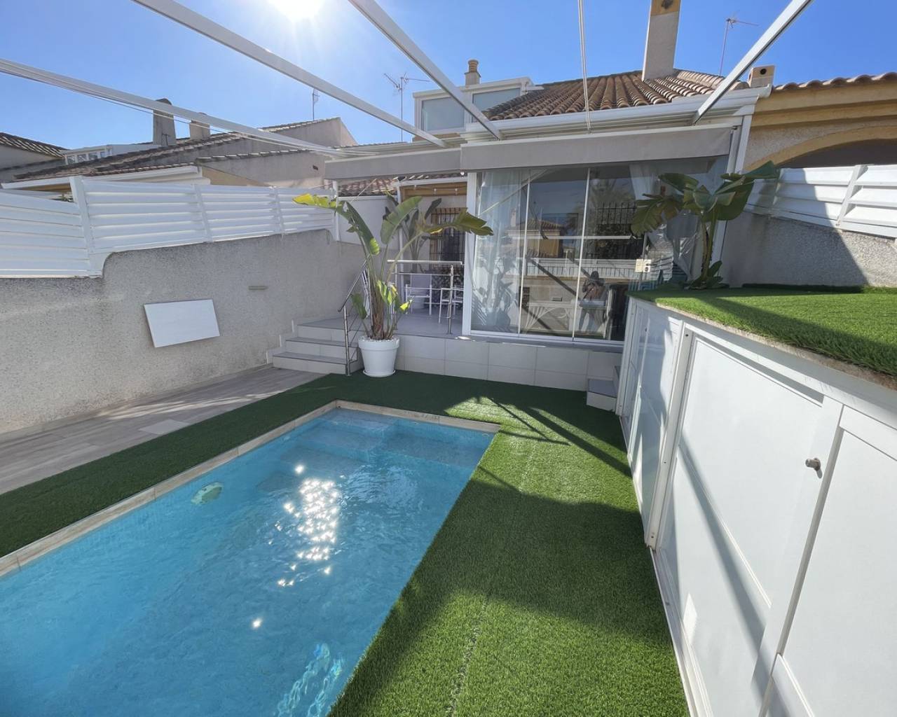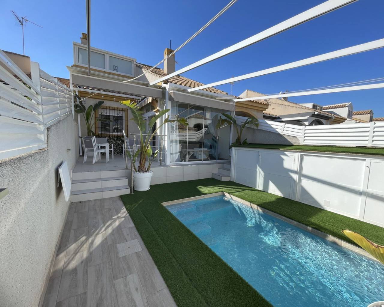 We would like to present to you this fabulous Renovated Semi Detached Villa located in the popular area of Torre de la Horadada. The property consists of 3 bedrooms, 2 bathrooms, living/dining area and a fully fitted kitchen. The property benefits from a private garden, terraced areas and a private swimming pool. Living here means enjoying a privileged environment with Blue Flag beaches, crystal-clear waters and quality services, a Marina with nautical activities and sailing school, Mediterranean gastronomy in restaurants, bars, and beachfront chiringuitos also Healthcare services and pharmacies nearby, ensuring peace of mind all year round. You will also find Sports and leisure centers, cycling routes, and cultural activities. Torre de la Horadada is a coastal resort located on the Southern Costa Blanca with some fine sandy beaches which are ideal for families with children who have come to spend their summer holidays. There are two airports close to Torre de la Horadada which are Alicante and Murcia. Torre de la Horadada is also one of the prettiest of the southern resorts with attractive coastline and seafront walks as well as a charismatic watchtower dating from the time when pirates sailed these seas, numerous sandy beaches, sunny weather and a delightful marina with plenty of mooring space. Torre de la Horadada lies to the north of the Mar Menor, neighbouring Pilar de la Horadada, and and is also close to Torrevieja, La Zenia, Mil Palmeras, Cabo Roig, Campoamor, Playa Flamenca and Punta Prima
