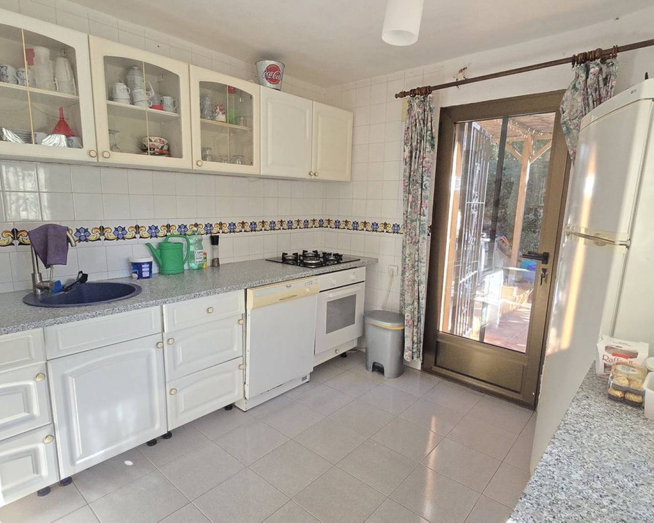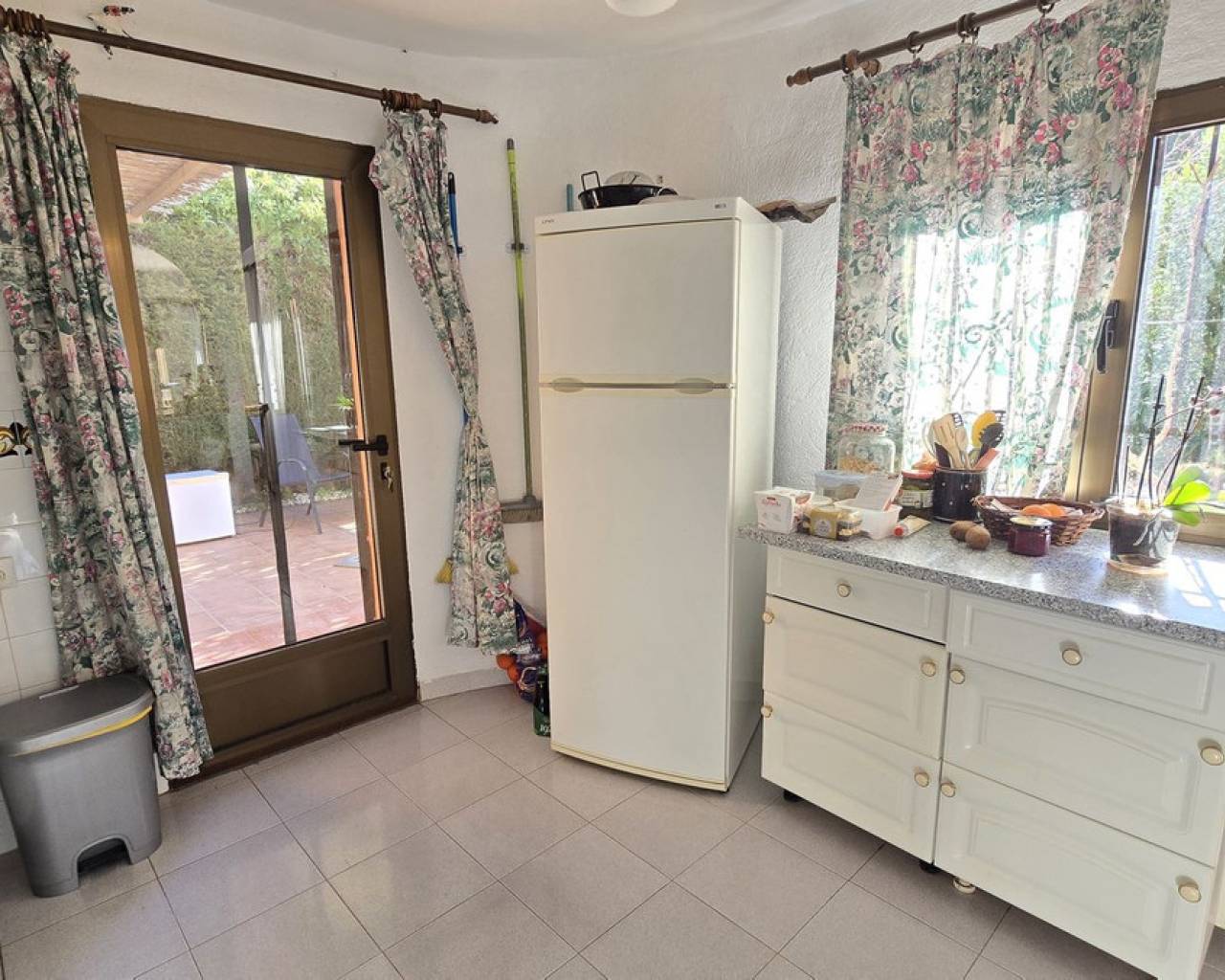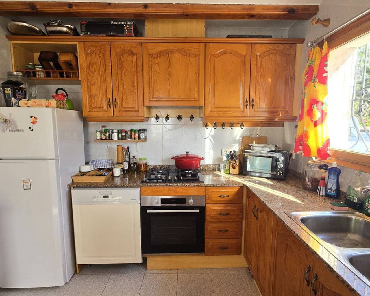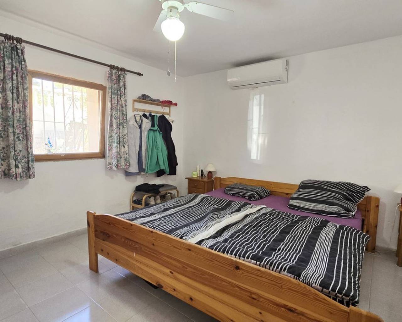 This quietly and sunny located villa offers a beautiful view of Montgó and impresses, among other things, with its location near the La Sella golf course as well as its good connections to Jávea, Jesús Pobre, and Denia. The house offers plenty of space, privacy, and flexible usage options – ideal for families, guests, or for combining living and renting. The main living area includes a spacious, open-plan living and dining area, a separate fully equipped kitchen with a small dining corner, three bedrooms with fitted wardrobes, and two bathrooms. A pellet stove provides pleasant warmth and atmosphere, the majority of the windows are double-glazed, and two of the bedrooms are equipped with air conditioning. The lower level features a separate apartment with three bedrooms, a living room, a kitchen, and a bathroom – ideal for visitors or as a completely self-contained living unit. The upper living area is easily accessible from the higher road, while the lower living space with the separate apartment has its own access via the lower road. This creates two independent, well-accessible areas with optimal privacy and flexible usage. Furthermore, the villa offers a private pool, sunny terraces, a carport on both the upper and lower floors, as well as generous storage rooms. It has good structural insulation, and the installations are easily accessible in the basement, facilitating maintenance and any adjustments. A versatile villa in a very good location where the quiet surroundings and beautiful mountain view provide a pleasant living environment.