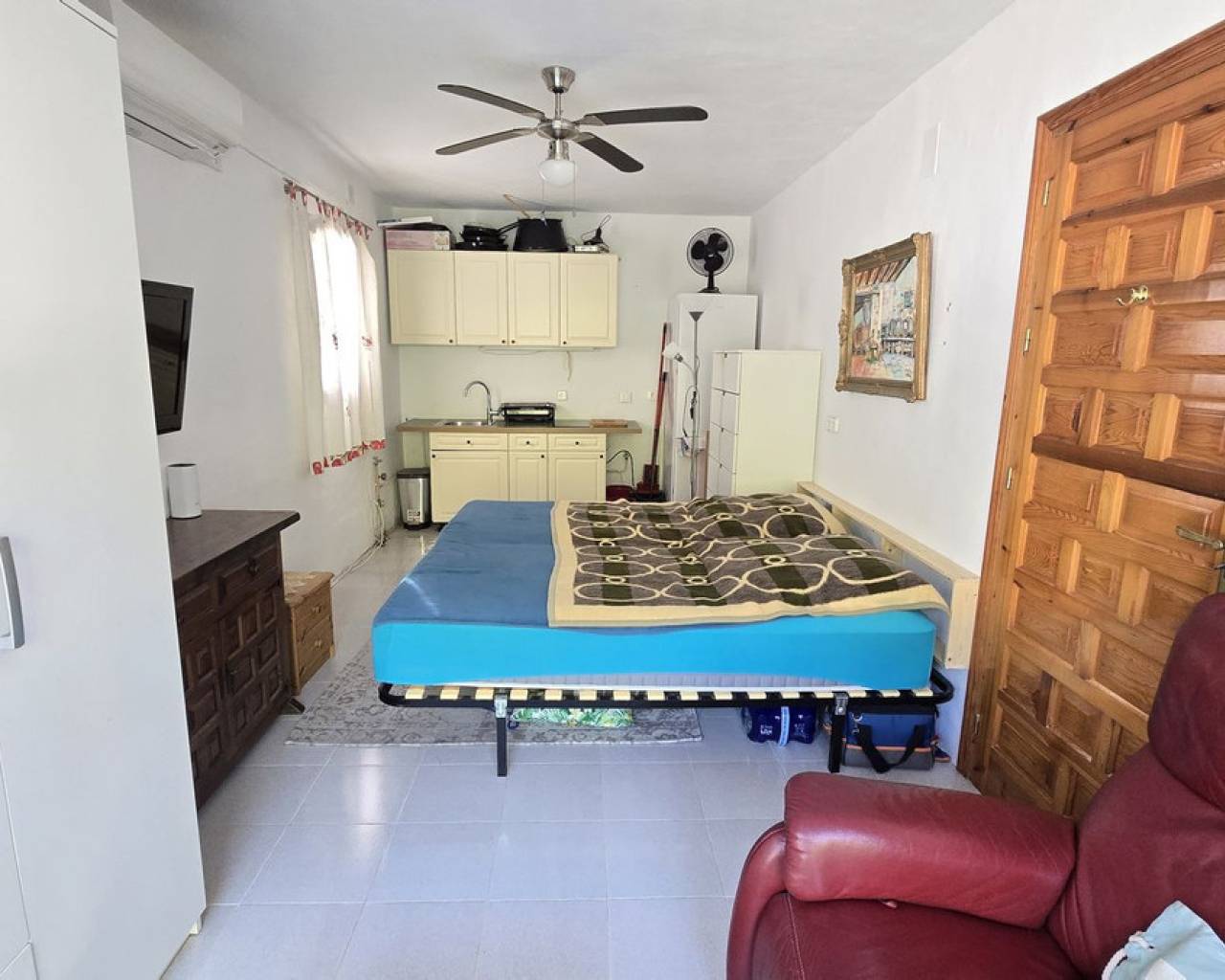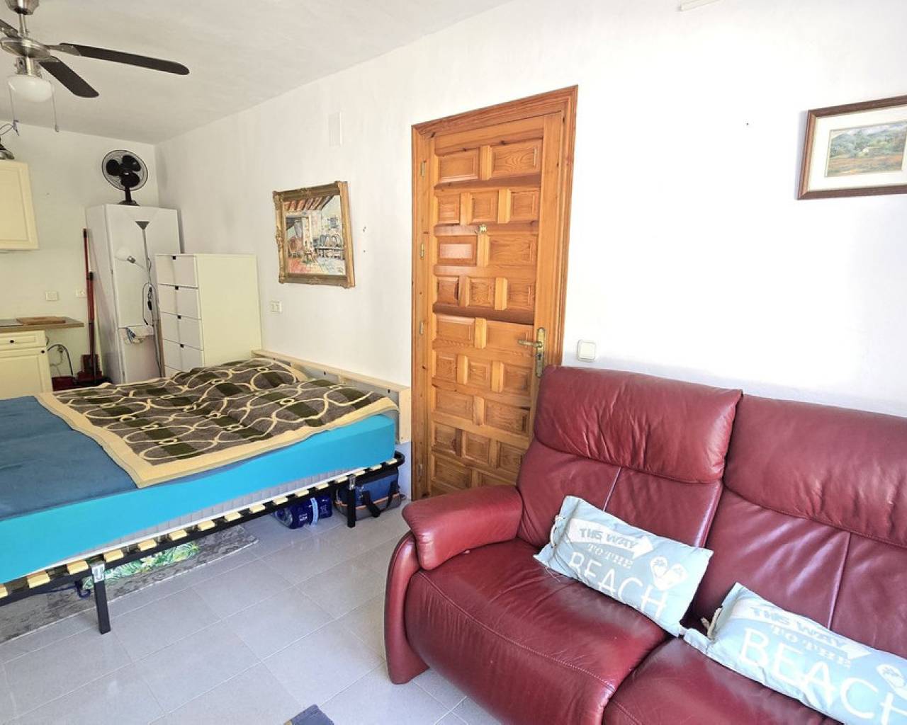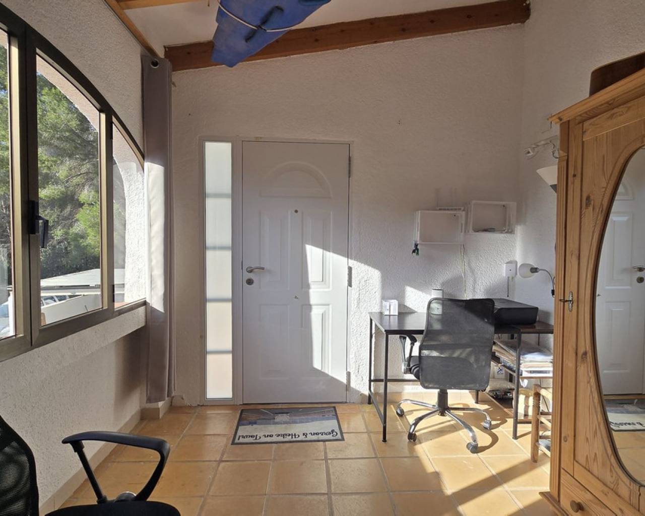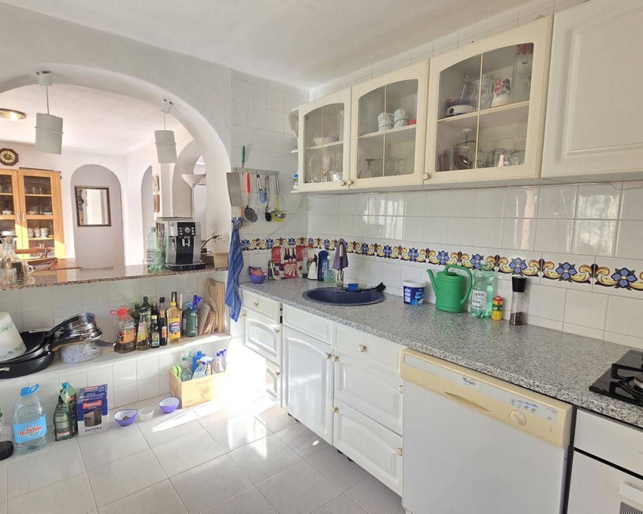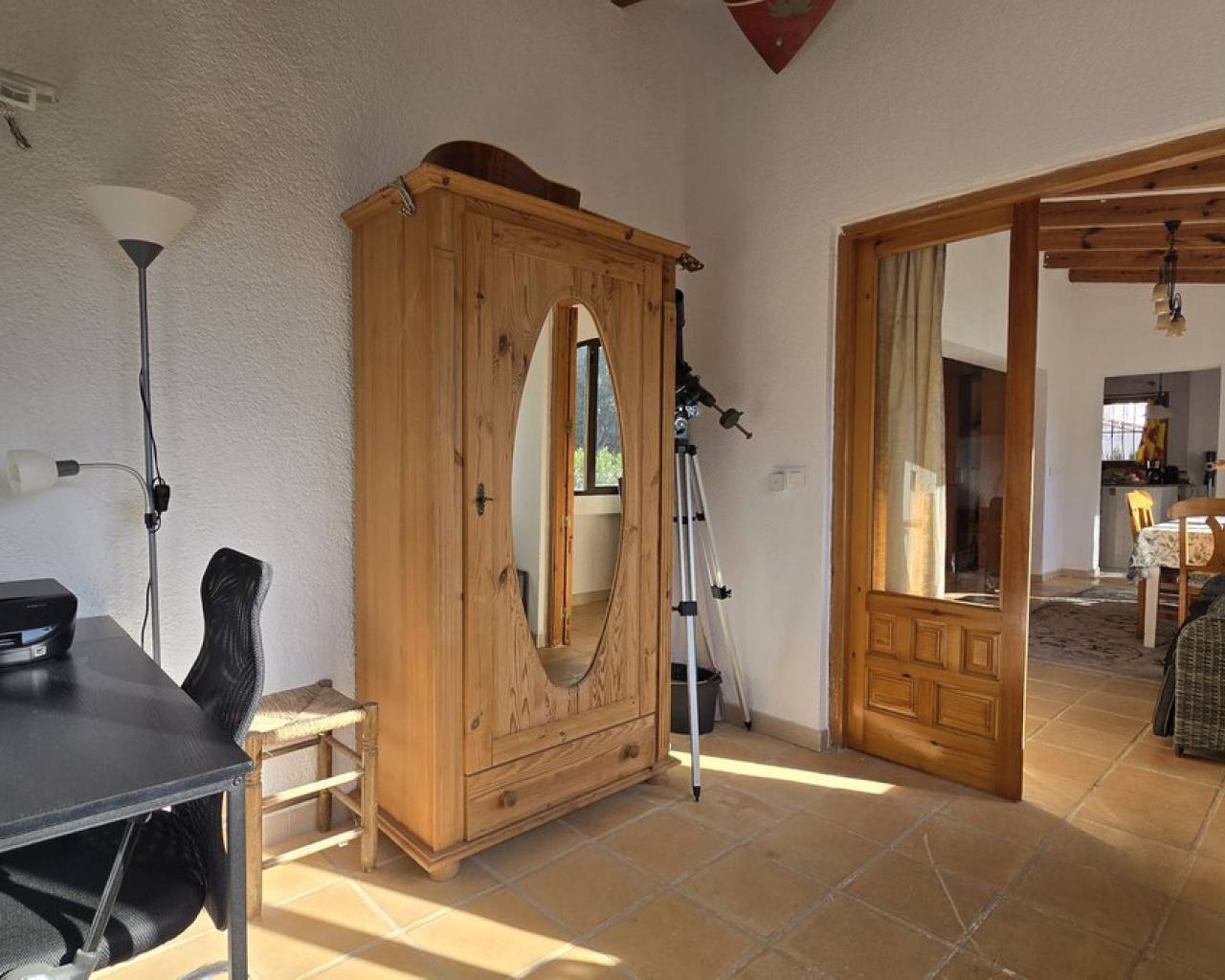 This quietly and sunny located villa offers a beautiful view of Montgó and impresses, among other things, with its location near the La Sella golf course as well as its good connections to Jávea, Jesús Pobre, and Denia. The house offers plenty of space, privacy, and flexible usage options – ideal for families, guests, or for combining living and renting. The main living area includes a spacious, open-plan living and dining area, a separate fully equipped kitchen with a small dining corner, three bedrooms with fitted wardrobes, and two bathrooms. A pellet stove provides pleasant warmth and atmosphere, the majority of the windows are double-glazed, and two of the bedrooms are equipped with air conditioning. The lower level features a separate apartment with three bedrooms, a living room, a kitchen, and a bathroom – ideal for visitors or as a completely self-contained living unit. The upper living area is easily accessible from the higher road, while the lower living space with the separate apartment has its own access via the lower road. This creates two independent, well-accessible areas with optimal privacy and flexible usage. Furthermore, the villa offers a private pool, sunny terraces, a carport on both the upper and lower floors, as well as generous storage rooms. It has good structural insulation, and the installations are easily accessible in the basement, facilitating maintenance and any adjustments. A versatile villa in a very good location where the quiet surroundings and beautiful mountain view provide a pleasant living environment.